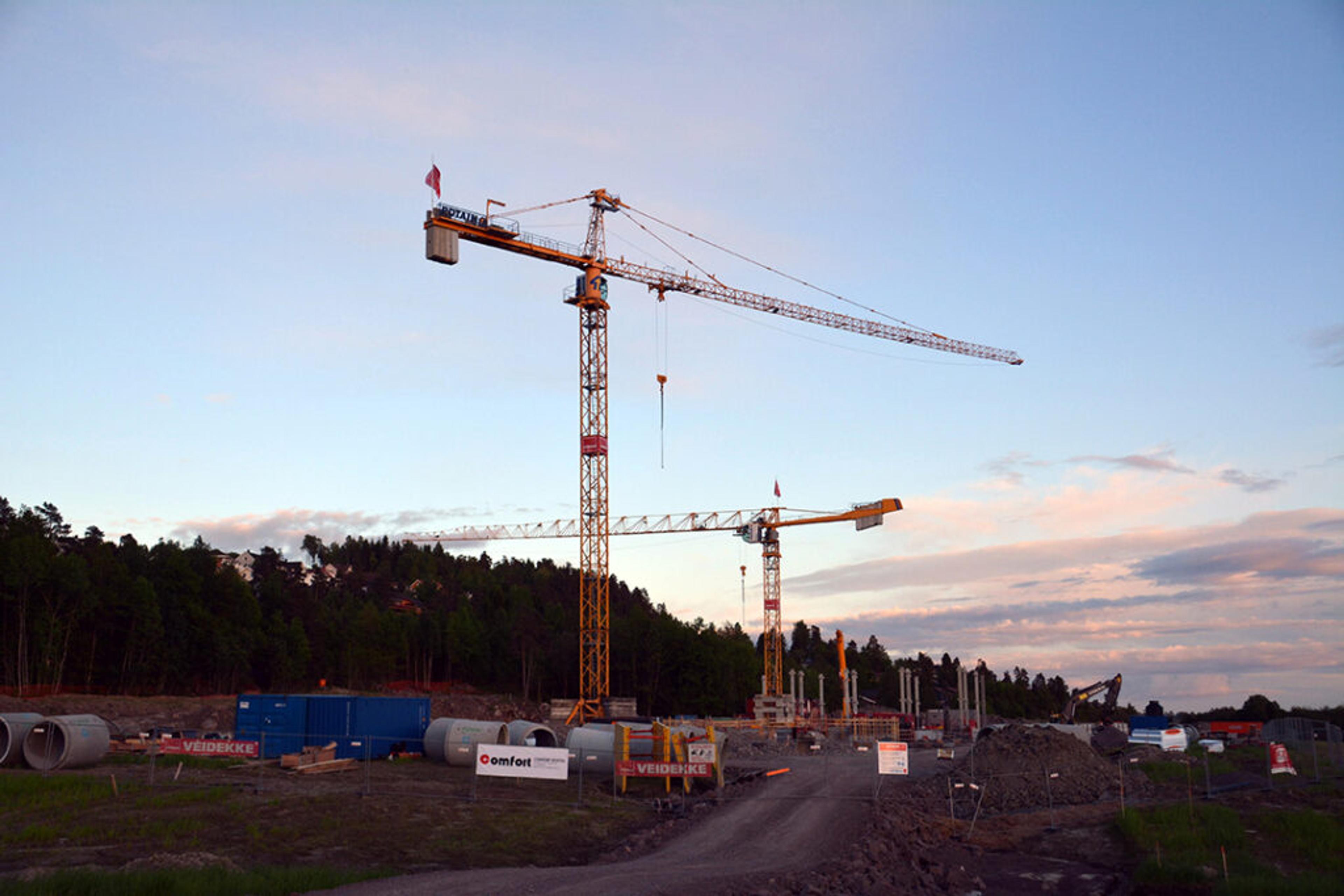 I mange år var det byggekraner å se til enhver tid på Revetal. Her hjelper de til på byggeplassen til Re helsehus. Foto: Stian Ormestad, ReAvisa.