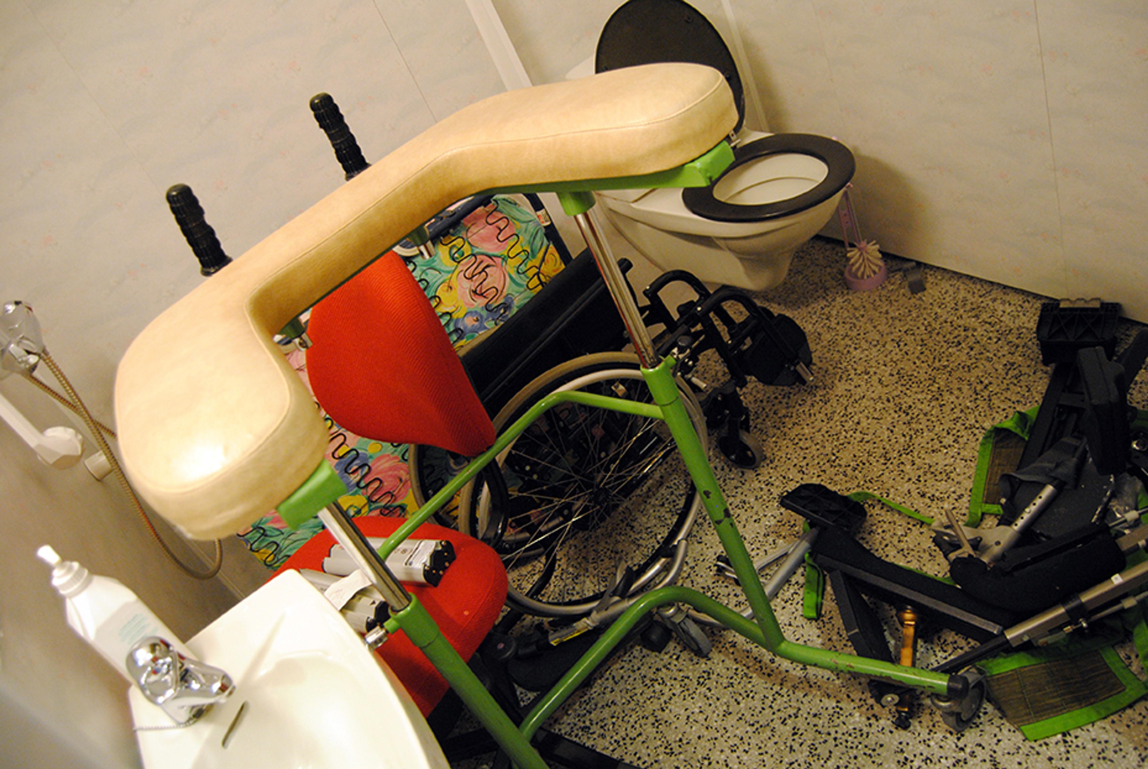 Rot på et toalett på det gamle Re sjukehjem, med masse ødelagt utstyr. Foto: Stian Ormestad, ReAvisa.