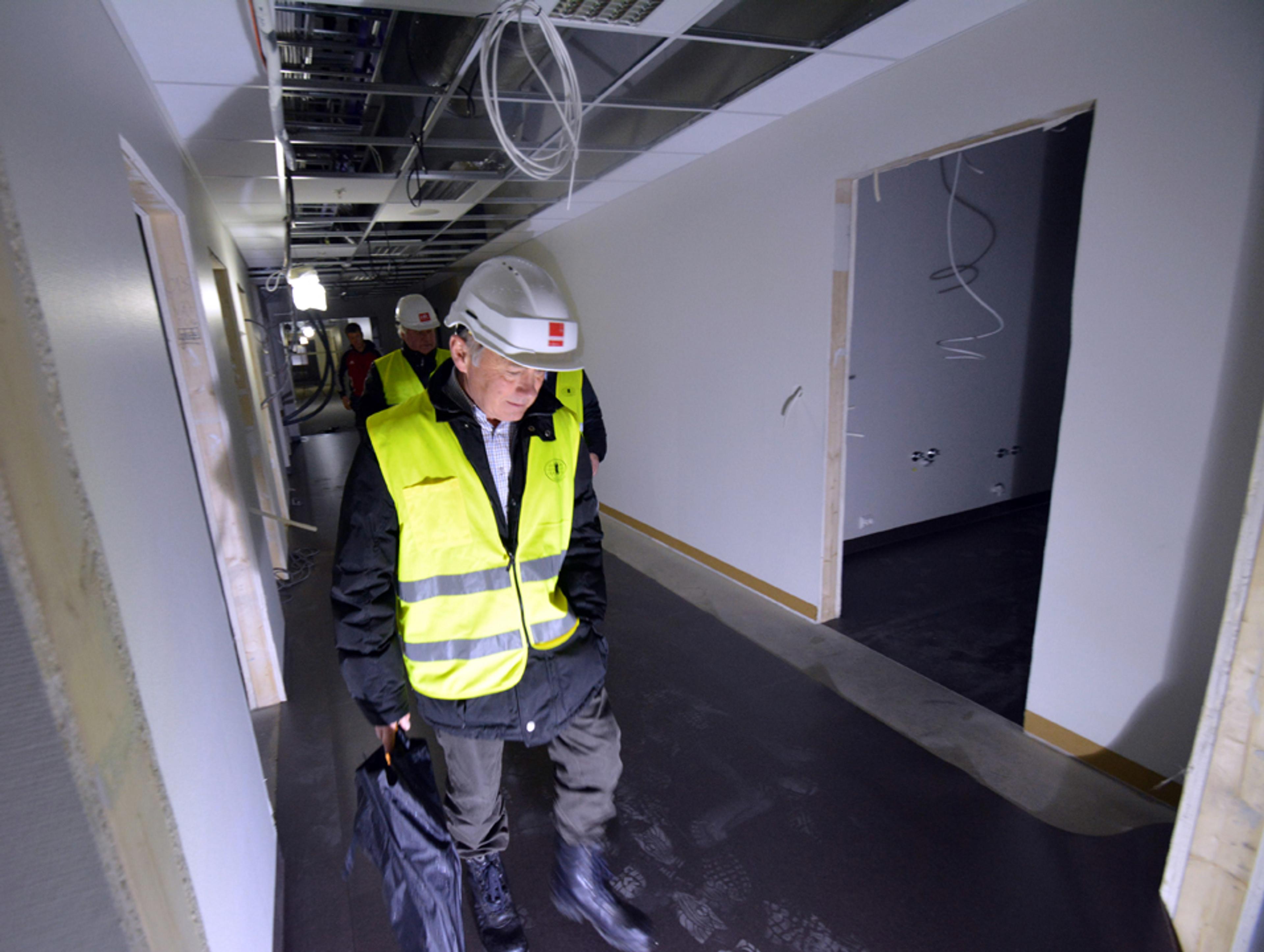 Daværende ordfører i gamle Re kommune Thorvald Hillestad har med ReAvisa på en rundtur i det nye helsehuset. Foto: Stian Ormestad, ReAvisa.