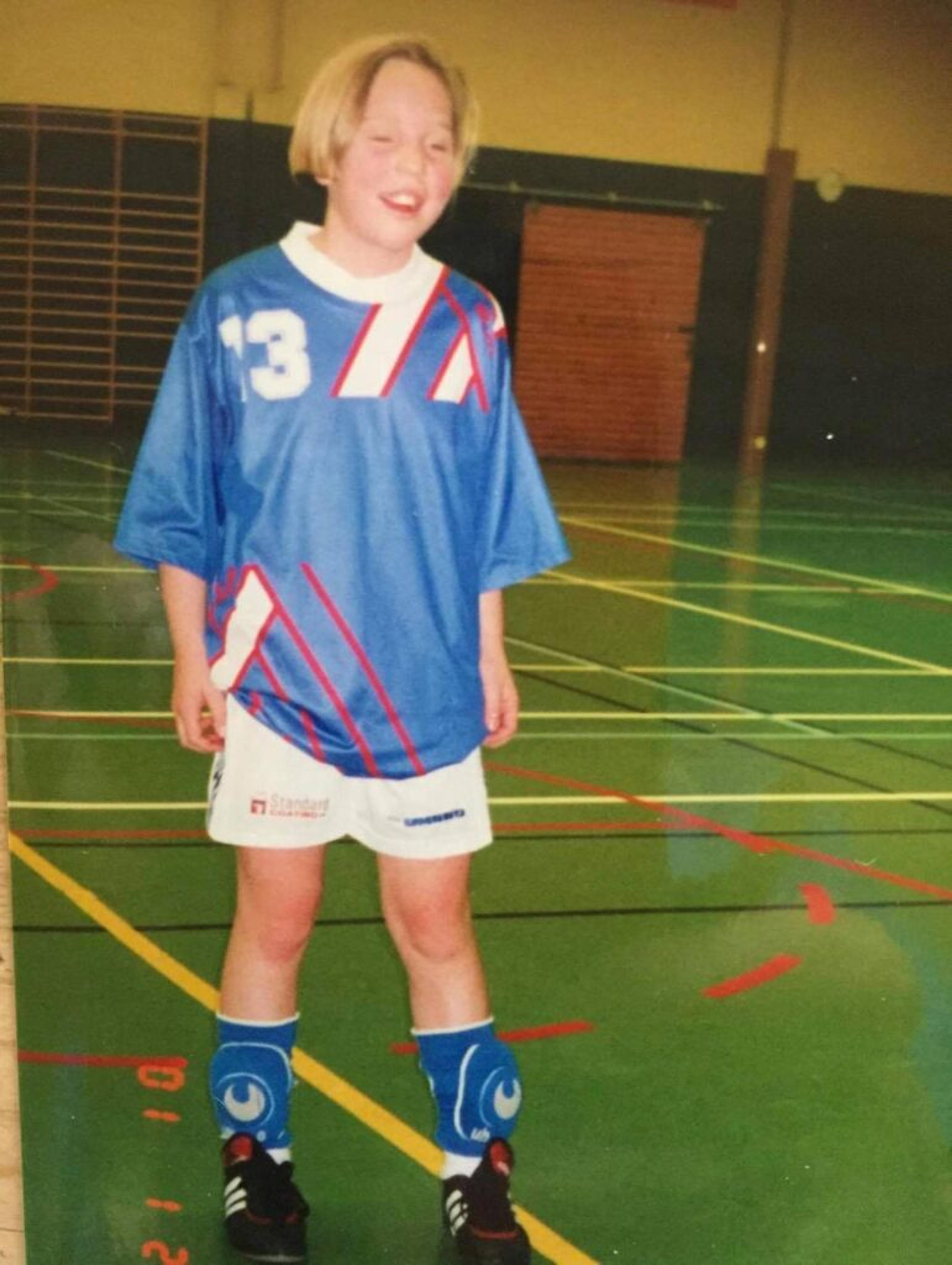 I RAMNES-DRAKTA: Ellen ble hekta på håndball i Ramneshallen som liten. Foto: Privat.