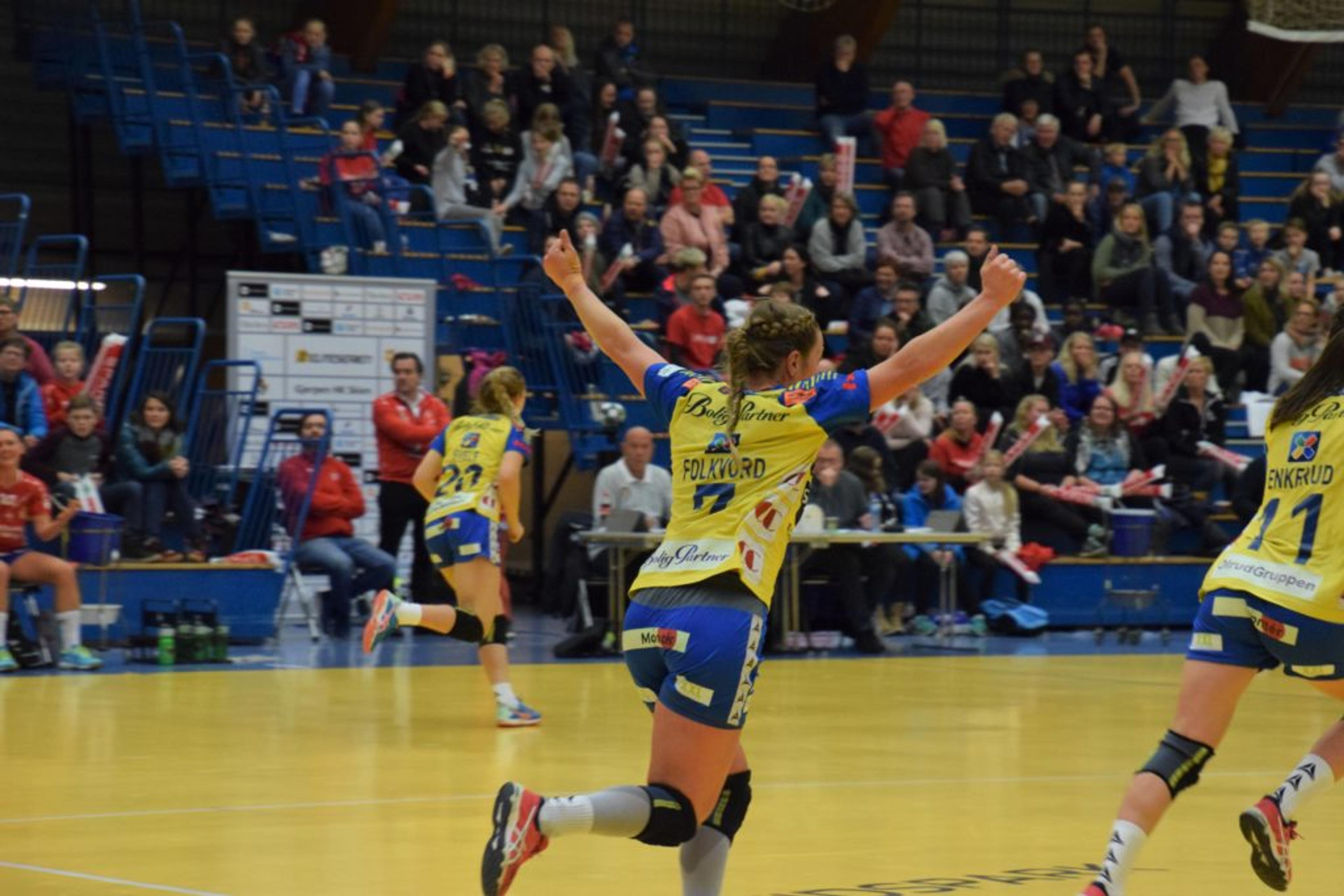 JUBEL: Ellen ble en stor publikumsyndling blant Storhamar-publikummet. Da ReAvisa dekte Eliteserie-kamp og fortalte at vi skulle skrive om henne, så fikk vi høre veldig mye skryt – og de takka pent for lånet av den trivelige Re-jenta. Og lånet varte hele håndballkarrieren ut. Arkivfoto: Stian Ormestad.
