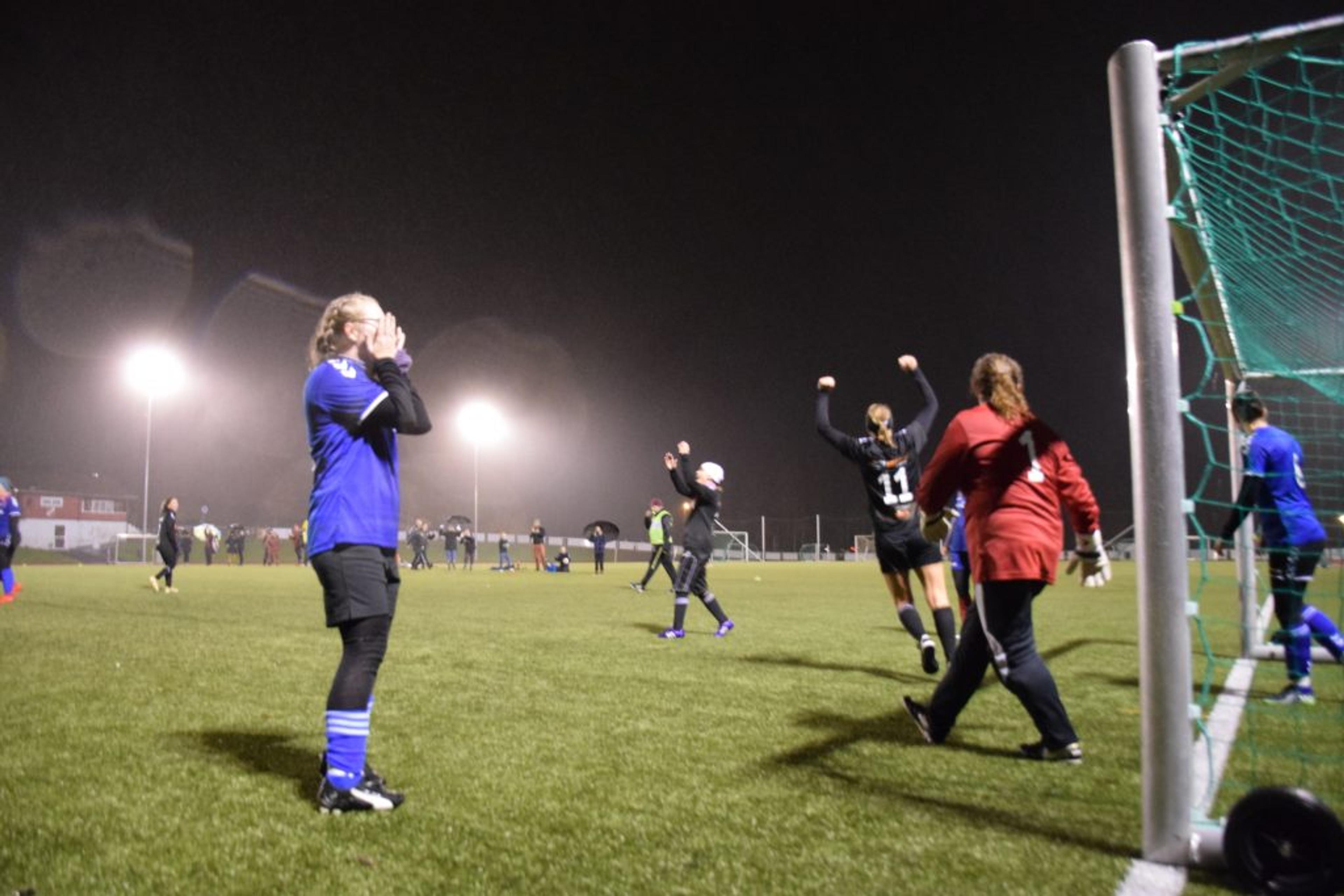 PUTTA TO: Eva Bonde (40) fra Brekkeåsen, med nummer 11 på ryggen, jubler etter sin andre scoring på rappen for Re. Gjestene fortviler. Foto: Stian Ormestad.
