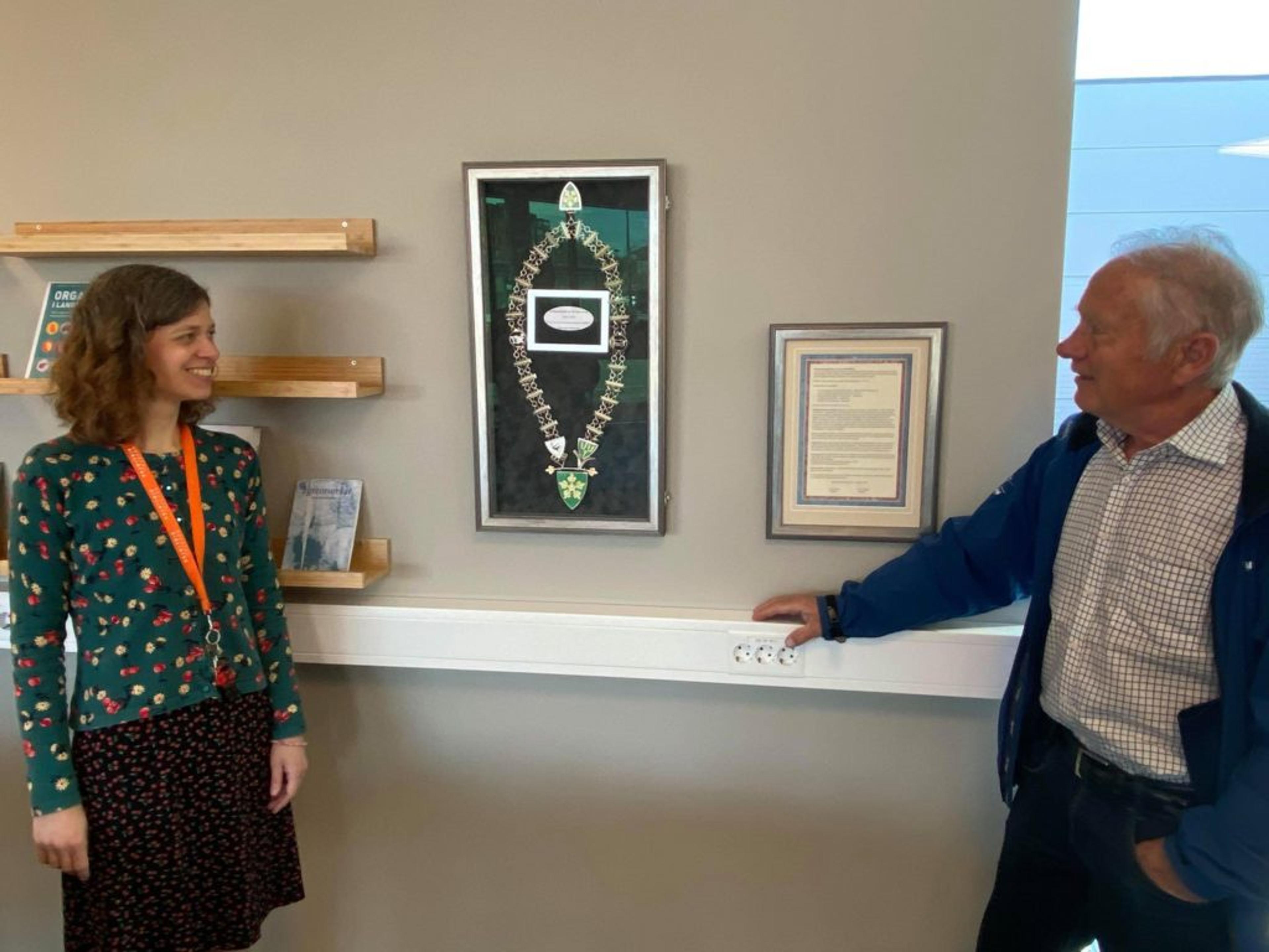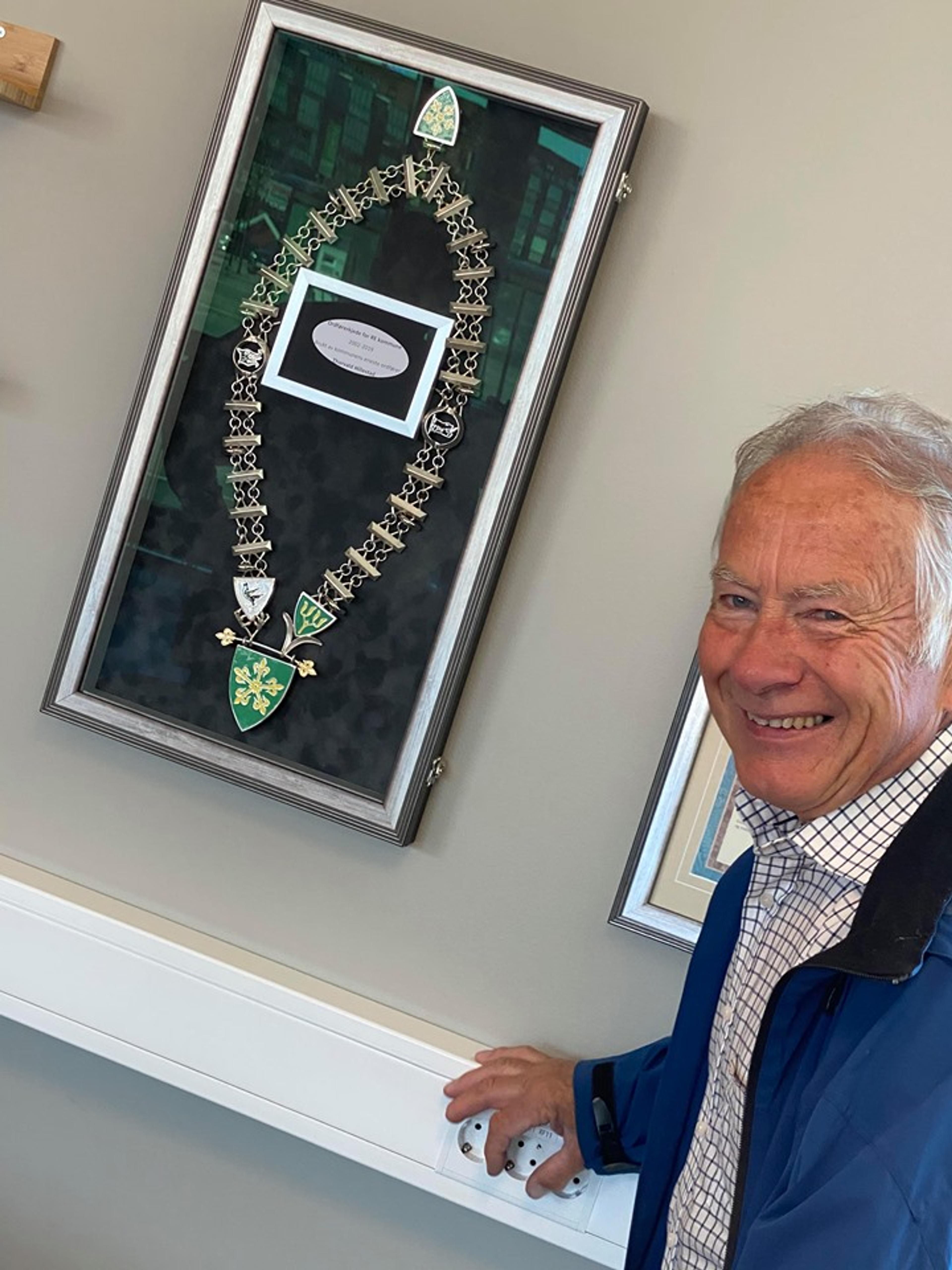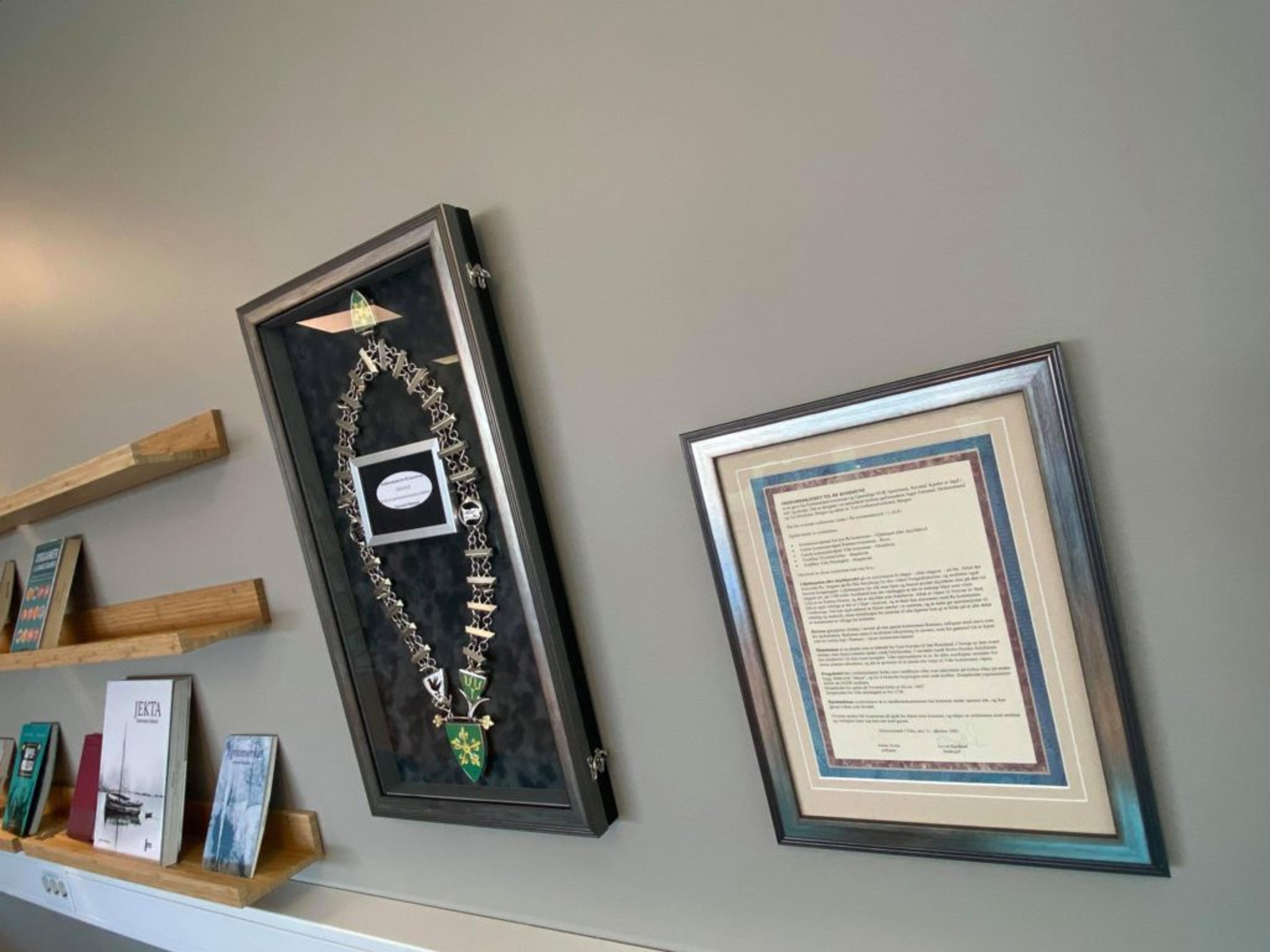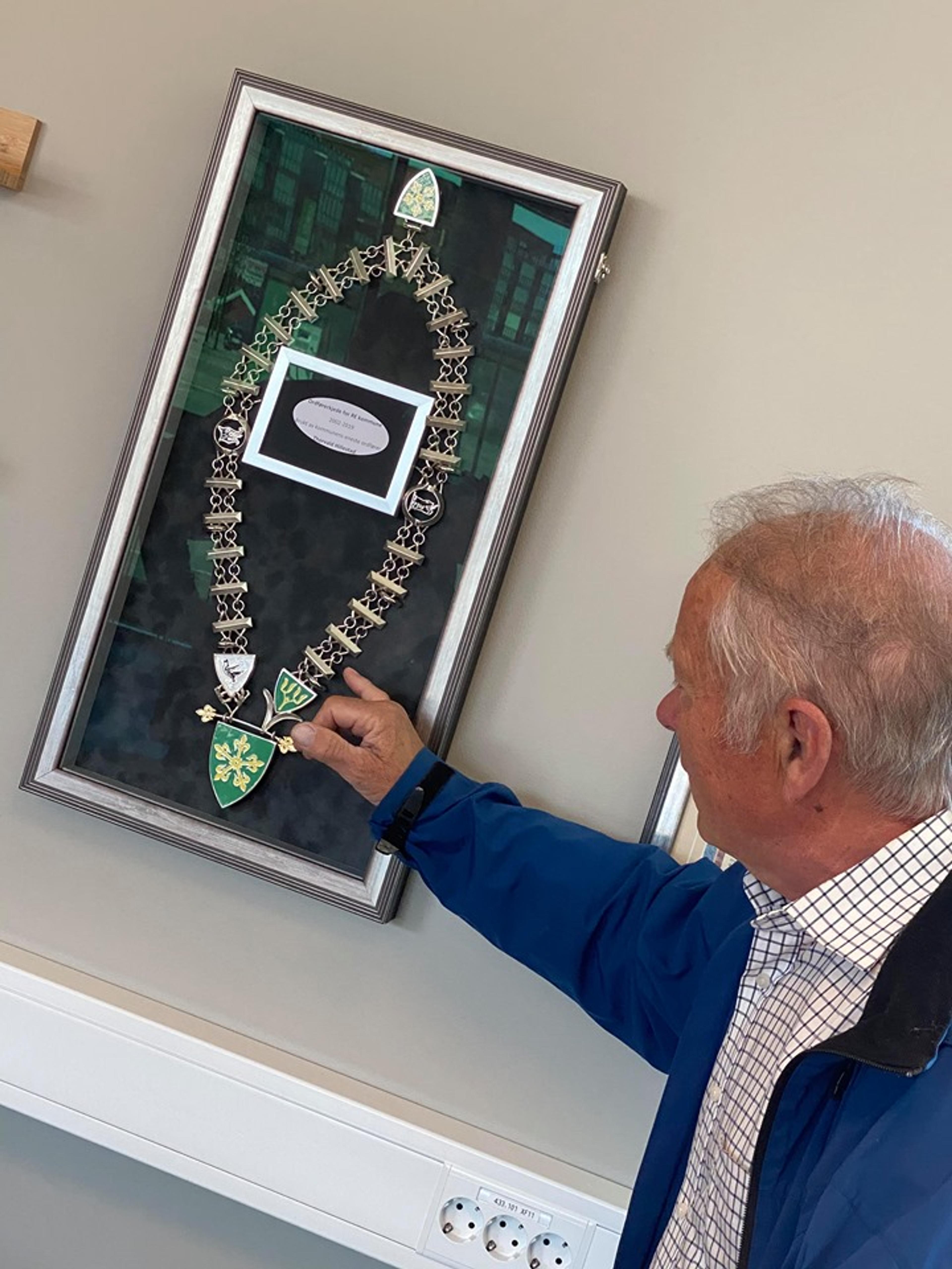 PÅ PLASS: Ordførerkjedet er parkert for godt, og her skal det henge til glede for flest mulig. Foto: Stian Ormestad.