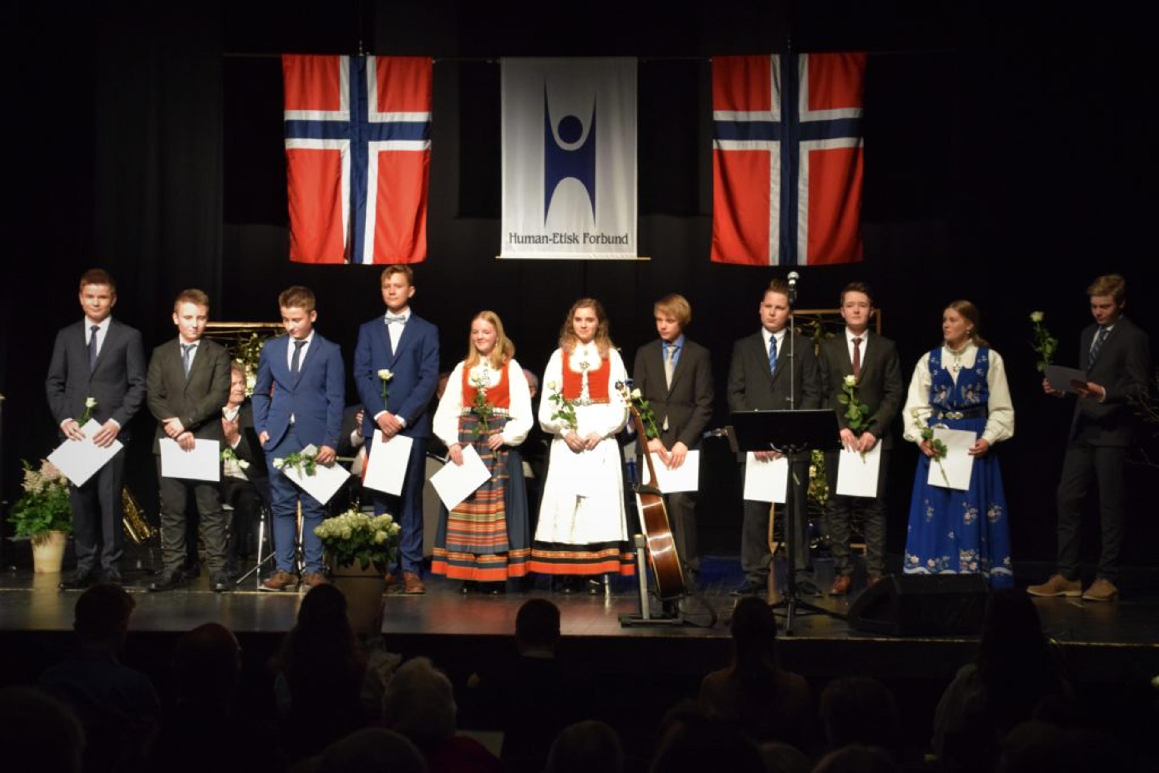KONFIRMANTER: Bildet er fra den humanistiske konfirmasjonen til Re-ungdom i fjor, på Biorama i Holmestrand – som også huser den flotte seremonien i år. Foto: Stian Ormestad.