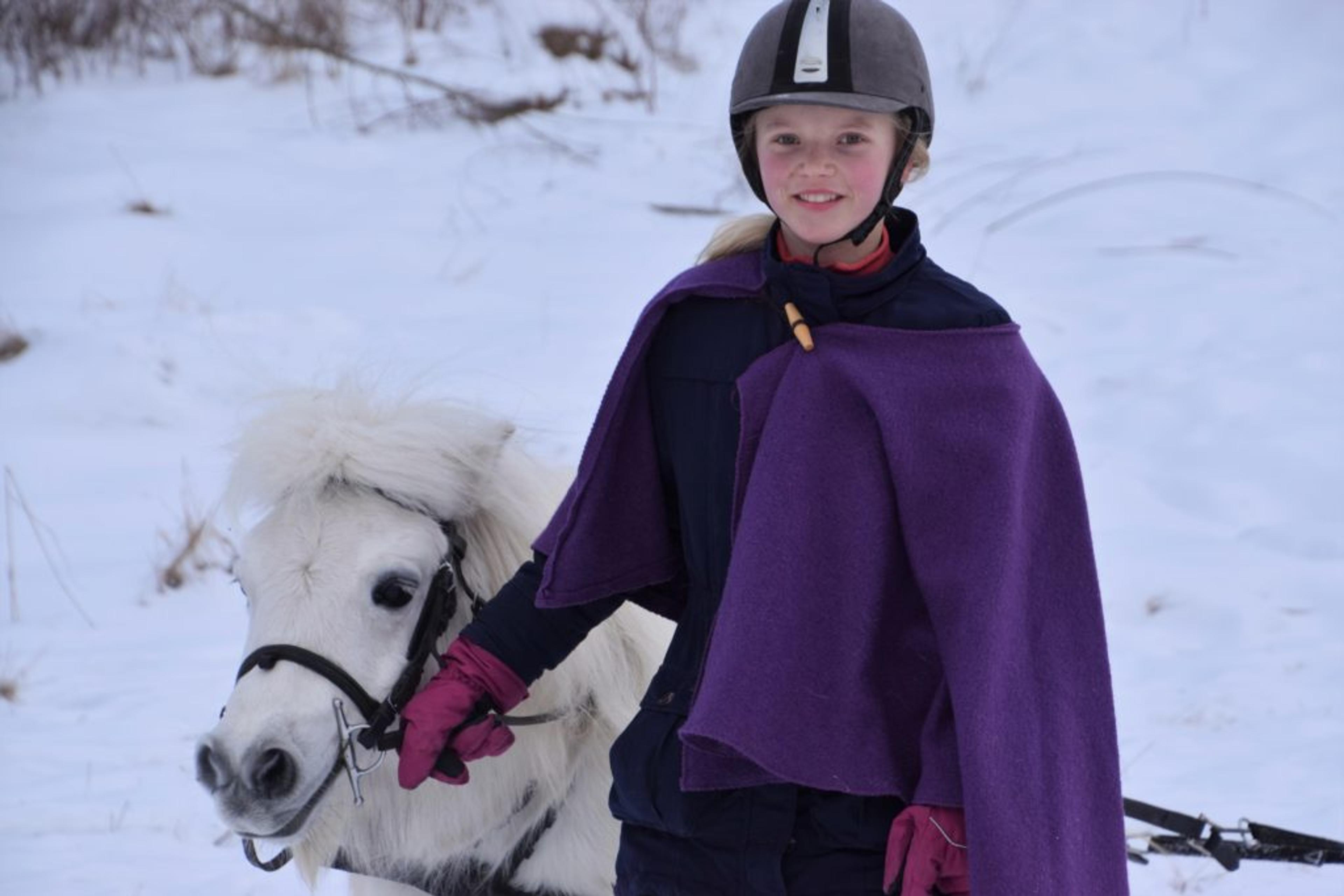 NY AKTIVITETSSTASJON: Antonea Lovise Husemoen (12) og hennes pensjonerte travponni Sol (20). Foto: Stian Ormestad.
