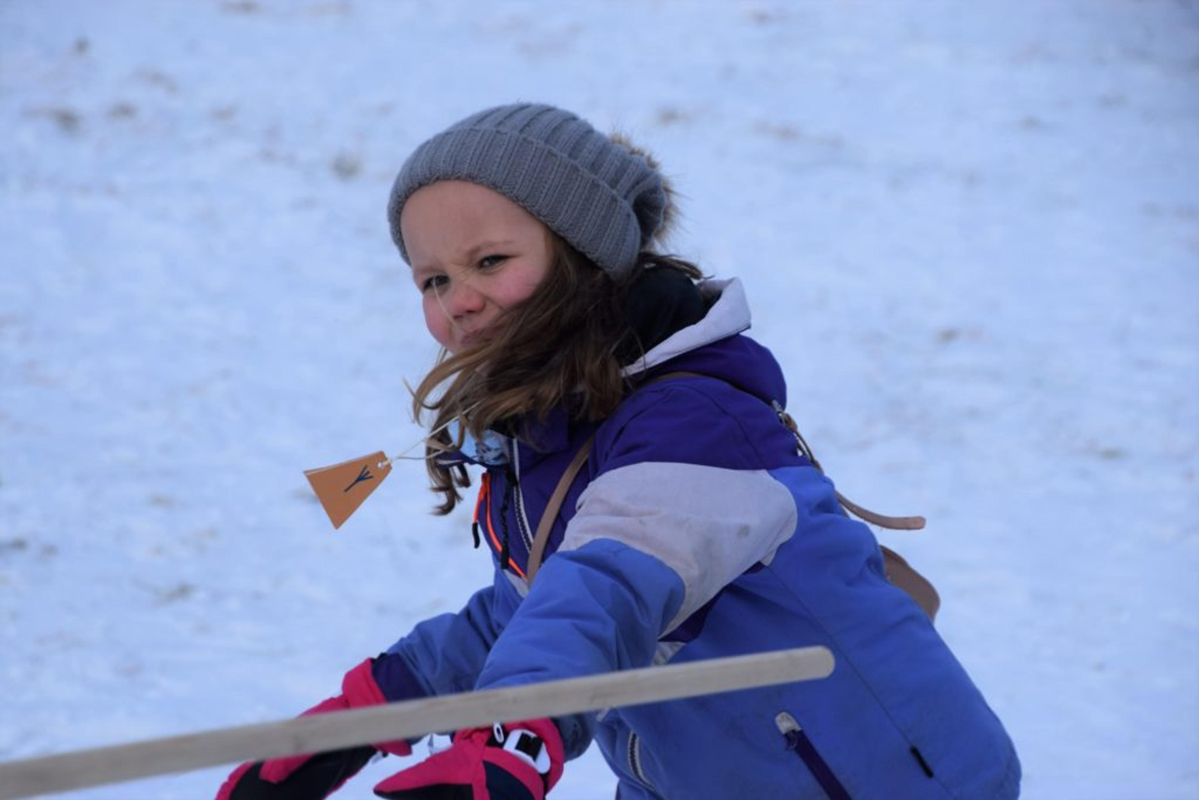 SPYDKAST: Mathilde Skjeggestad (8) sender spydet mot blinken. Foto: Stian Ormestad.