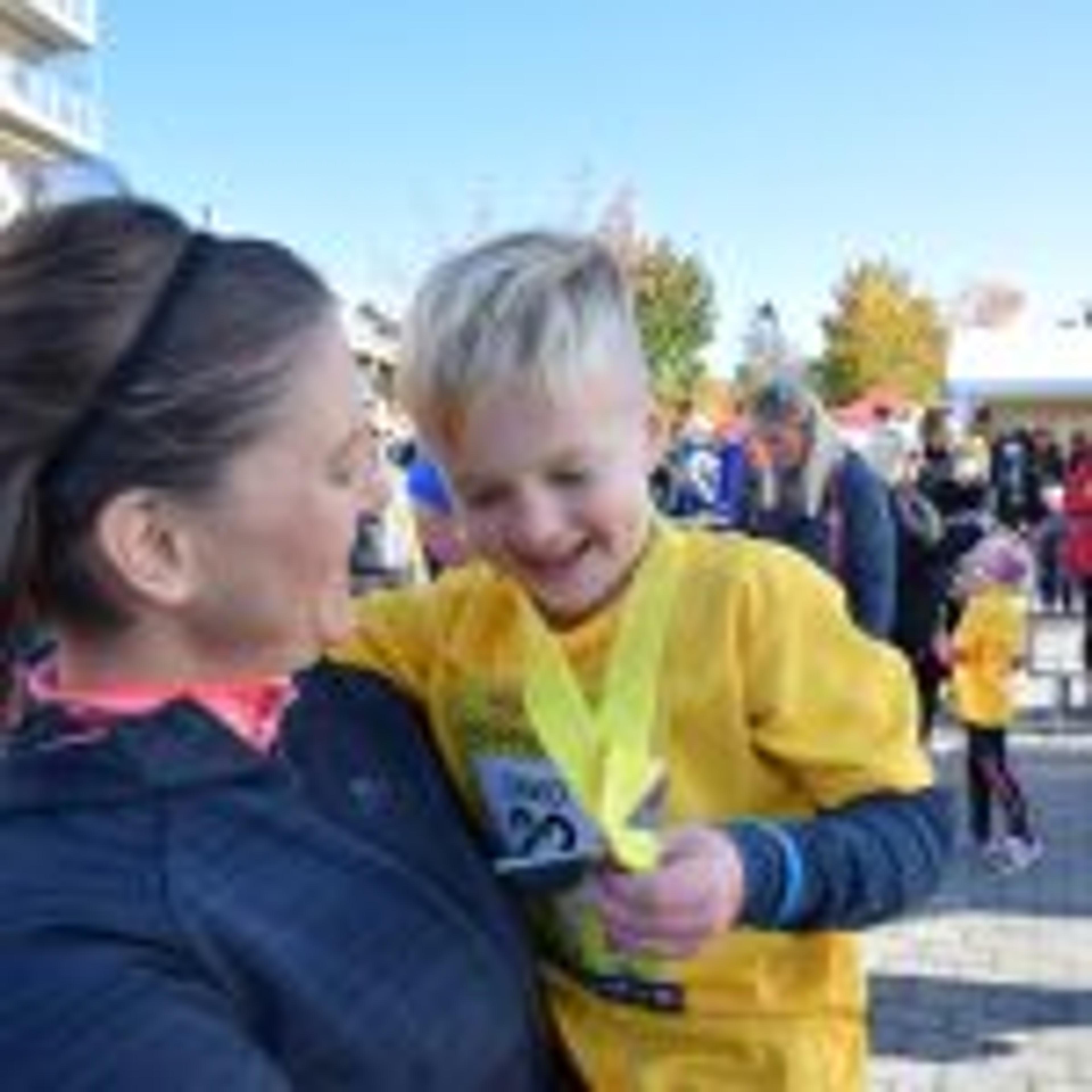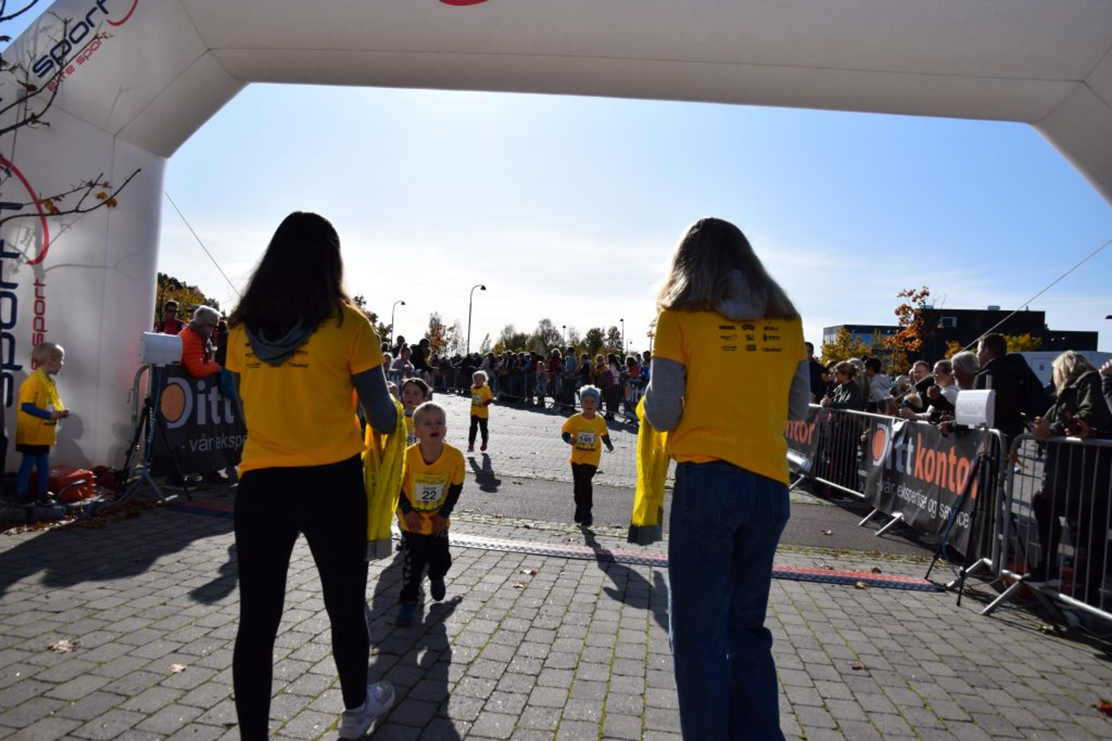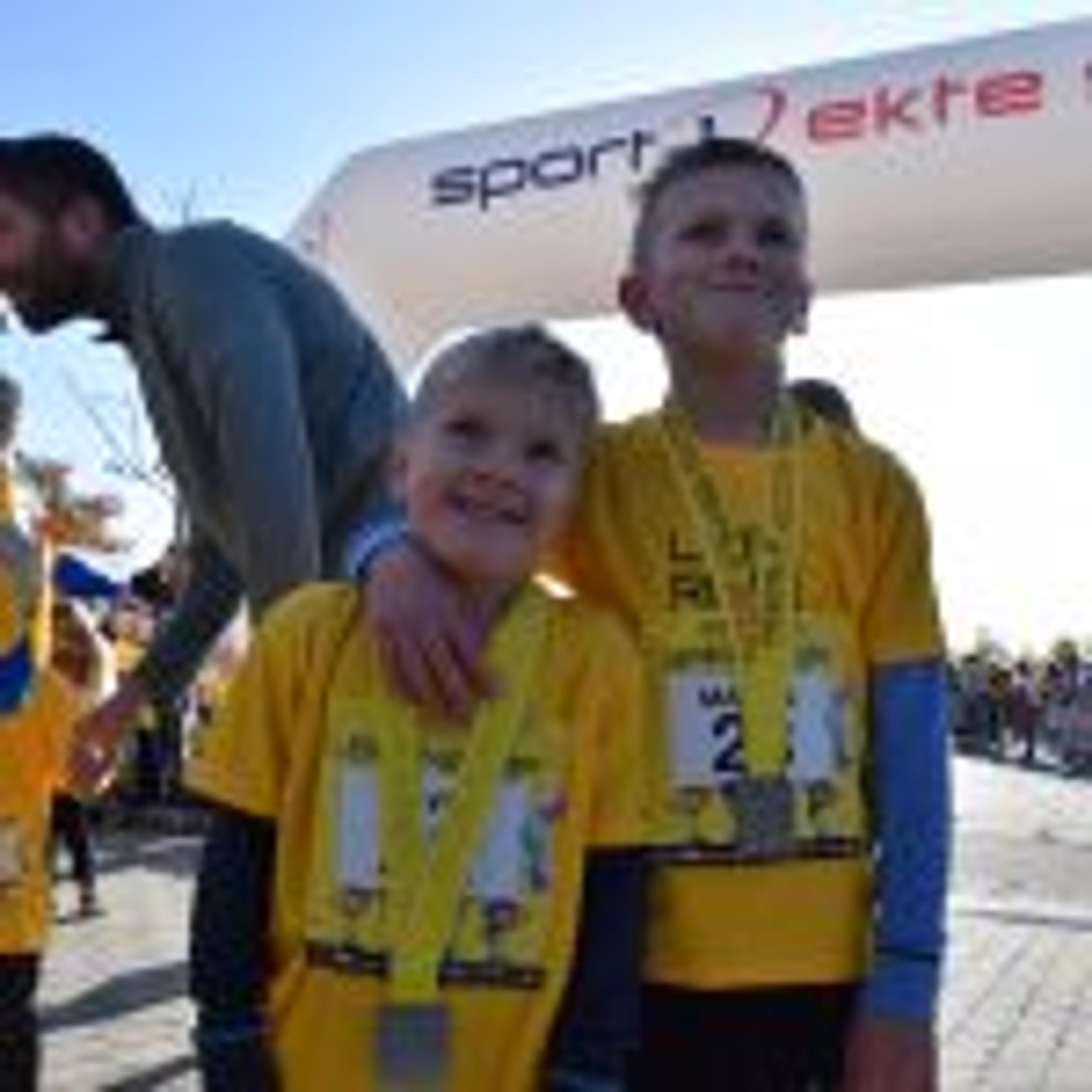 David spurta over målstreken og rett inn i armene til storebror, som serverer en god og lang klem. Pappa Matjaz får en high-five, og mamma Kristina rapper ett par klemmer.