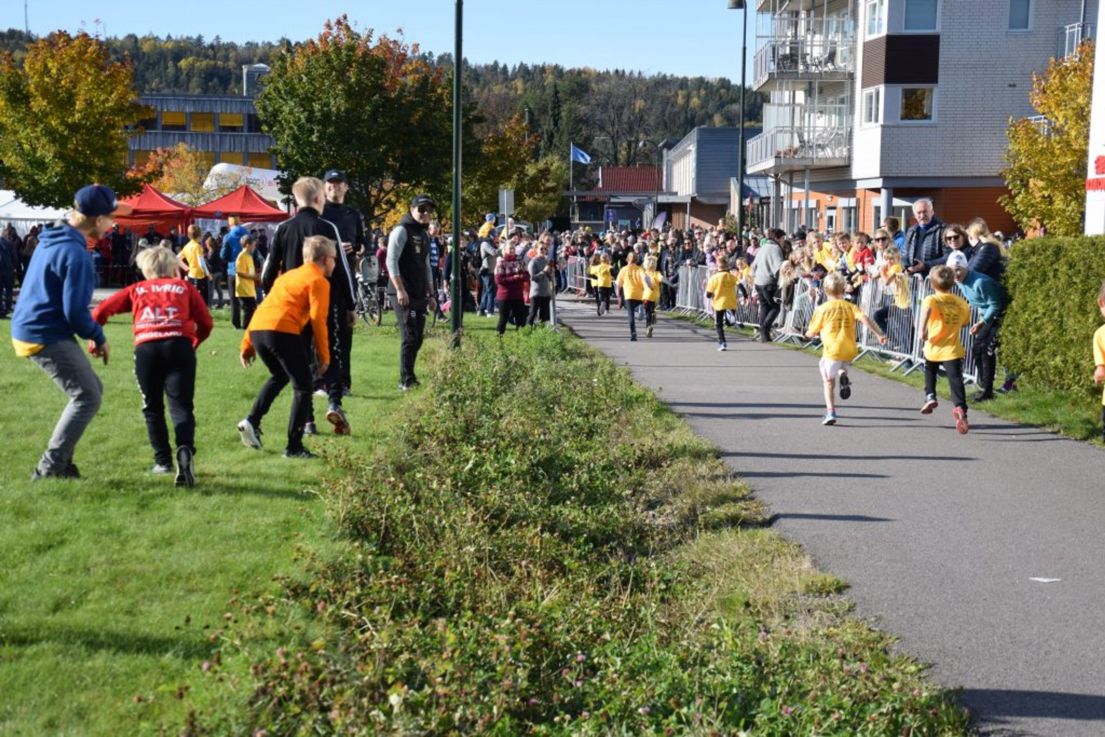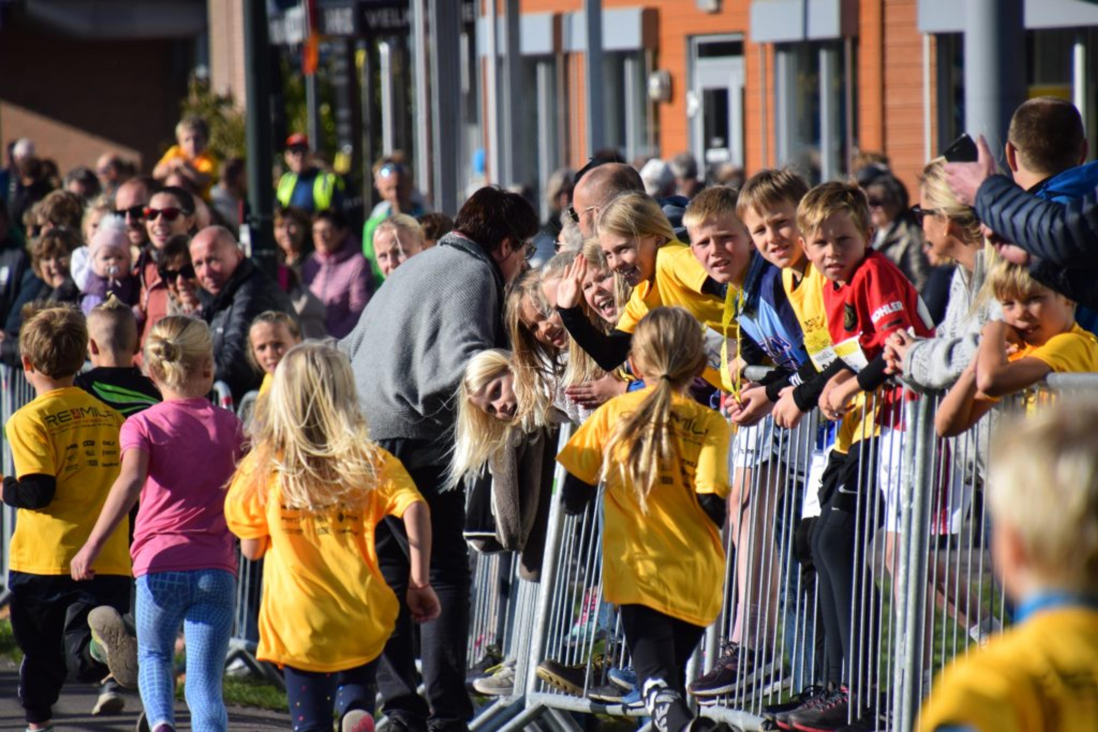 LØPEFEST: Folksomt langs løypa, og mange hundre barn i full fart i løypa. Foto: Stian Ormestad.