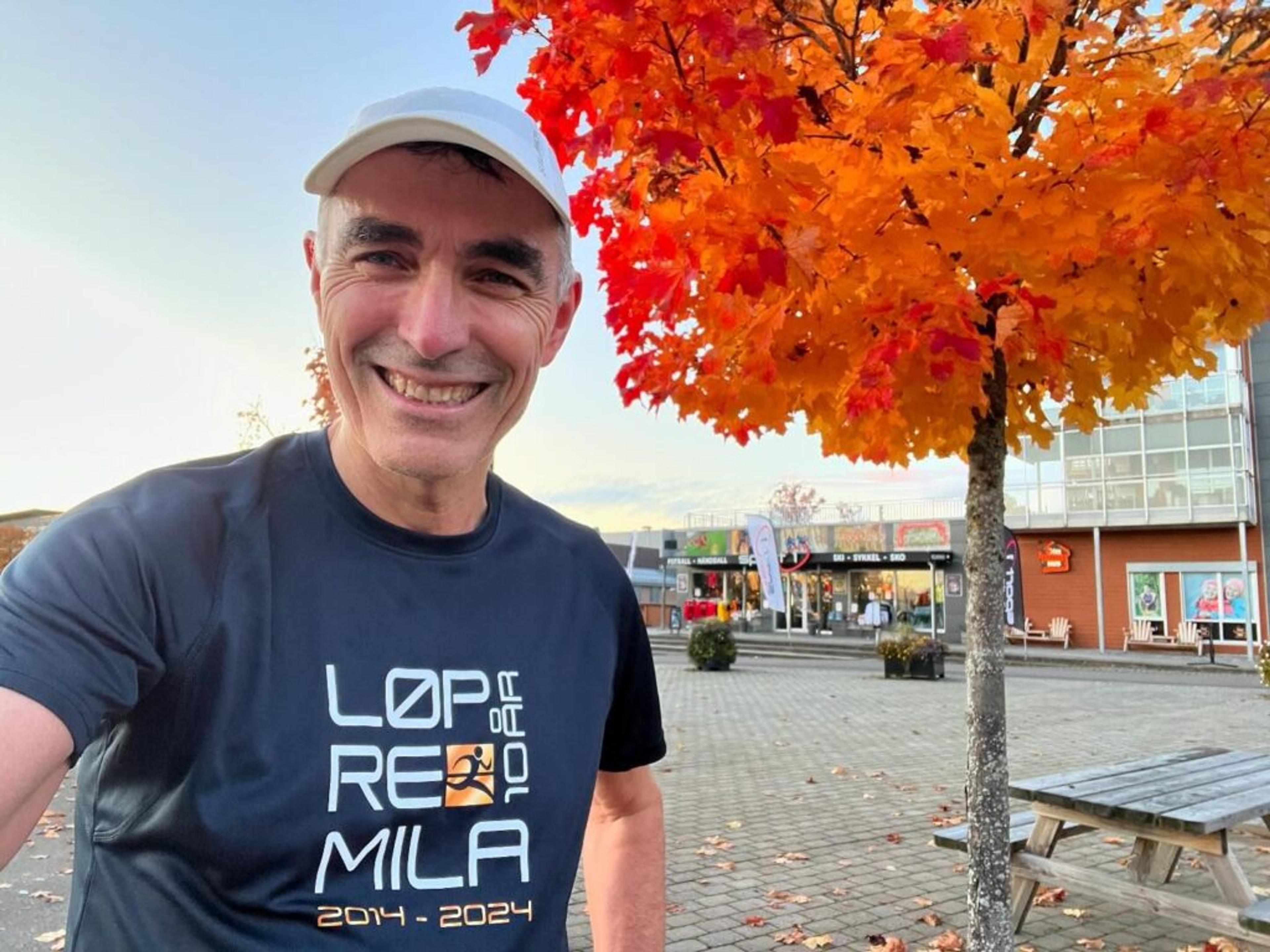 RE-MILA-GENERAL: Erling Schjetne starta opp Re-mila for ti år siden og er klar for jubileumsløp i dag. Det ventes deltakere og heiagjeng i tusentalls totalt til Revetal, nok en gang. Foto: Privat.