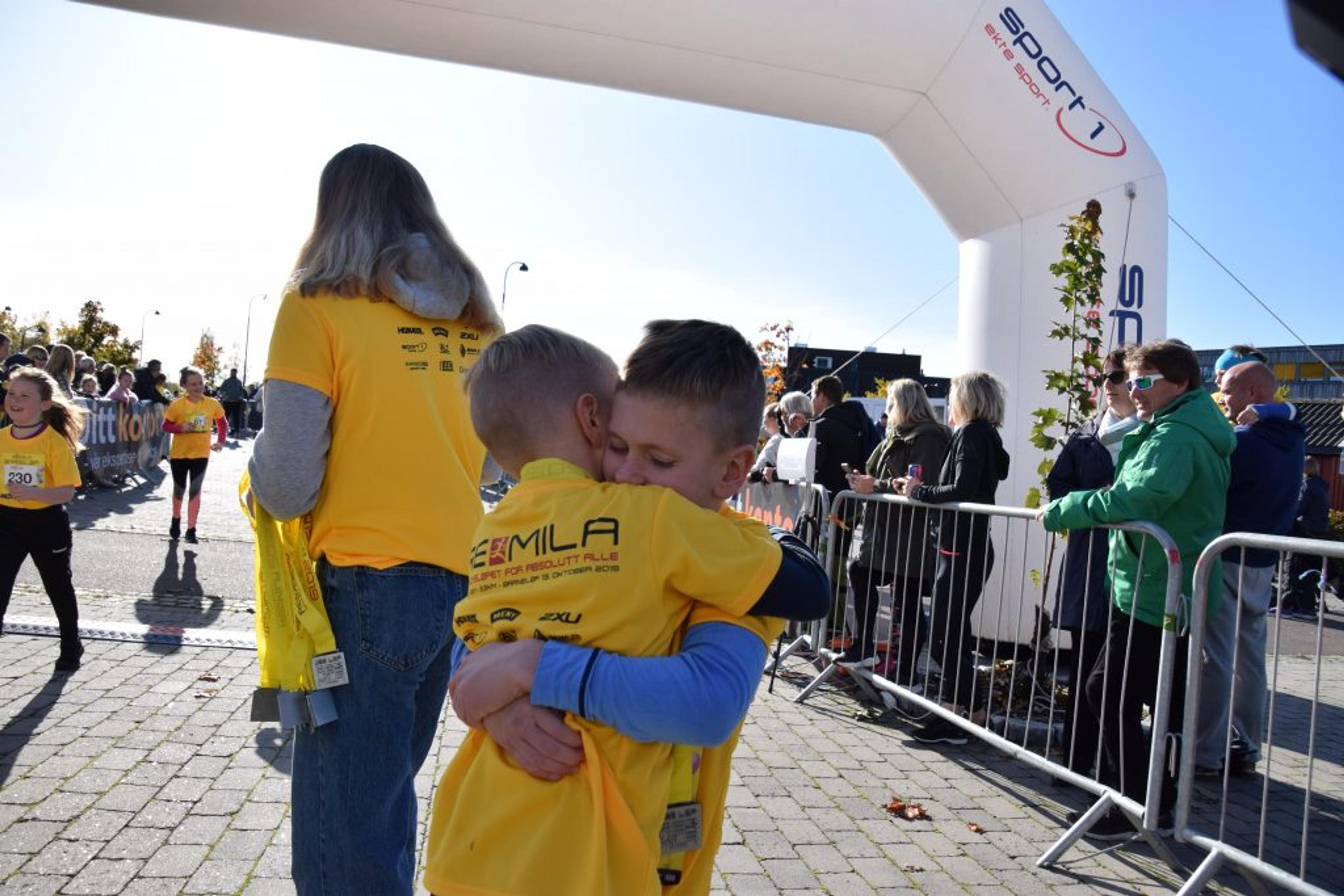 LØPEGLEDE: Re-mila er mosjonsløpet for alle, og slik vil det fortsatt være, forsikrer Frode Hestnes på vegne av IL Ivrig. Her ser vi gledesscener i målområdet i Re-mila 2019. Foto: Stian Ormestad, ReAvisa.