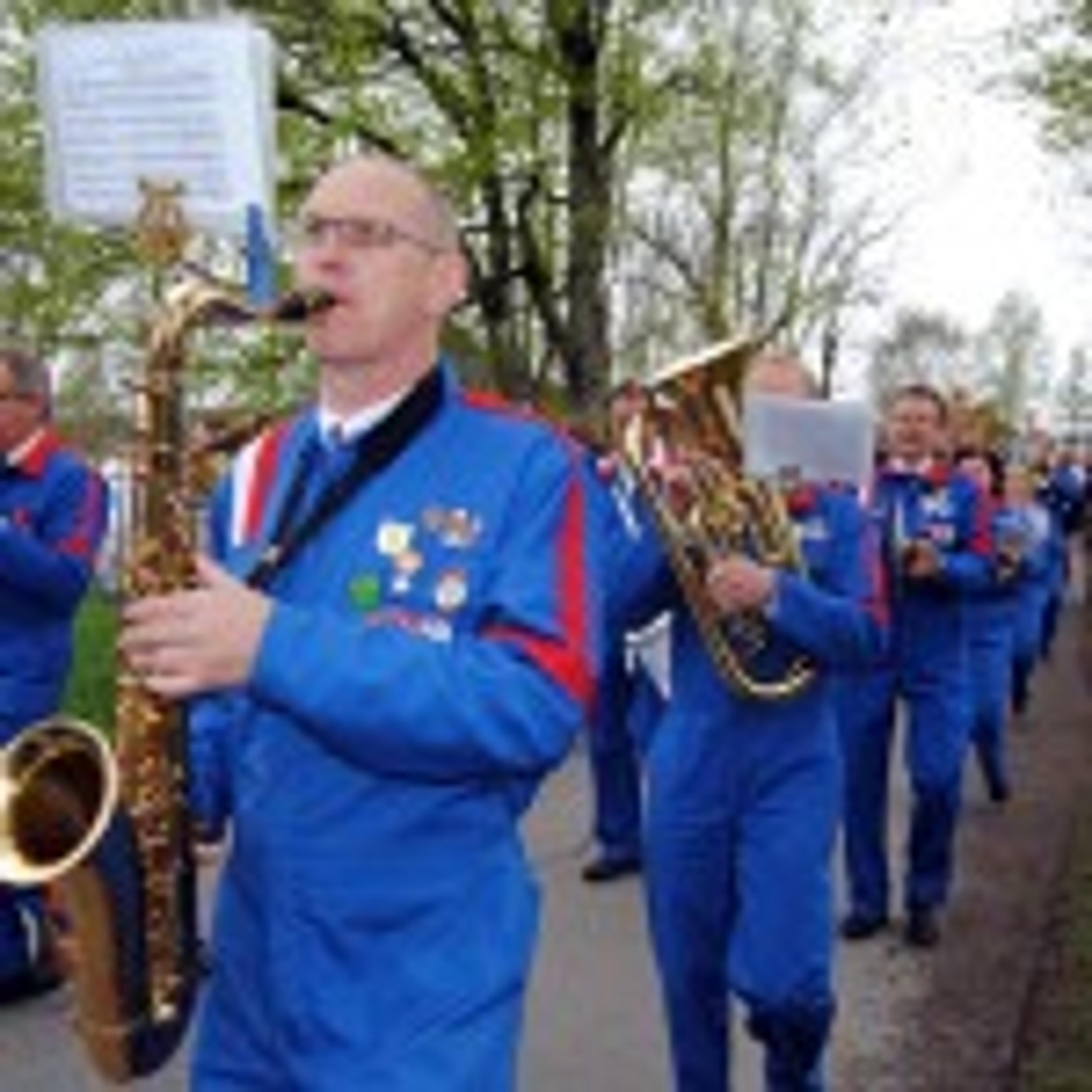 GLAGJENGEN: Voksenkorpset i Våle ble stiftet i 1989. Her i aksjon under det siste 17. mai-toget i Våle, før alle har møttes til et stort fellestog på Revetal de siste åra. Foto: Stian Ormestad.