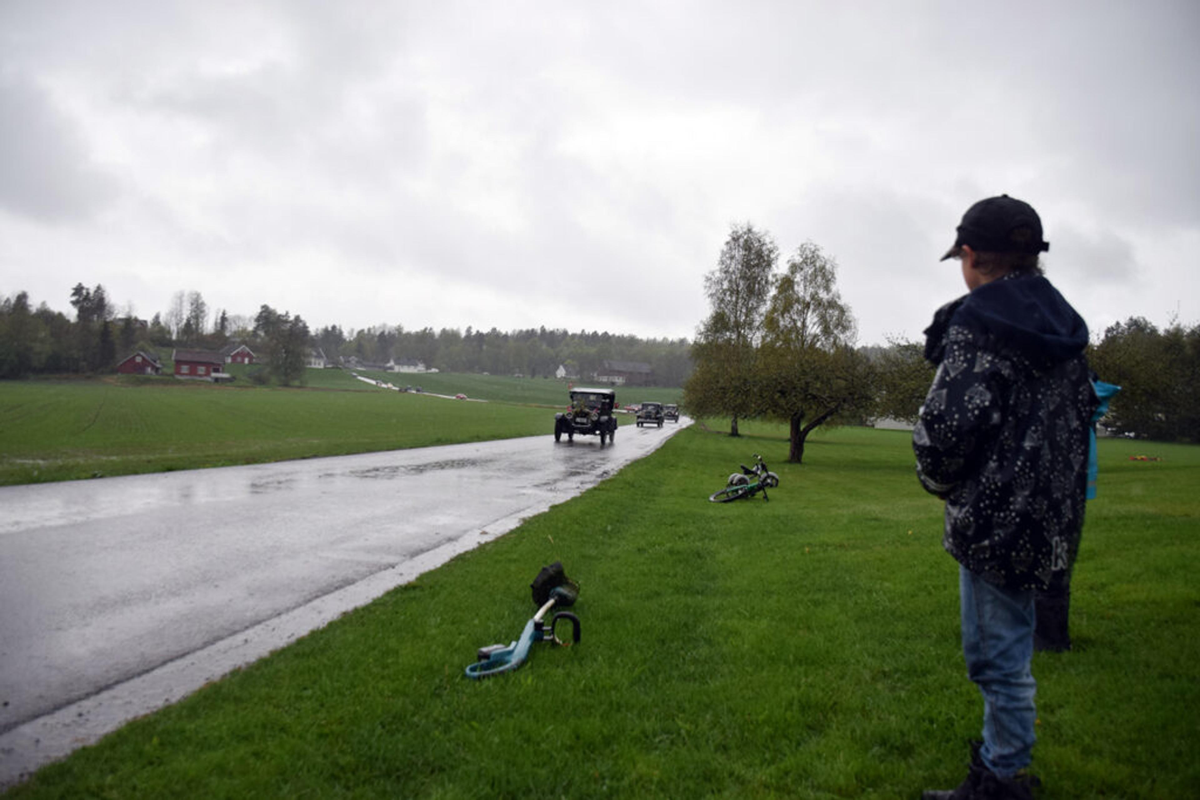 Spesielt moro synes ett par gutter, som fikk kortesjen rett forbi egen gårdsplass på Fossan, at det er med biler som brummer litt ekstra.