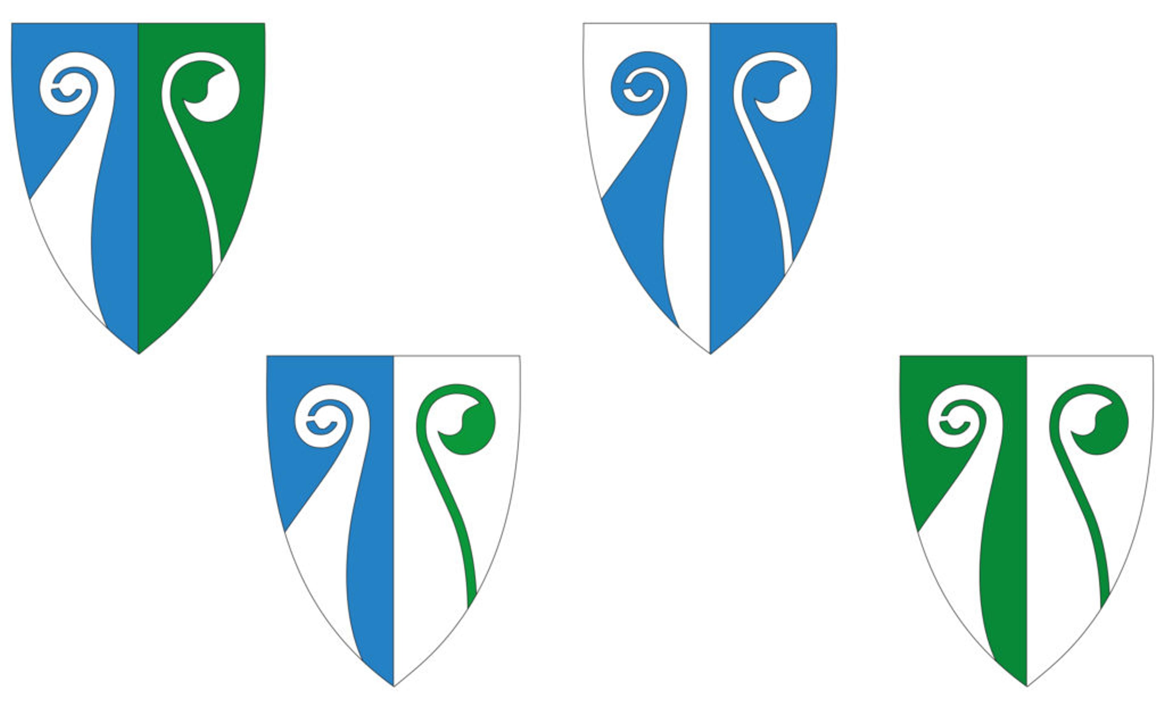Det vil si at kommunevåpen-komiteen skal komme med forskjellige fargeforslag på stavn og spire-motivet, i fargene hvit/sølv, blått og grønt.