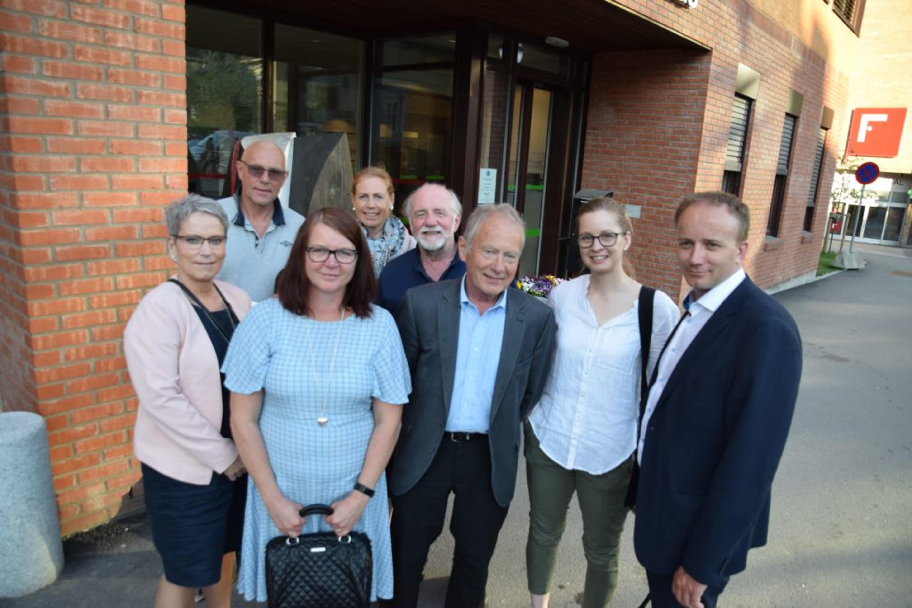 FELLESNEMNDA: Re-politikerne i Fellesnemnda, det øverste organet for sammenslåingen av Re og Tønsberg. Fra venstre ser vi Tove Øygarden (H), Bent Sørsdal (V), Benedichte Lyngås (KrF), Trude Viola Antonsen (AP), Heming Olaussen (SV), Thorvald Hillestad (SP), Kari Proos (MDG) og Frode G. Hestnes (FrP). Foto: Stian Ormestad.