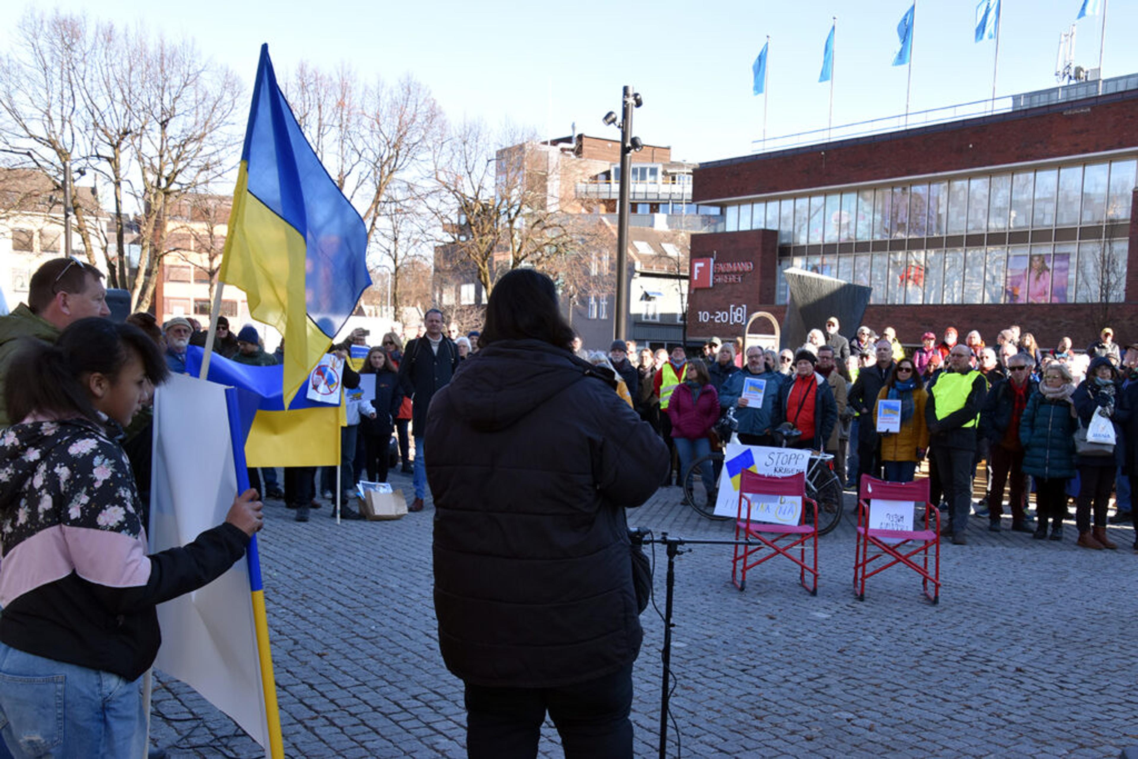 DEMO: Mot krigen og til støtte for Ukraina, i Tønsberg med mange reinger i rekkene. Les mer om det i ReAvisa på papir mars 2022. Foto: Stian Ormestad.