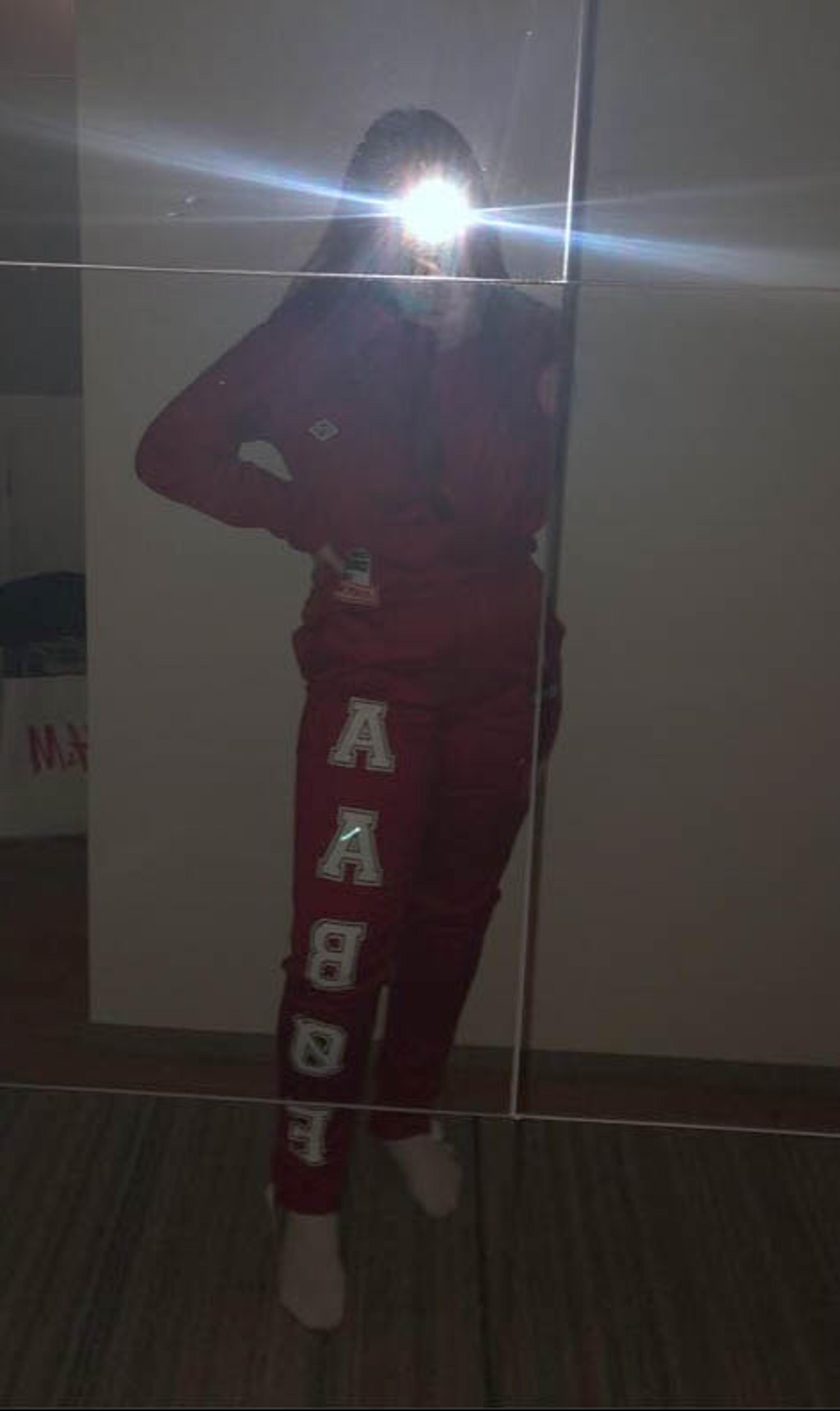 PYNTING: Nå som russetiden blir annerledes enn planlagt, får Kristine og andre russ nok med tid til å pynte dressen. Foto: Privat.