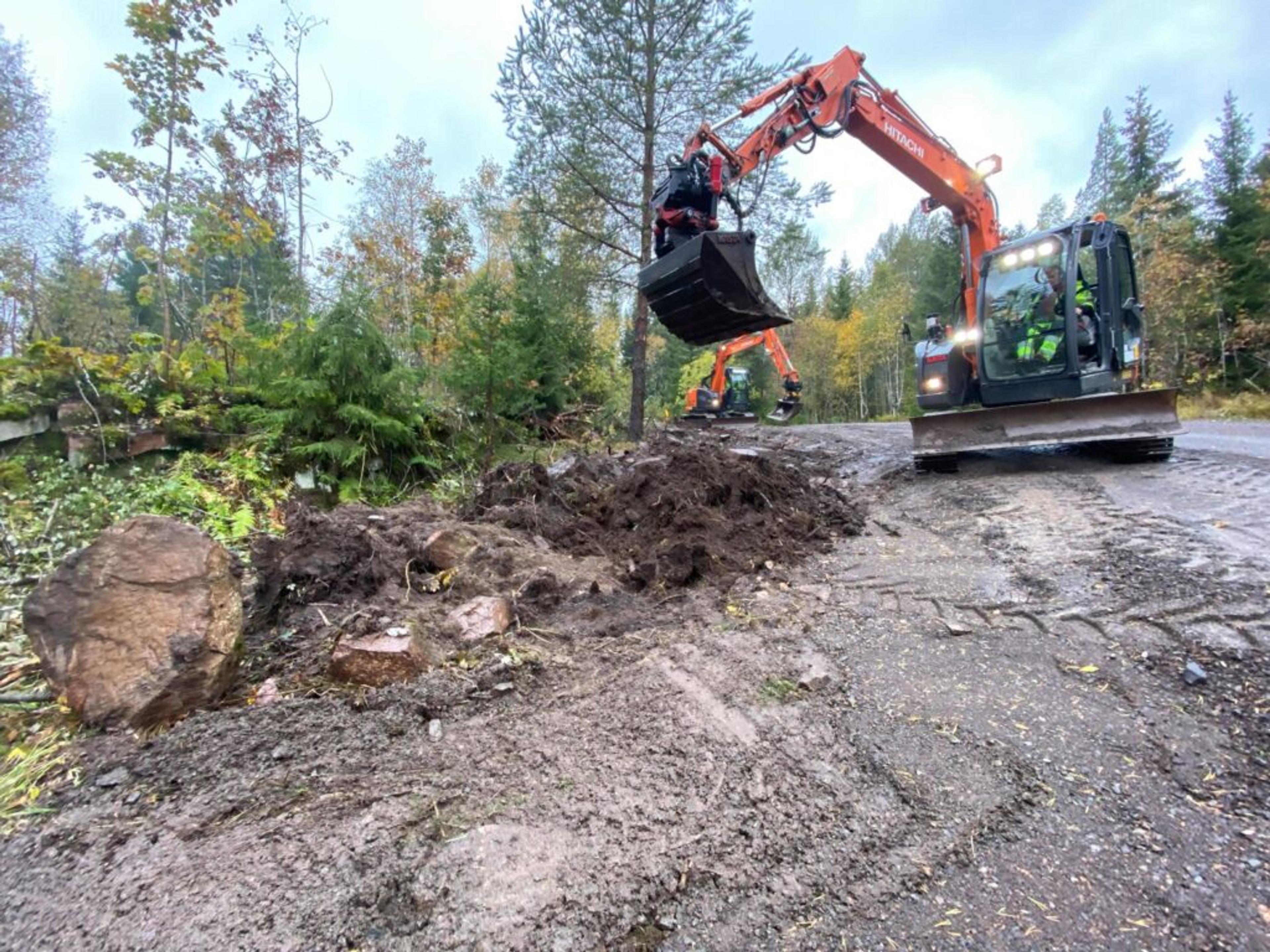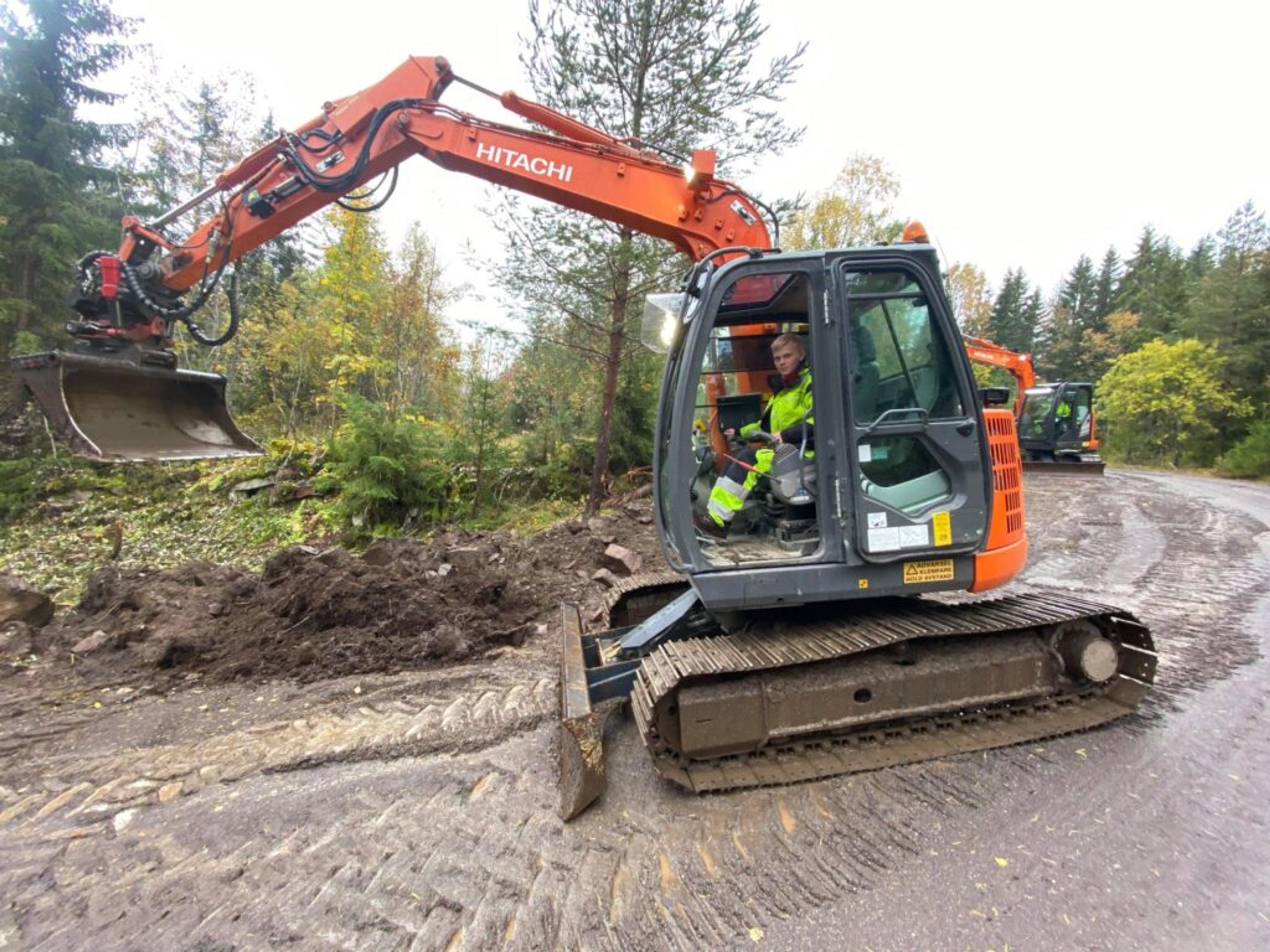 Alle de 43 elevene i klassen grøfter, lager stikkrenner, sprenger vekk fjell, med mer, og på den måten får et best mulig utgangspunkt når de fra neste år skal ut i praksis som lærlinger.