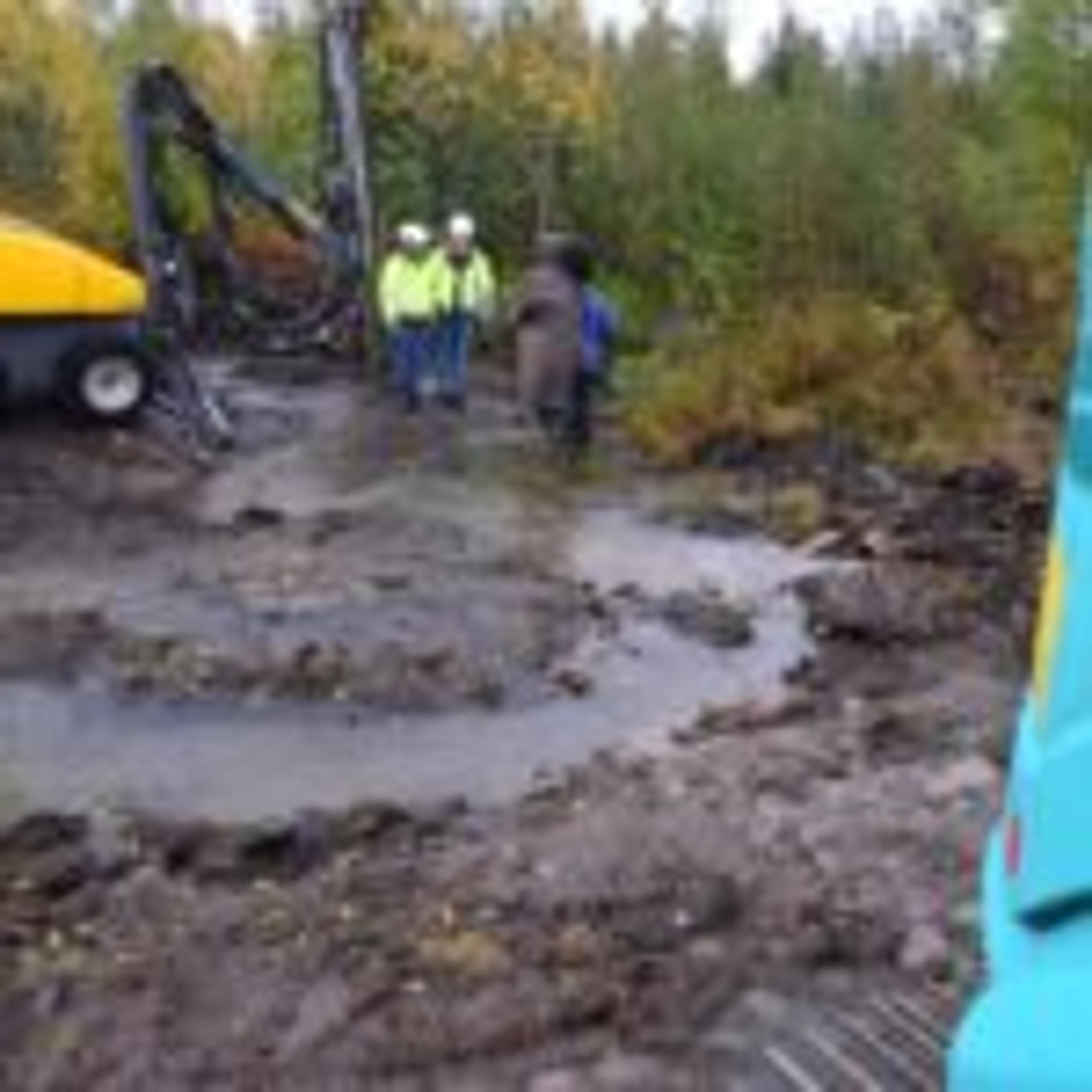 Her er det gravemaskiner, dumpere, traktorer og en borerigg, og alle elever får prøve seg på alt. Og det er et realt stykke arbeid som skal gjøres: