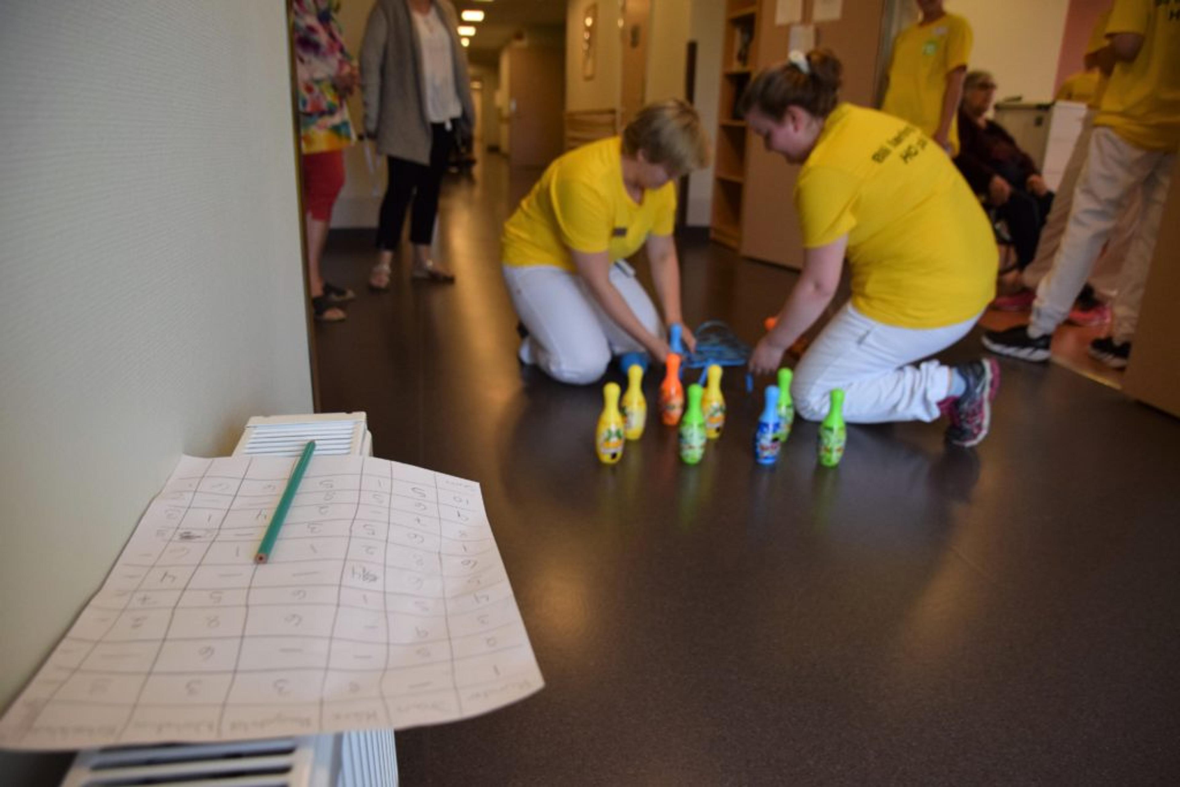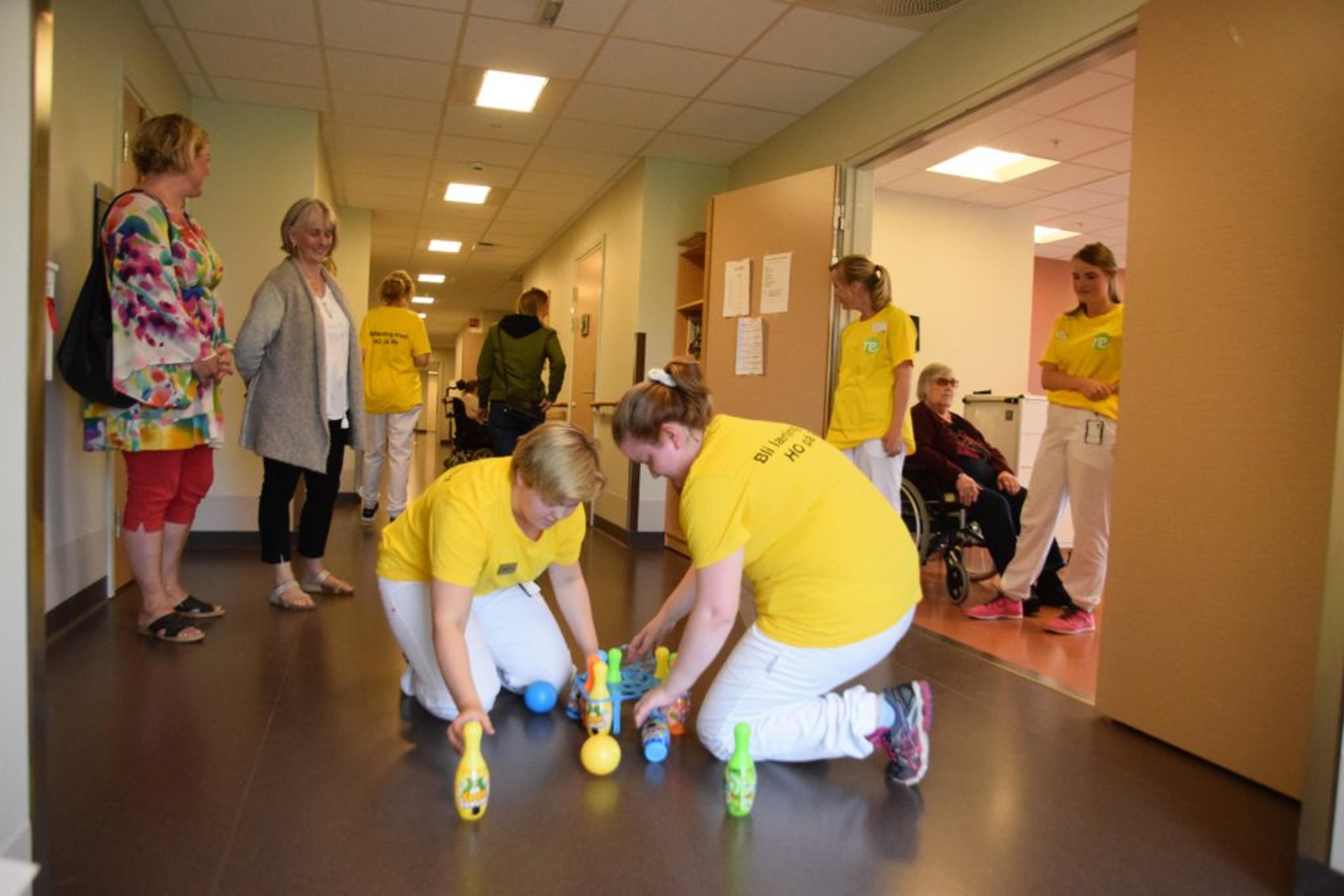 LEK OG MORO: Bowling i gangene var en av lekene Re VGS-elevene fiksa. Foto: Stian Ormestad.