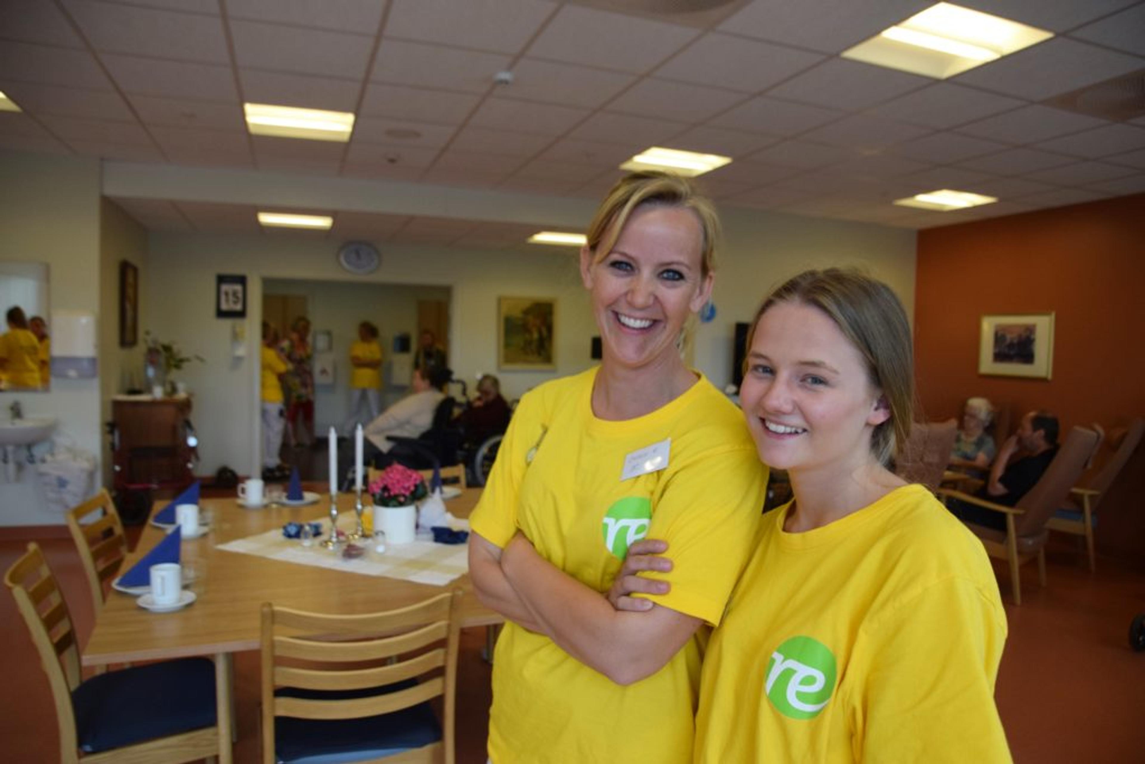 SIKKER PÅ SITT YRKESVALG: Christine Wadel, prosjektleder, får bare skryt av Re VGS-elev Natalia Kolsrud. Denne uka ga både elevene, de ansatte ved Re Helsehus, og beboerne veldig mye. Foto: Stian Ormestad.