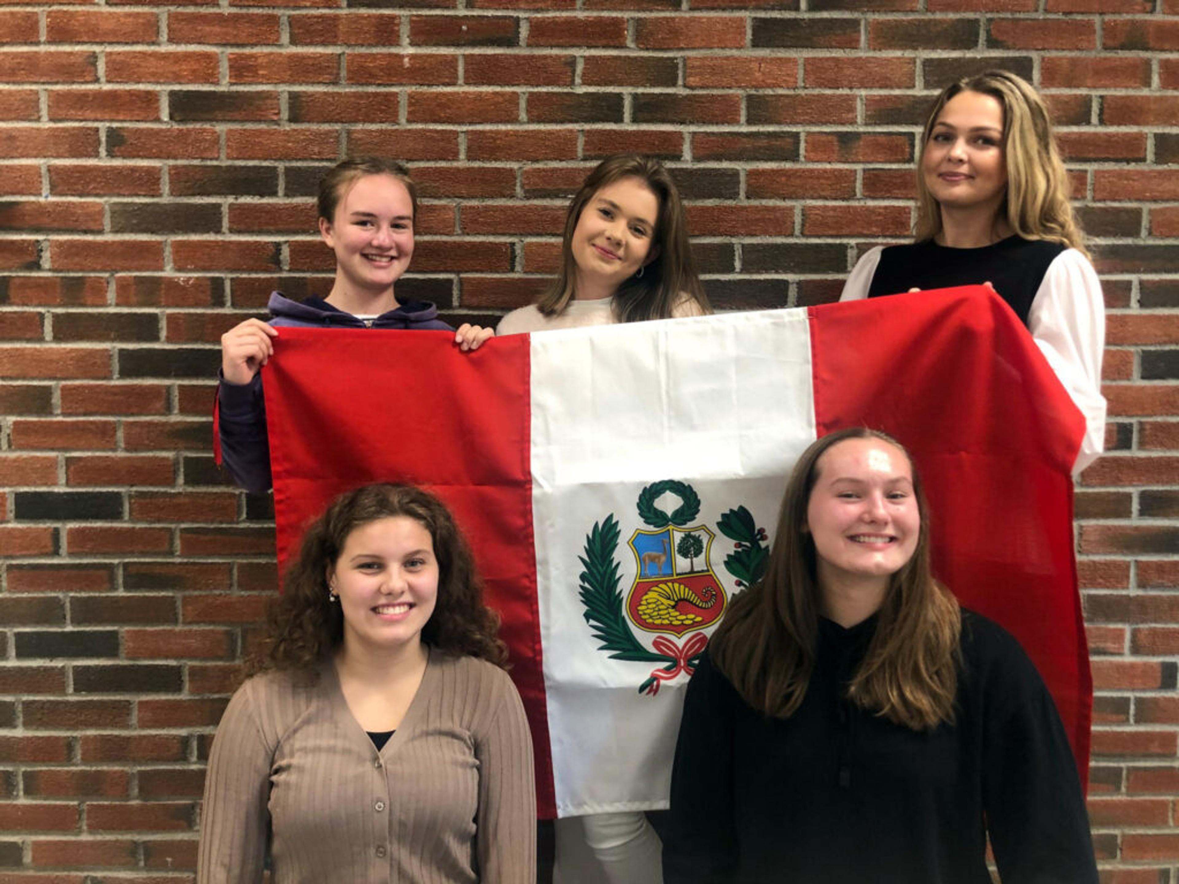 PROSJEKT PERU: Re VGS-elever foran fra venstre Tuva-Helen Disch Thorvaldsen, Susanne Siebenlist Smidsrød, bak fra venstre Karine Næss, Kaja Bø, Madelene Slåtta Kongstein. Foto: Privat.