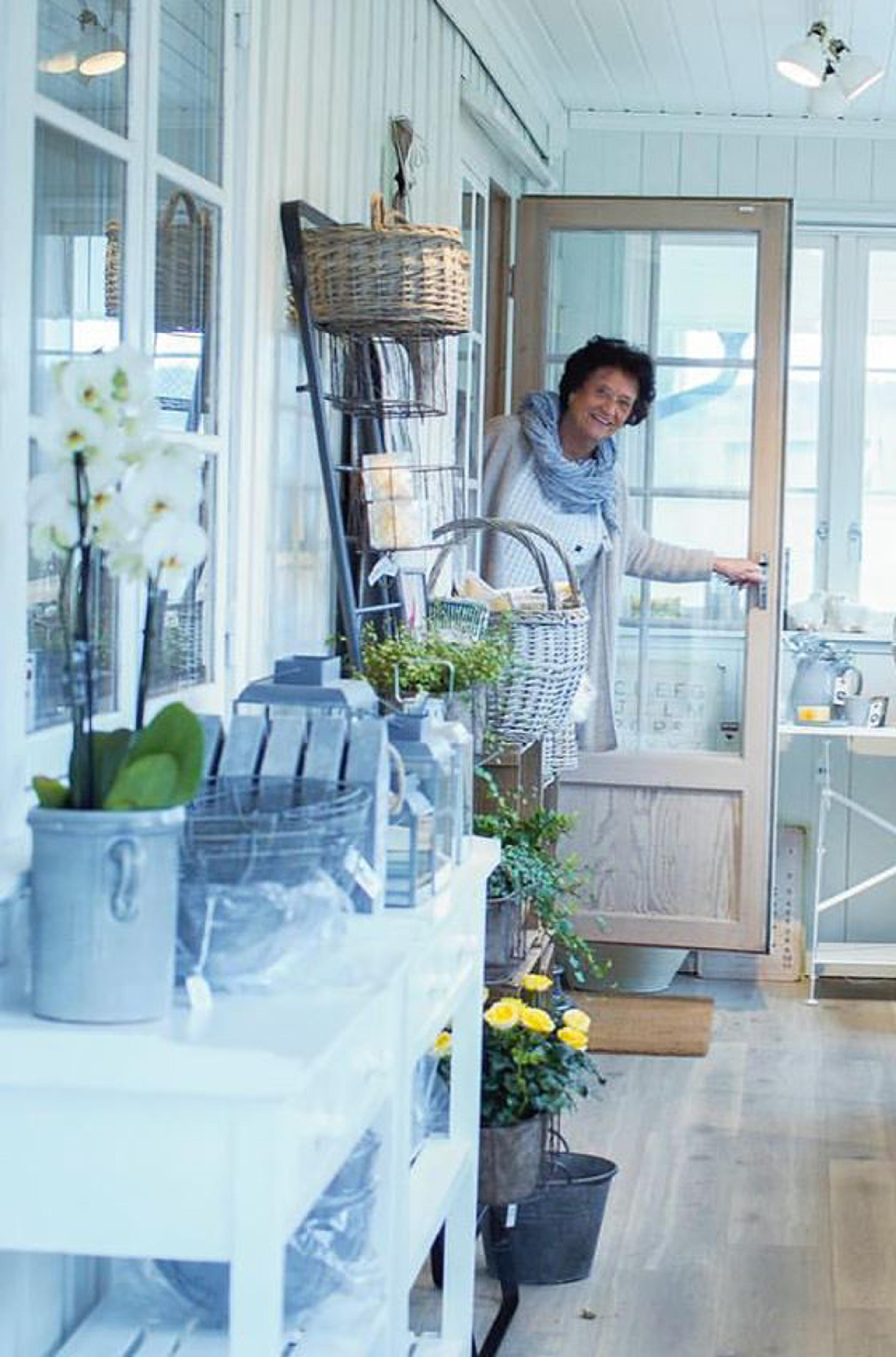 LANDHANDLER: Wenche Weum Bue på Vika landhandel på Svinevoll holder hjula i gang med varelevering på trappa. Foto: Privat.