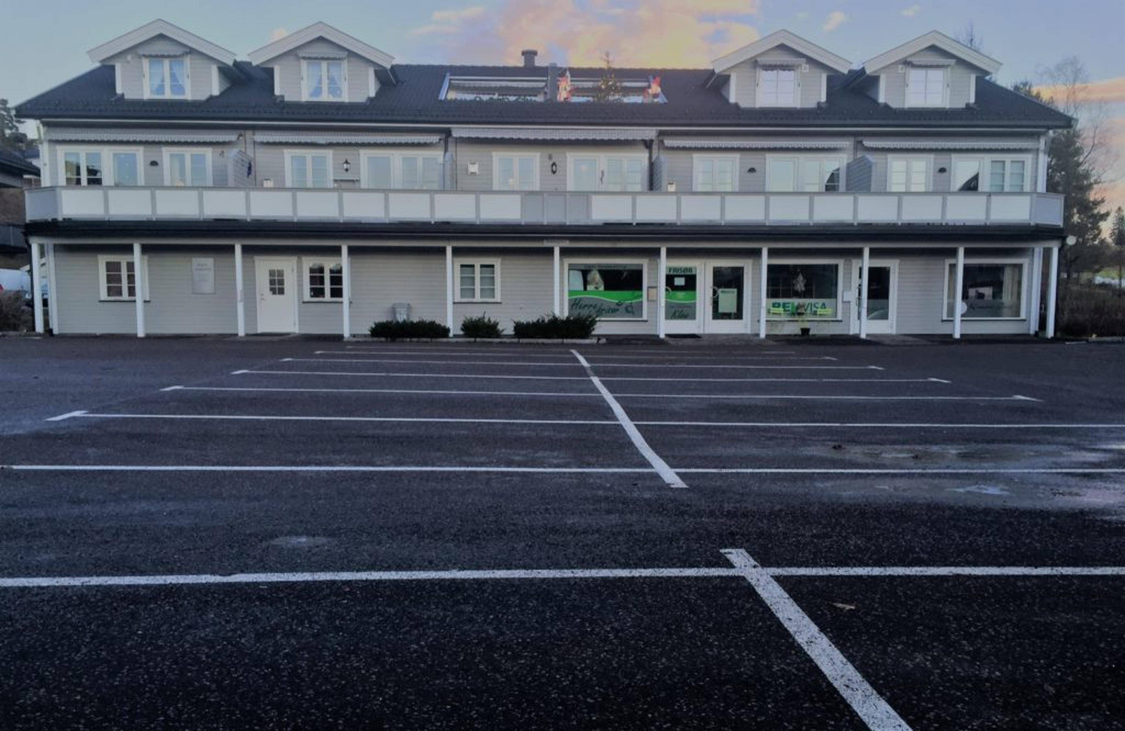 HELT TOM PARKERINGSPLASS: Det er ikke ofte denne parkeringsplassen på lille-torvet i Revetalgata er helt fri for biler – det skjer bare til jul. I Revetalgata 8 holder ReAvisa til sammen med Herrefrisør Kløw, Revetal legekontor og Re begravelsesbyrå. Foto: Stian Ormestad.