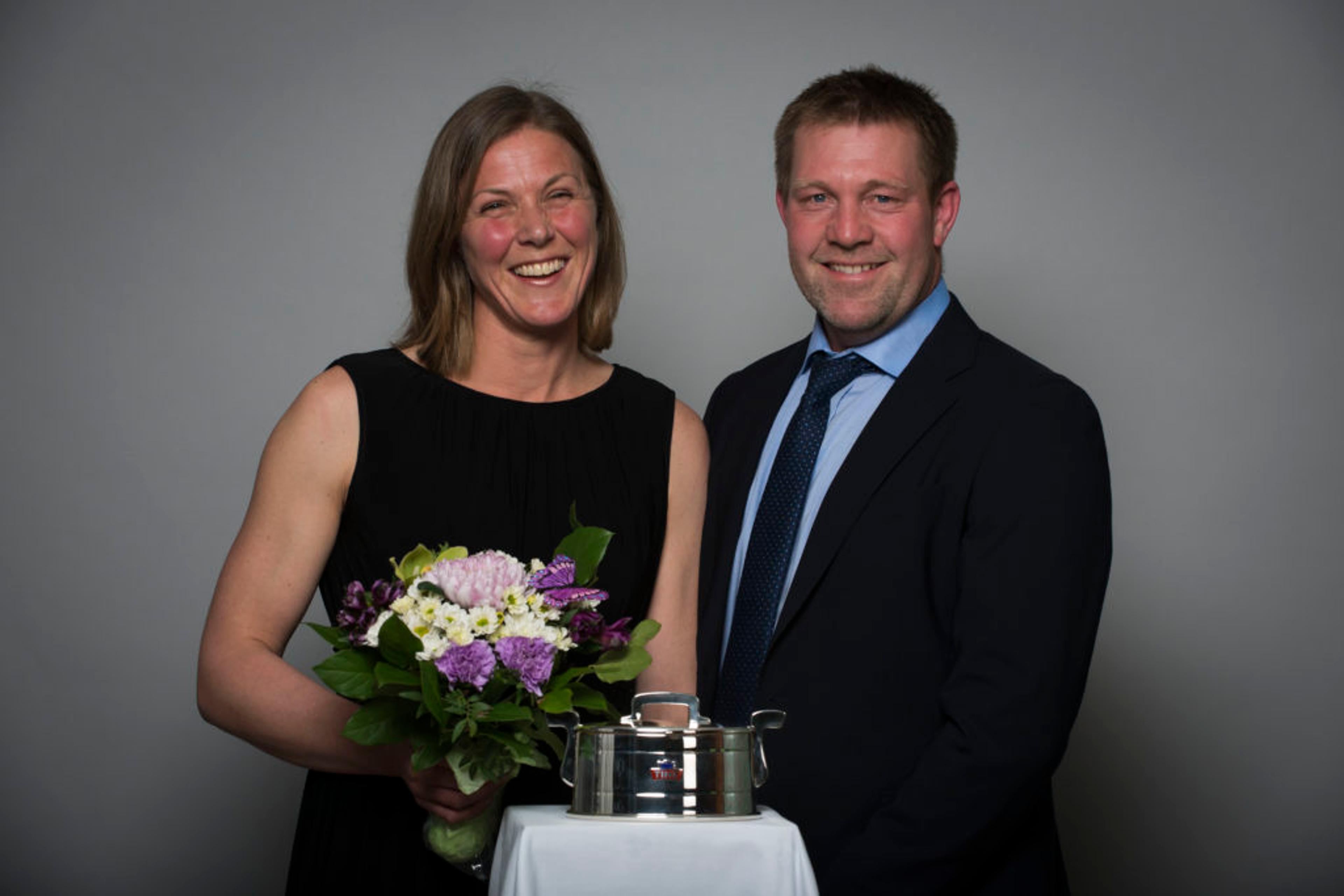 ELITEMELKERE: Ekteparet Reidun Bogstad Knutsen (39) og Arild Knutsen (43) på Berg i Ramnes. Foto: Pressemelding.