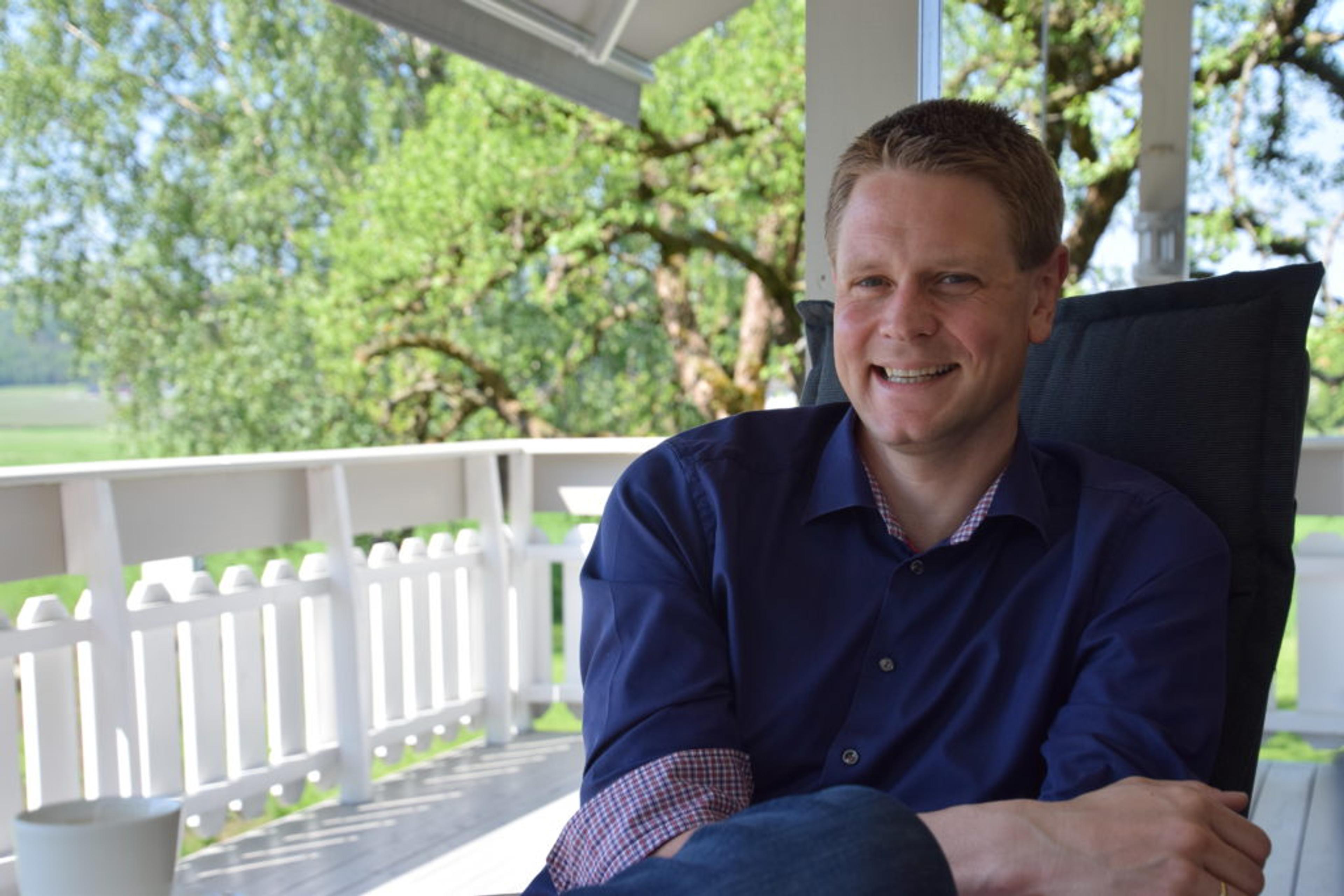 IMPONERENDE CV: Harald Solberg (47) har rekki mye i sitt arbeidsliv, nå blir han leder for Norsk Industri. Bildet er fra en tidligere ReAvisa-prat på terrassen hjemme på Fossan. Arkivfoto: Stian Ormestad, ReAvisa.