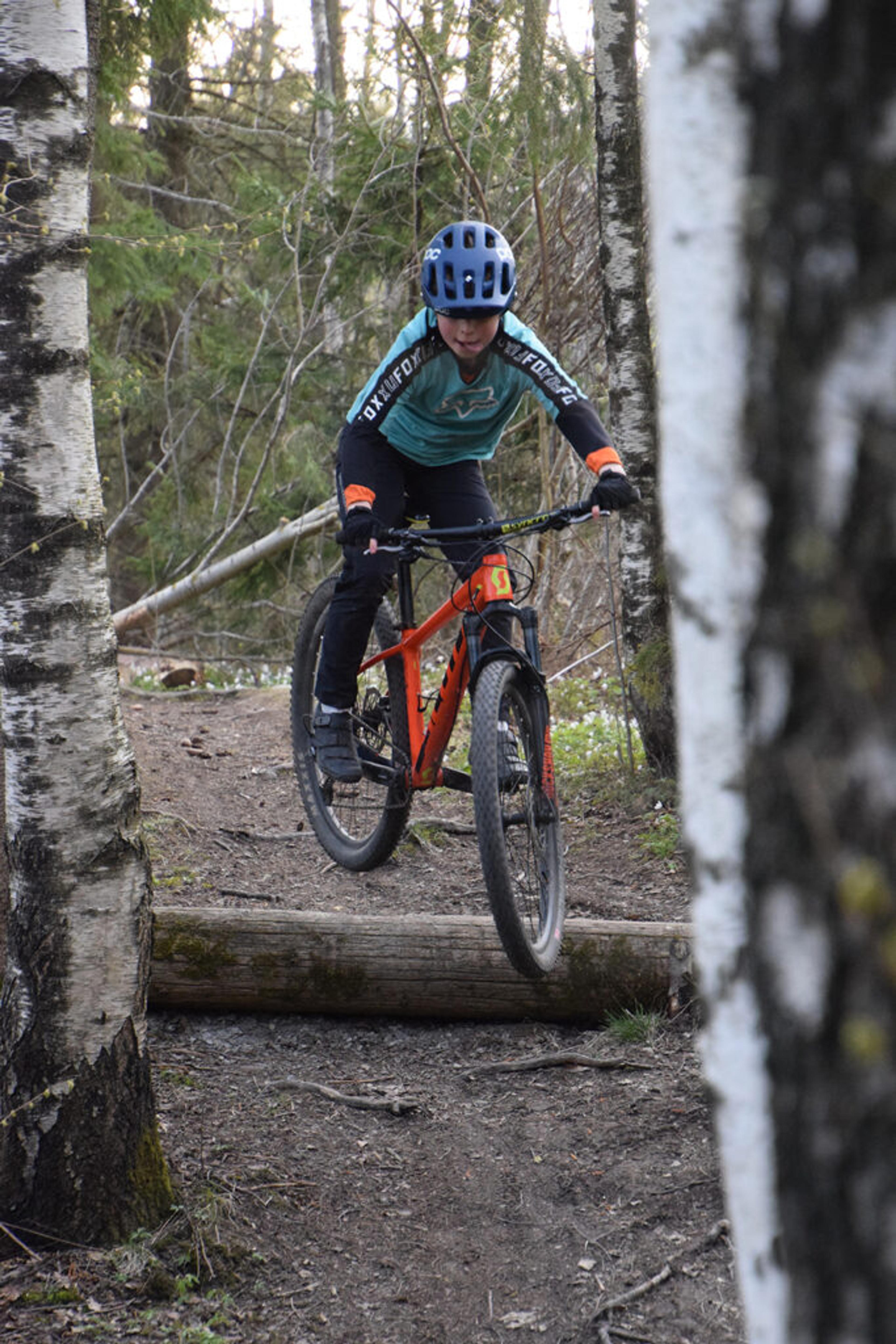 FART OG SPENNING: Aadne Førsund Hjelmtvedt (10) i godt driv i skauen i Bergsåsen. Foto: Stian Ormestad.
