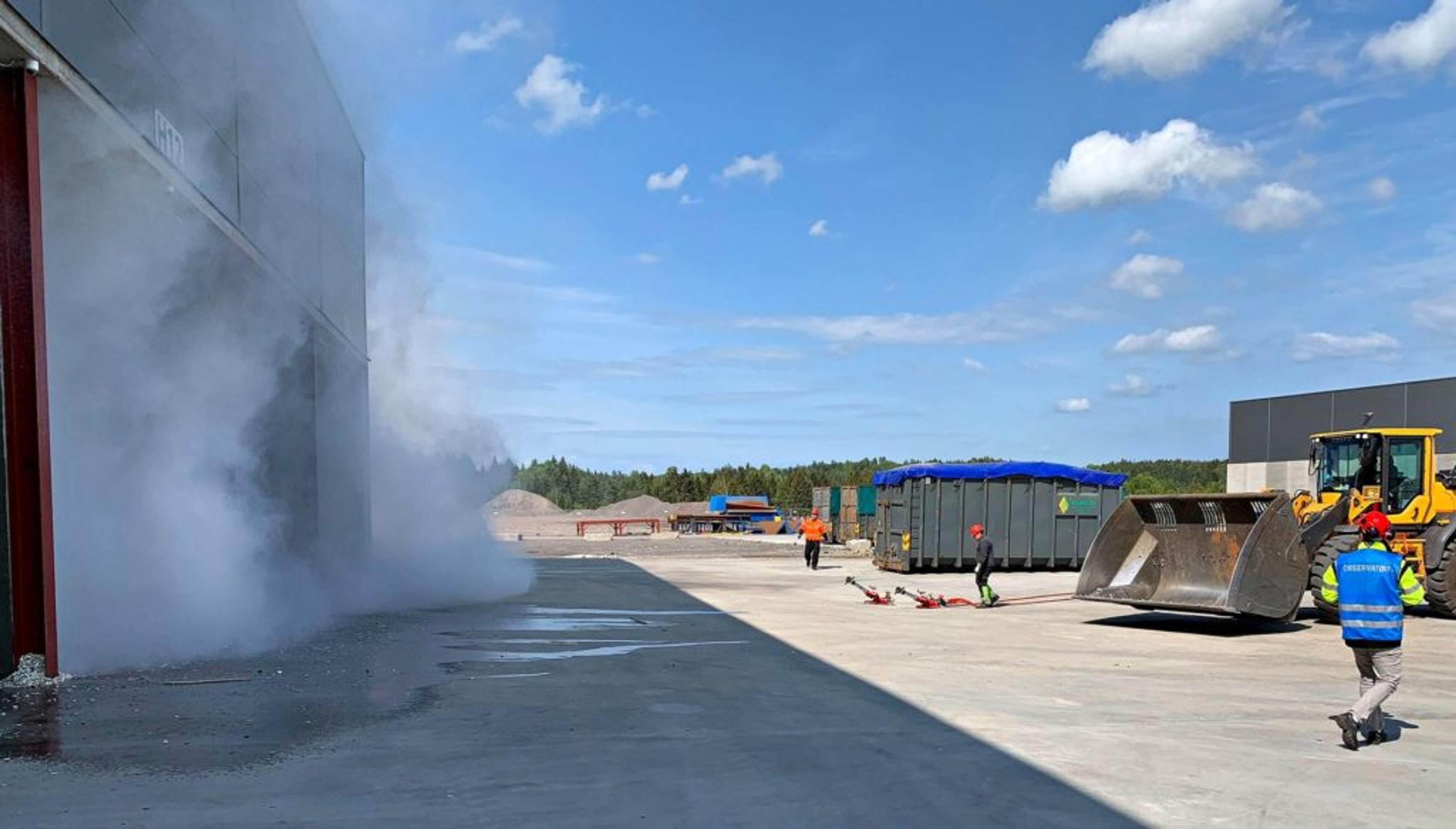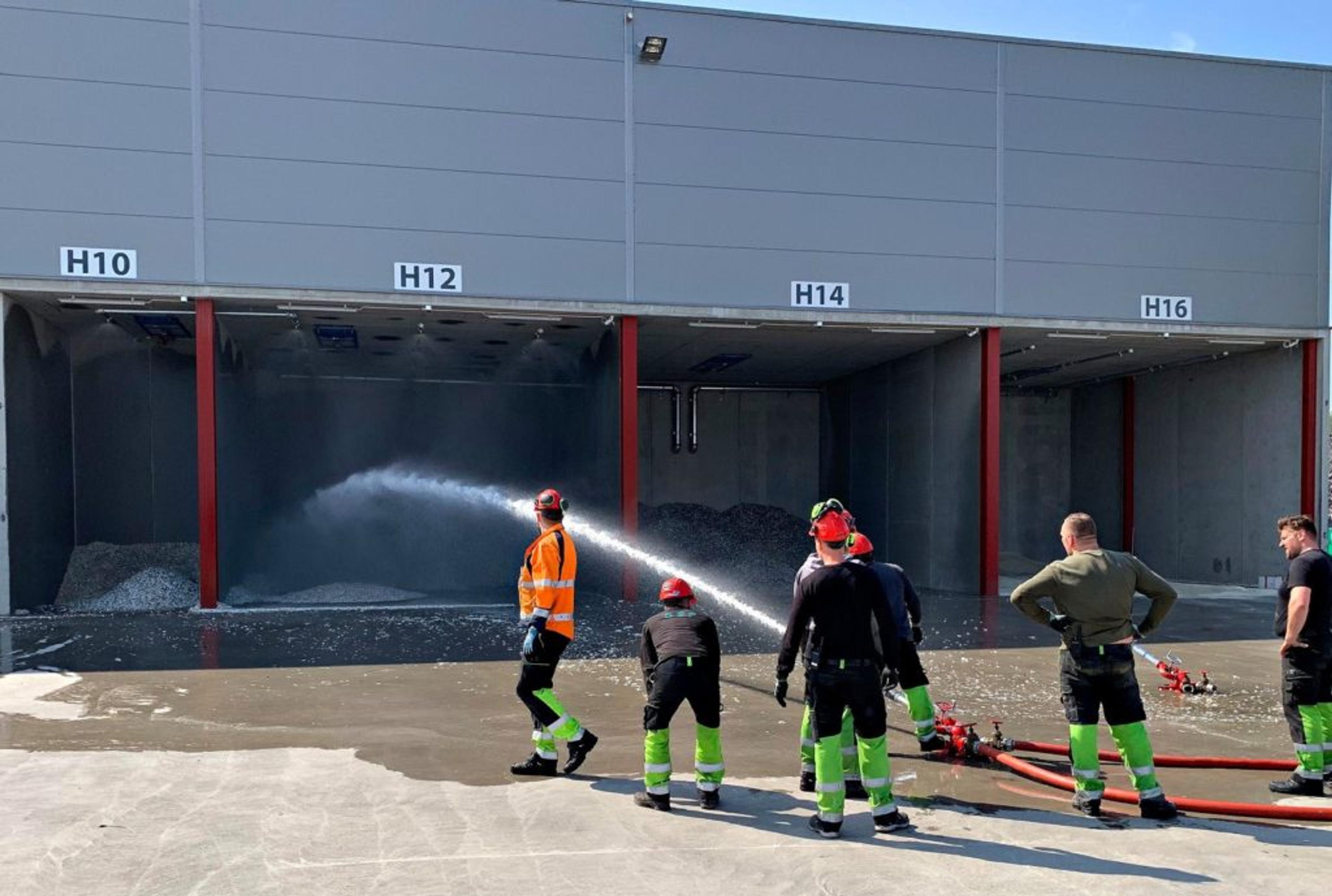 BRANNØVELSE: Vestfold interkommunale brannvesen øvde tidligere i sommer sammen med Revac. Foto: VIB.