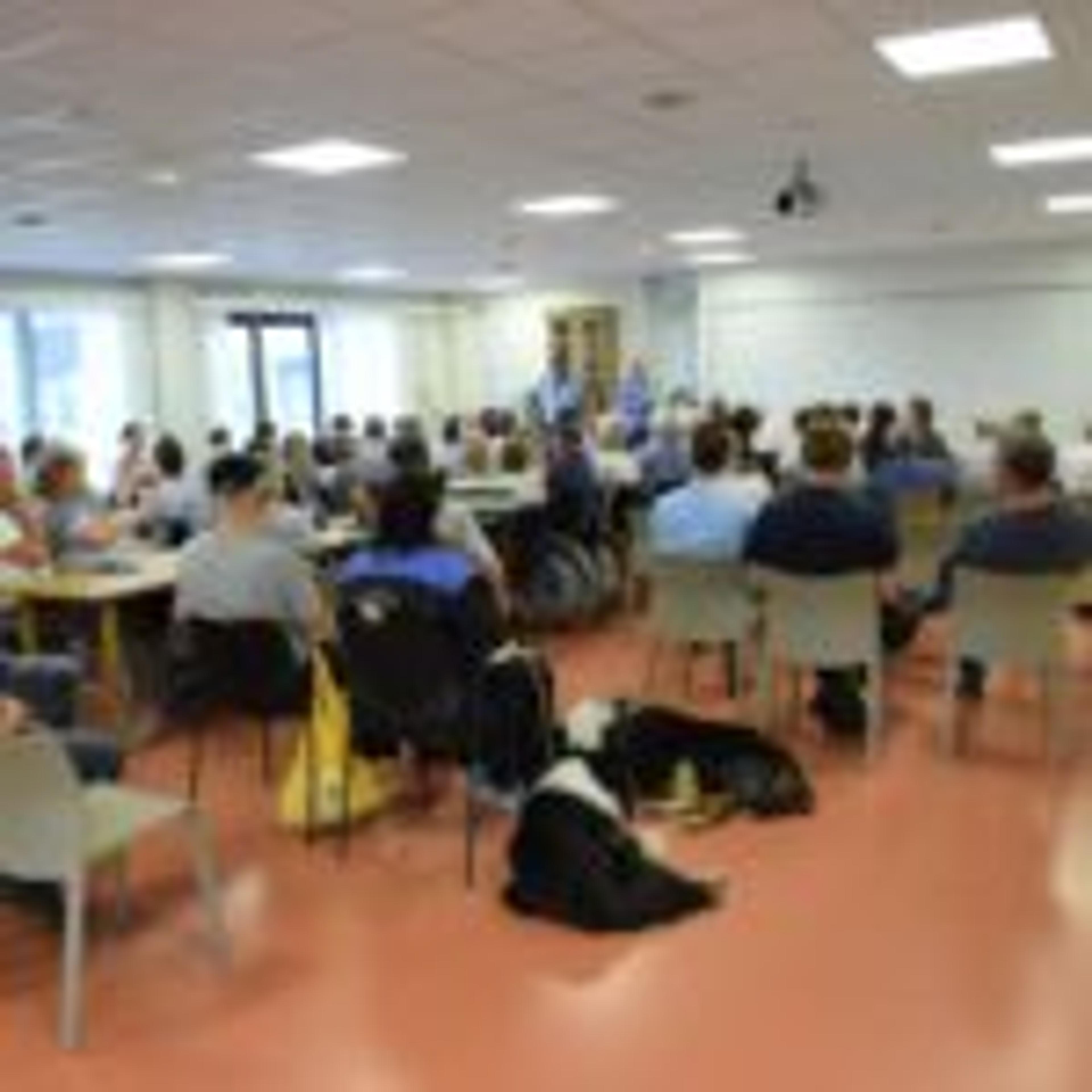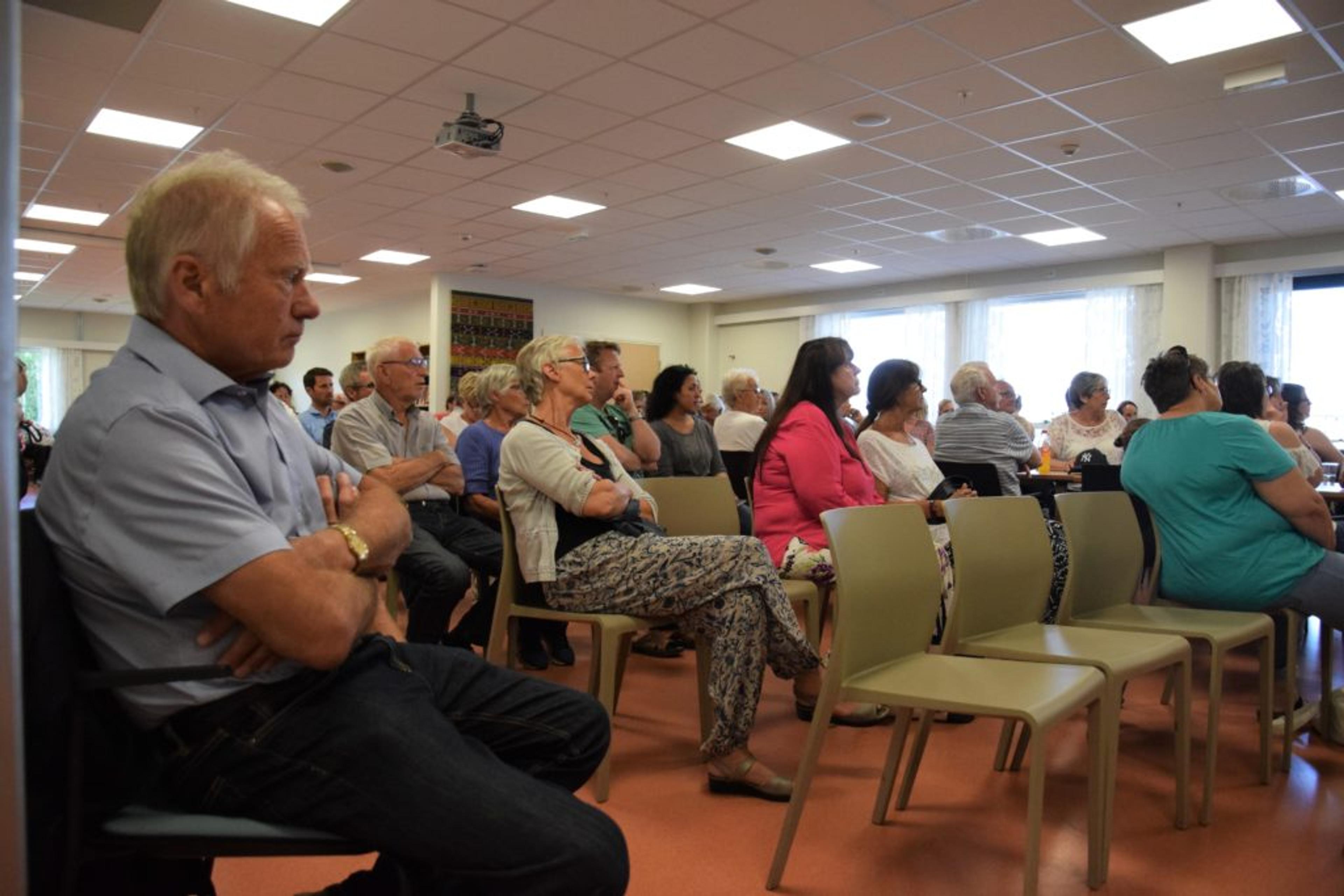 AMPER STEMNING: Re-ordfører Thorvald Hillestad kan registrere en mildt sagt amper steming i infomøtet med de evakuerte tirsdag 29. mai – godt over to døgn etter at brannen starta. Foto: Stian Ormestad.