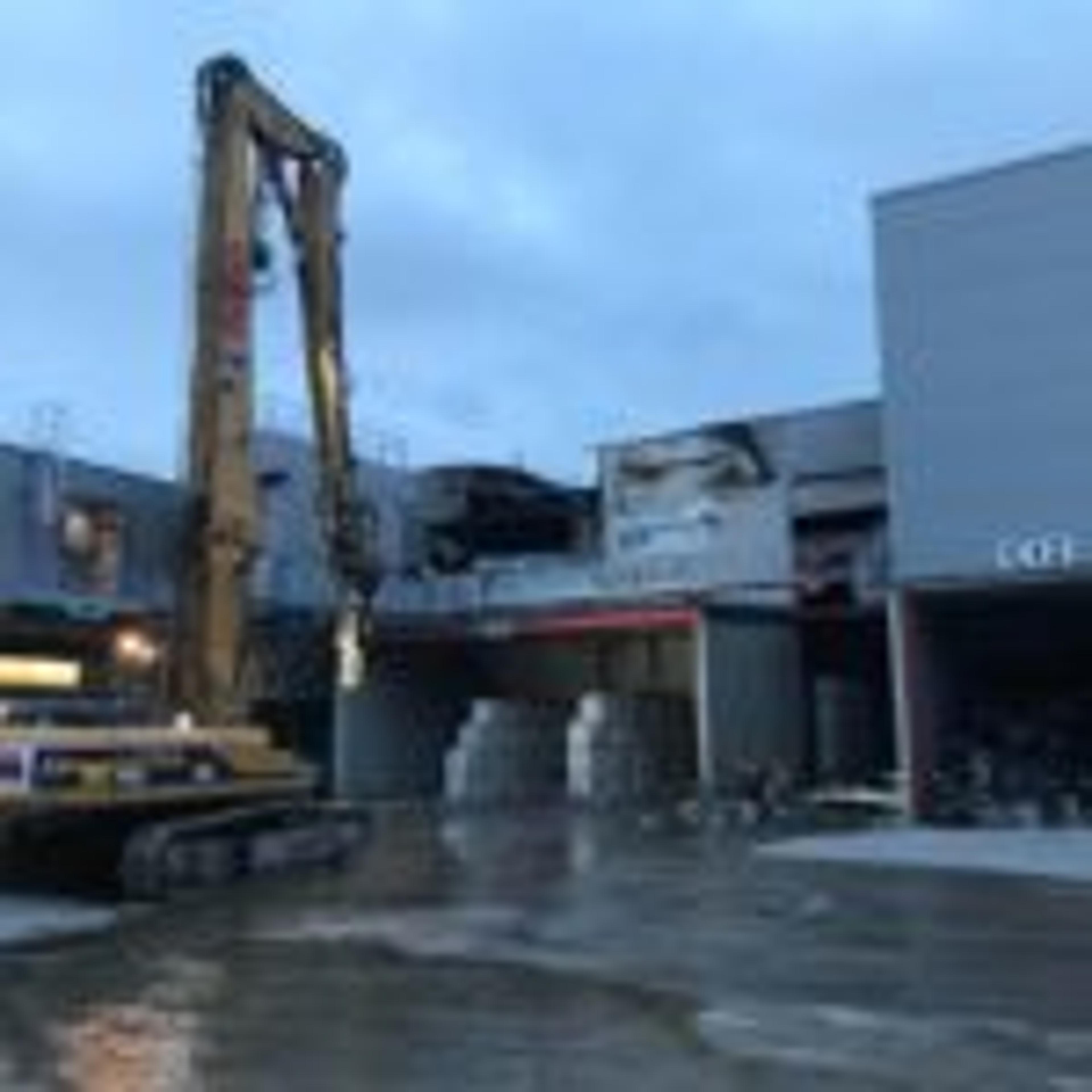 SISTE INNSPURT: Taket rives og massene skal tas ut for å slokke skikkelig i løpet av tirsdagen. Da ventes det nye røykskyer over Re. Foto: VIB.