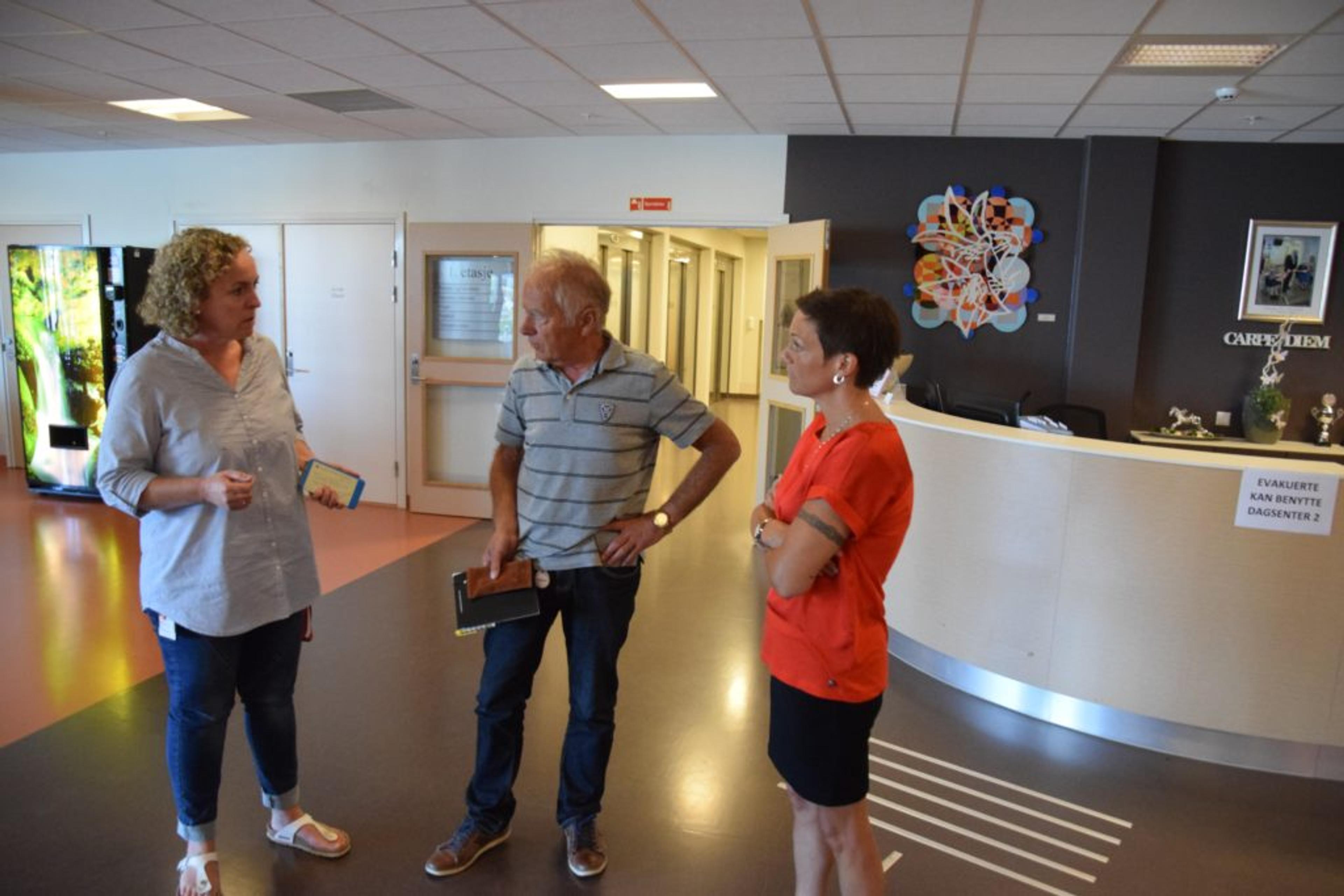 TAR I MOT: Ansatte på Re helsehus tar i mot de evakuerte i resepsjonen. Foto: Stian Ormestad.