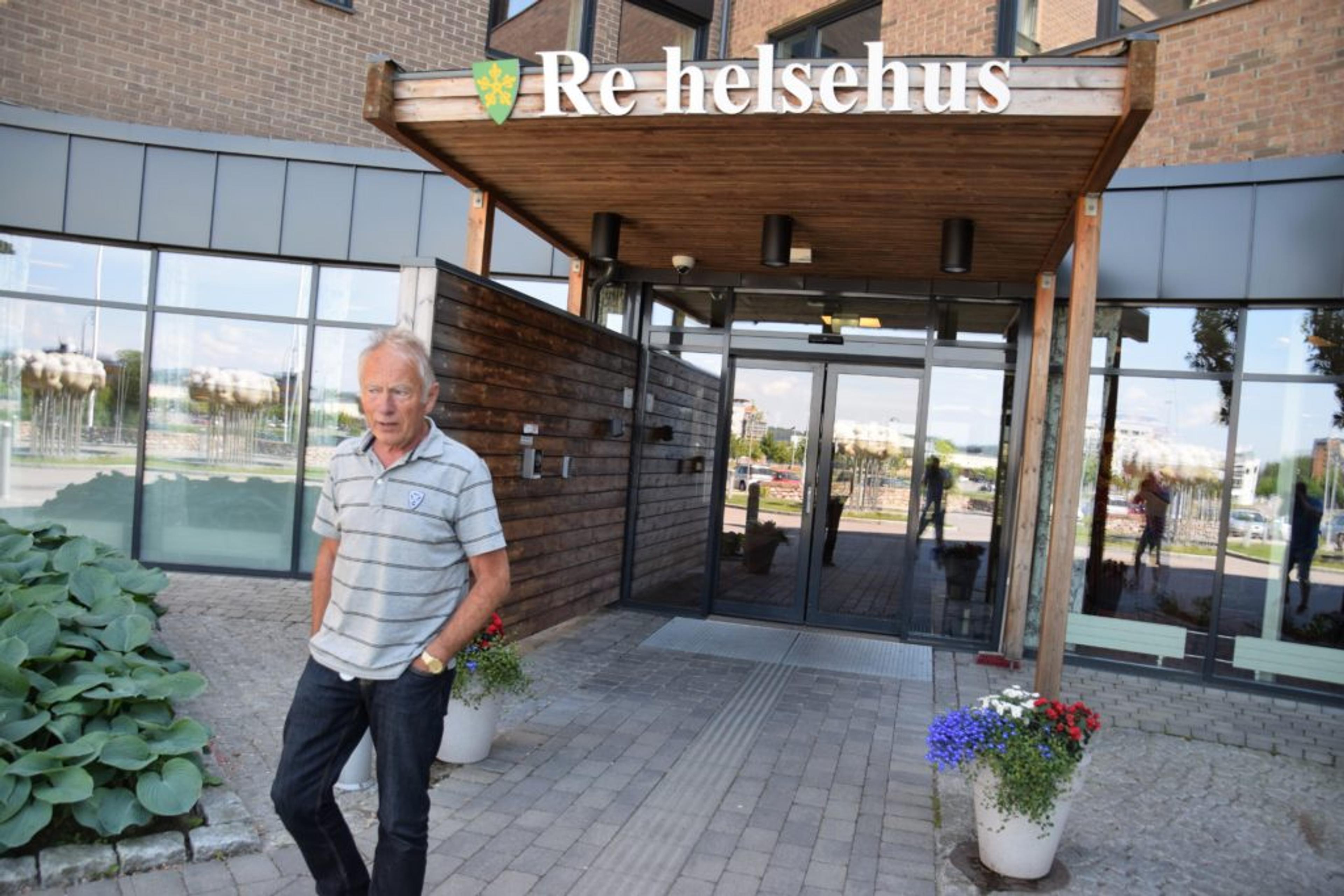 LEDER KRISESTABEN: Re-ordfører Thorvald Hillestad, foran Re helsehus – stedet alle evakuerte skal møte fram til ny beskjed kommer. Foto: Stian Ormestad.