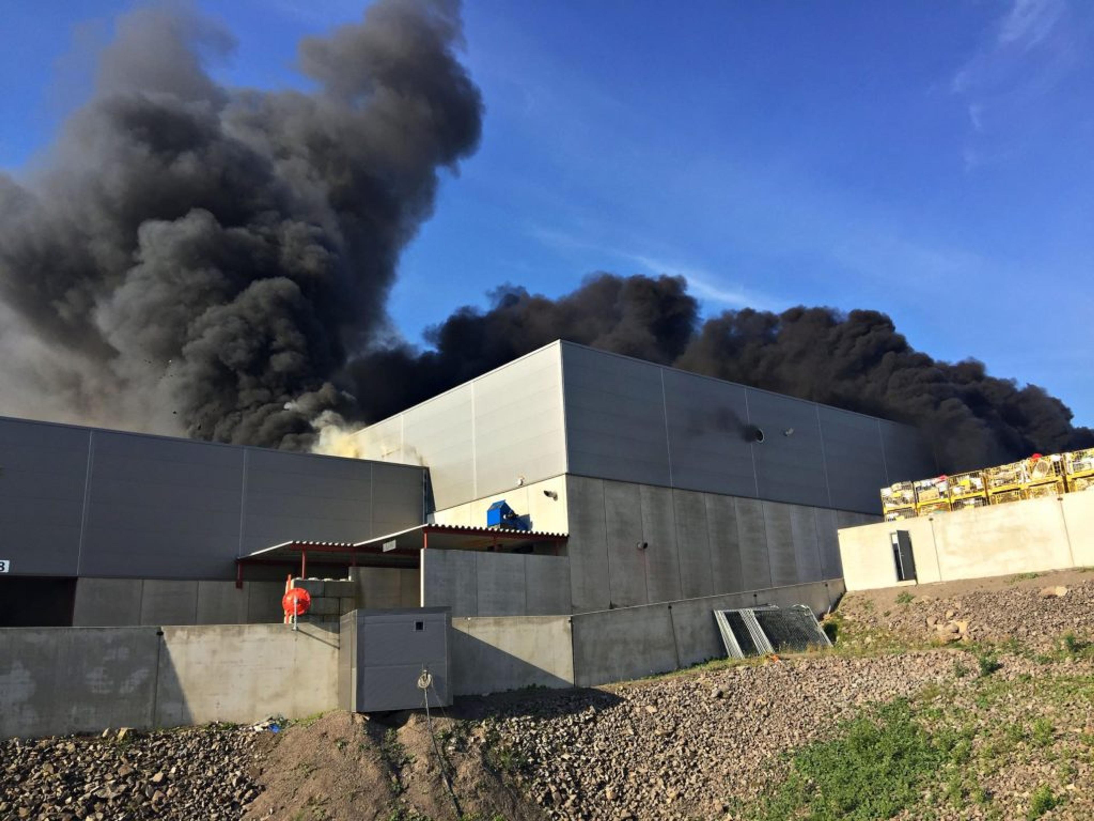 TJUKK, SVART RØYK: Det er fire år siden storbrannen hos Revac, nå er gjenvinningsbedriften ramma av brann igjen. Slik så det ut søndag morgen 27. mai 2018 hos Revac. Foto: VIB.