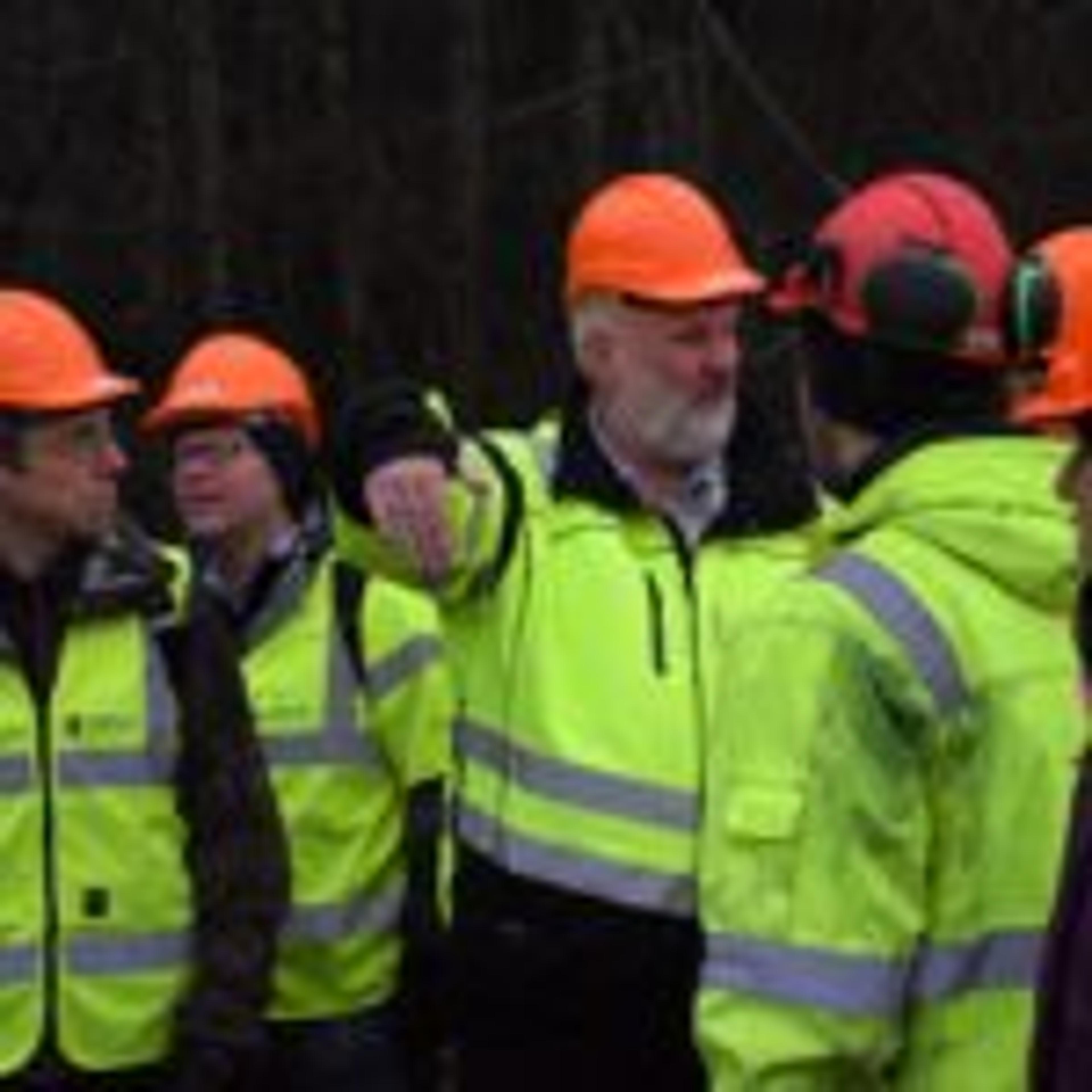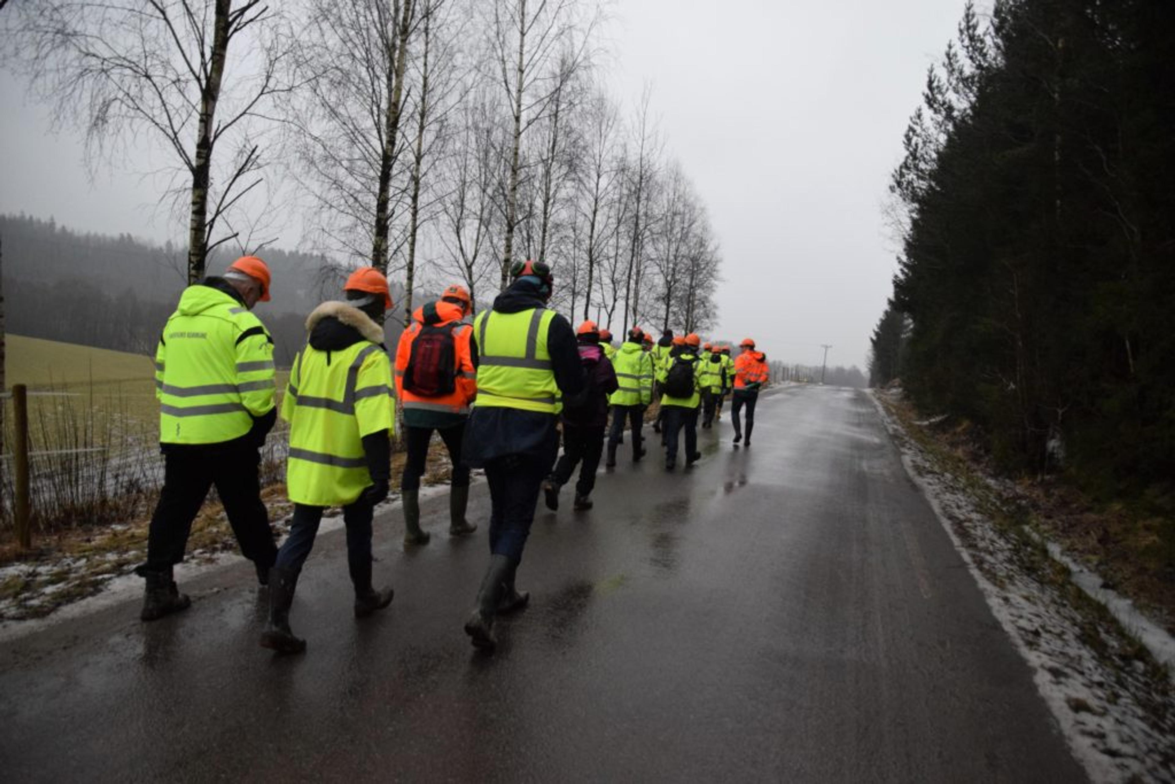 UT PÅ TUR: Retten var på befaring hele torsdag 2. februar. Her går turen fra vassdrag til vassdrag langs Bjuneveien. Foto: Stian Ormestad.
