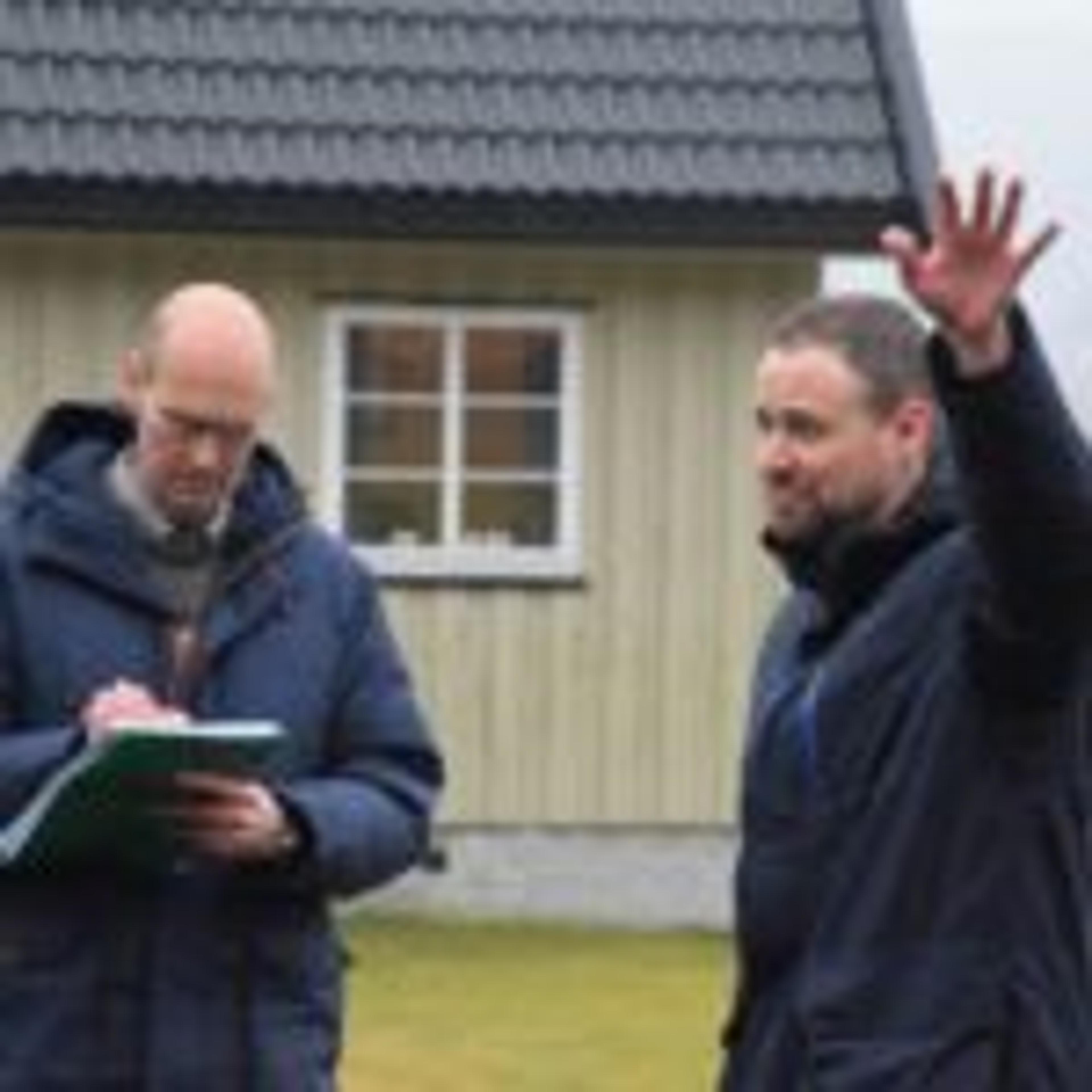 VITNE: Tidligere virksomhetsleder i Re kommune Arne Johnsen forklarer seg underveis i befaringen. Foto: Stian Ormestad.