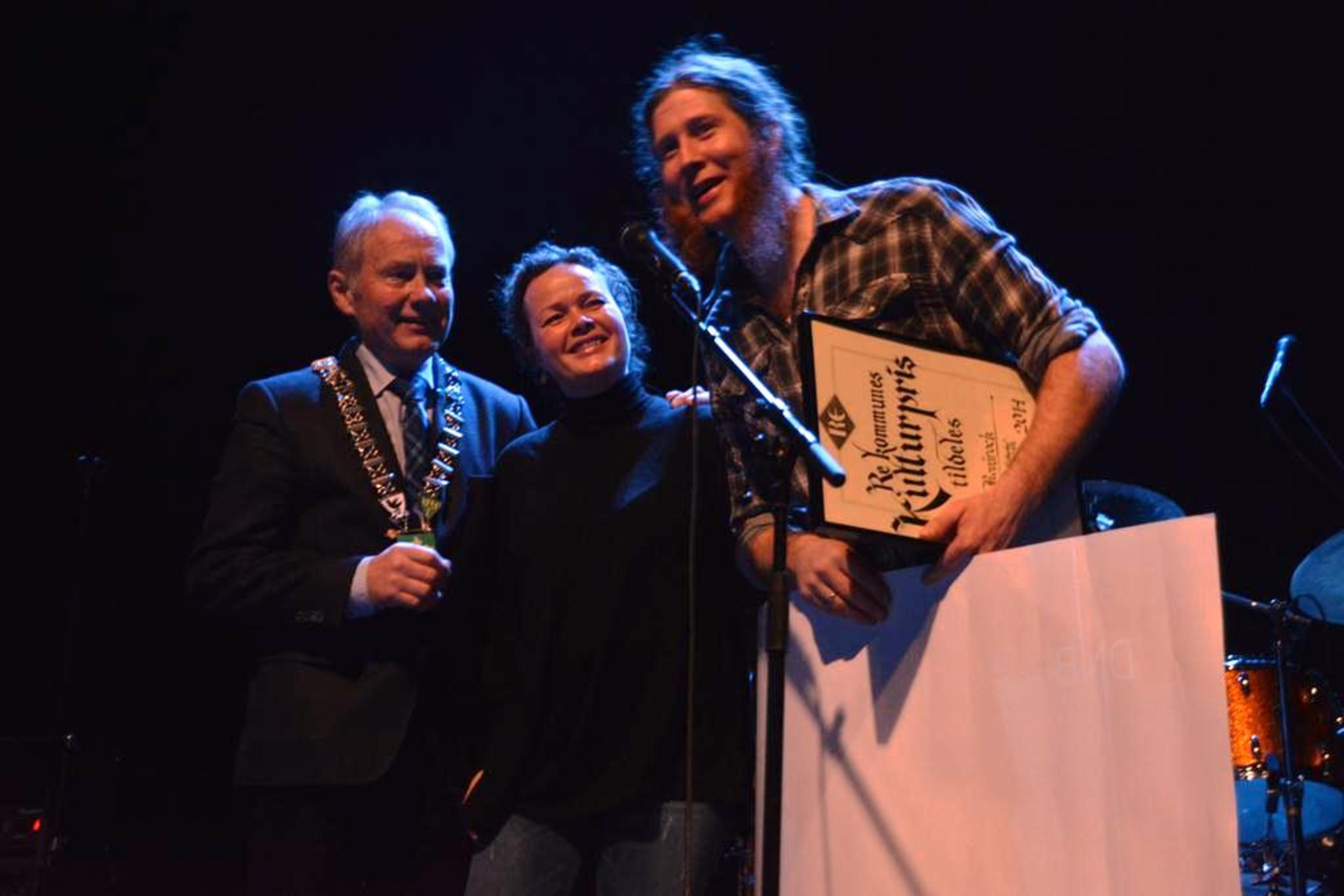 KULTURPRIS: Under Revårockefeller fikk festivalsjef Snorre Langeland og Revårocken Re kommunes kulturpris. – Thorvald tok turen da, så nå håper vi ordfører Anne Rygh Pedersen tar turen ned på brygga. Foto: Synne Eggum Myrvang, ReAvisa.