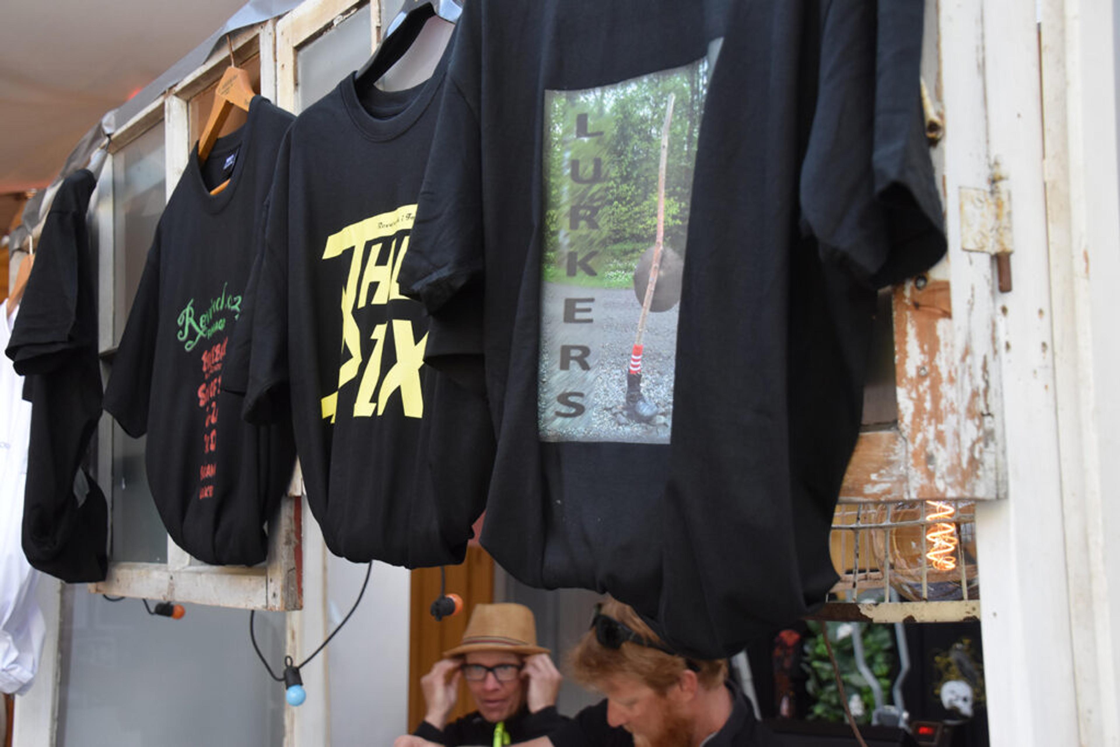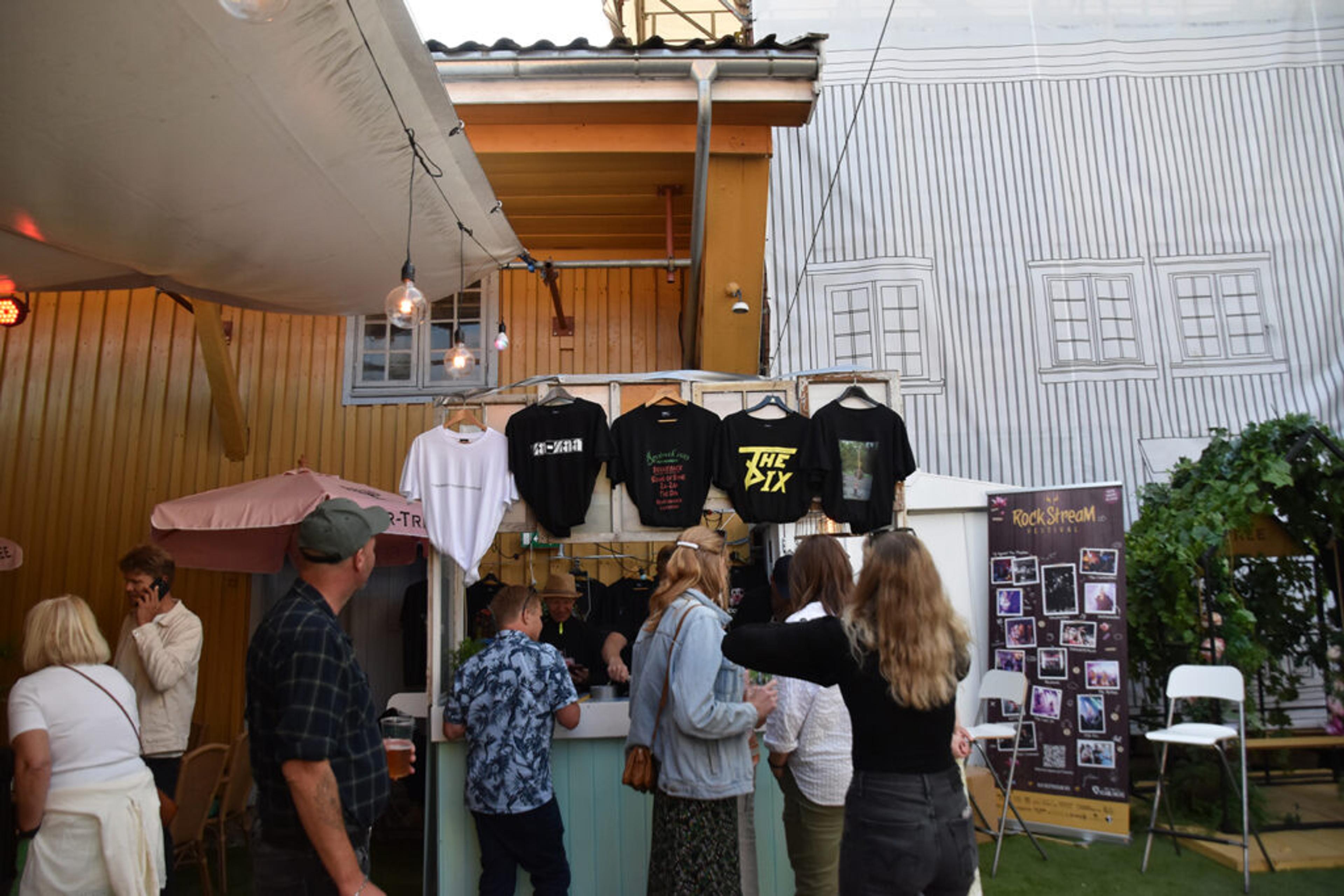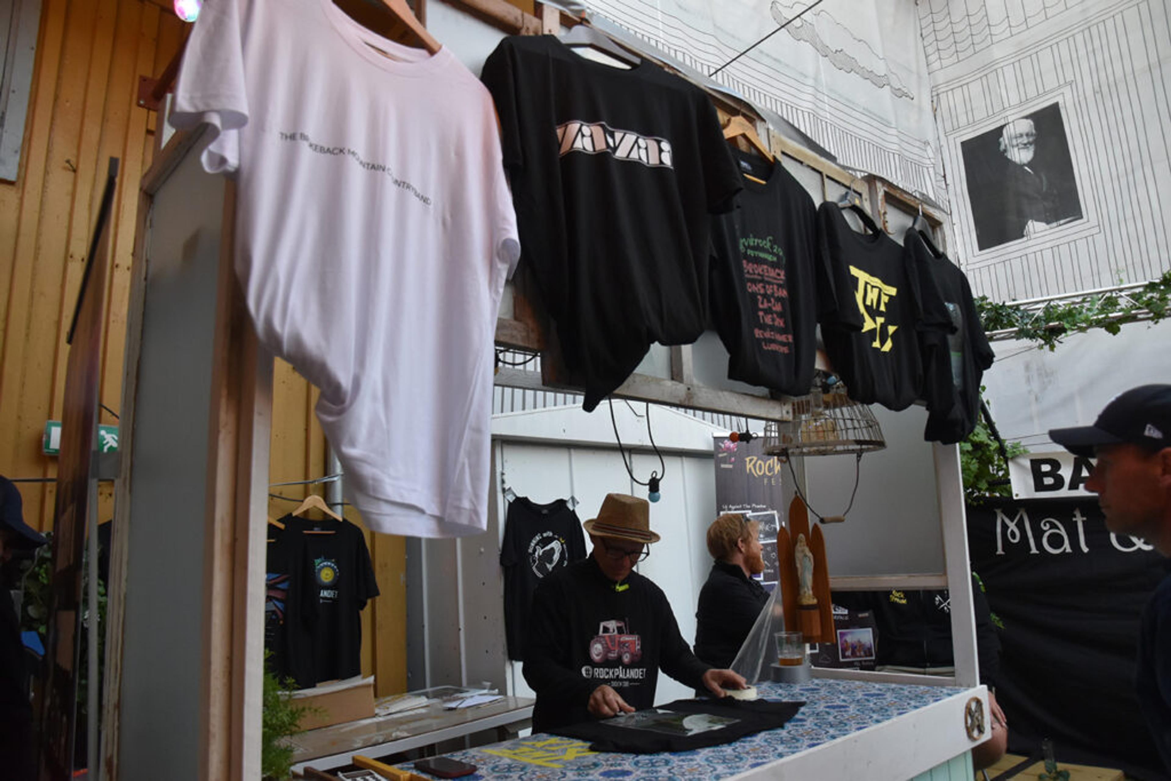 MERCH: En stand rigga i stand av en annen Re-festival, Rockstream, solgte T-skjorter og annet moro med logoene til banda som spilte på. Foto: Synne Eggum Myrvang, ReAvisa.