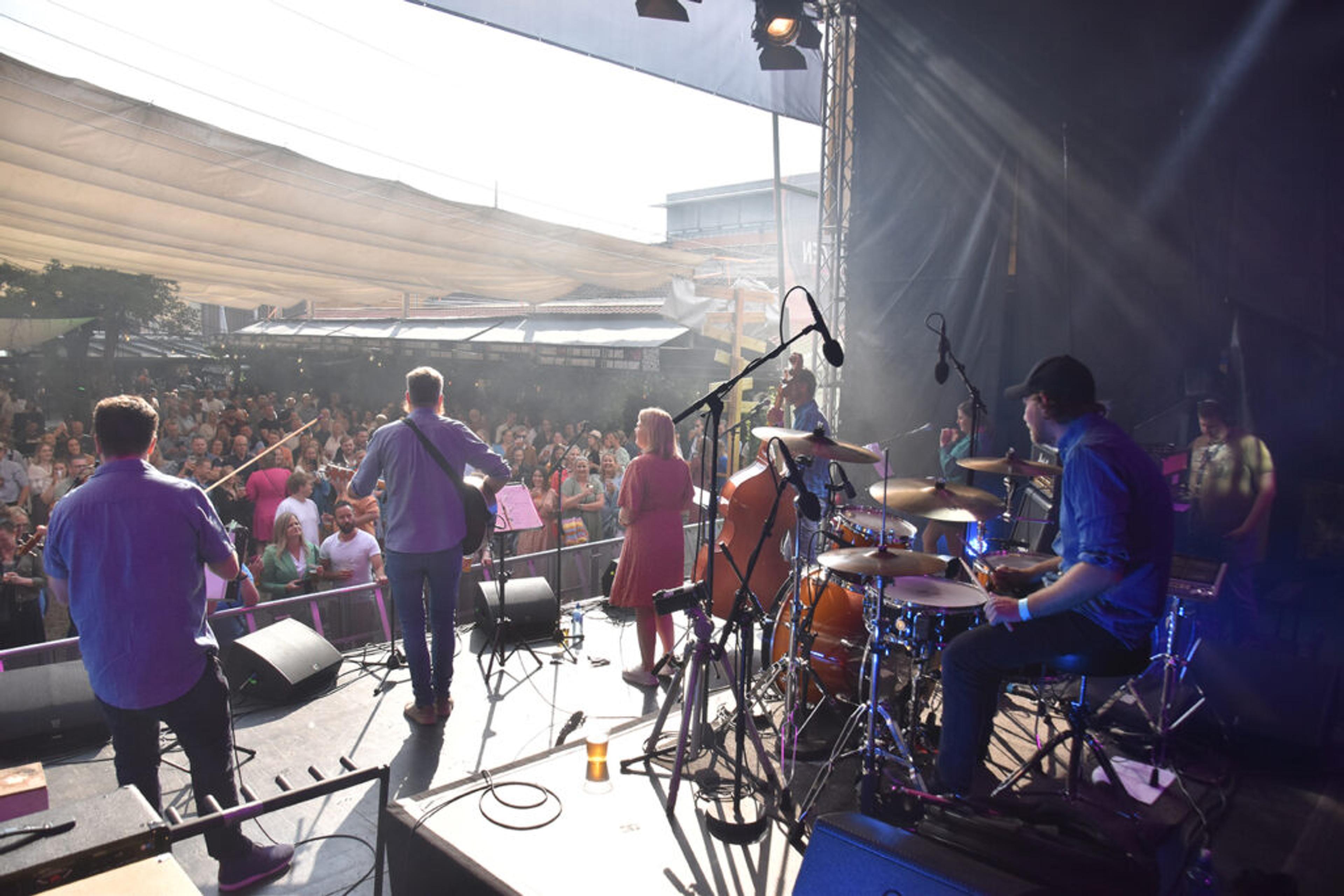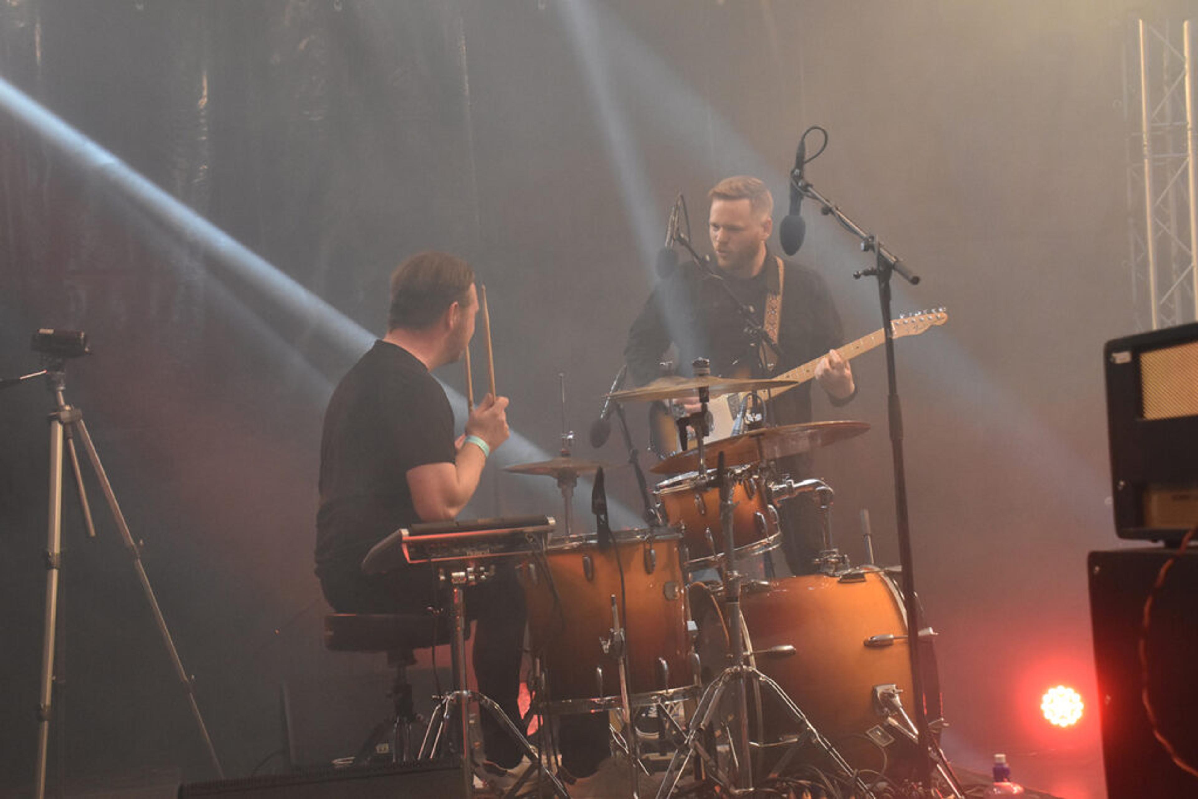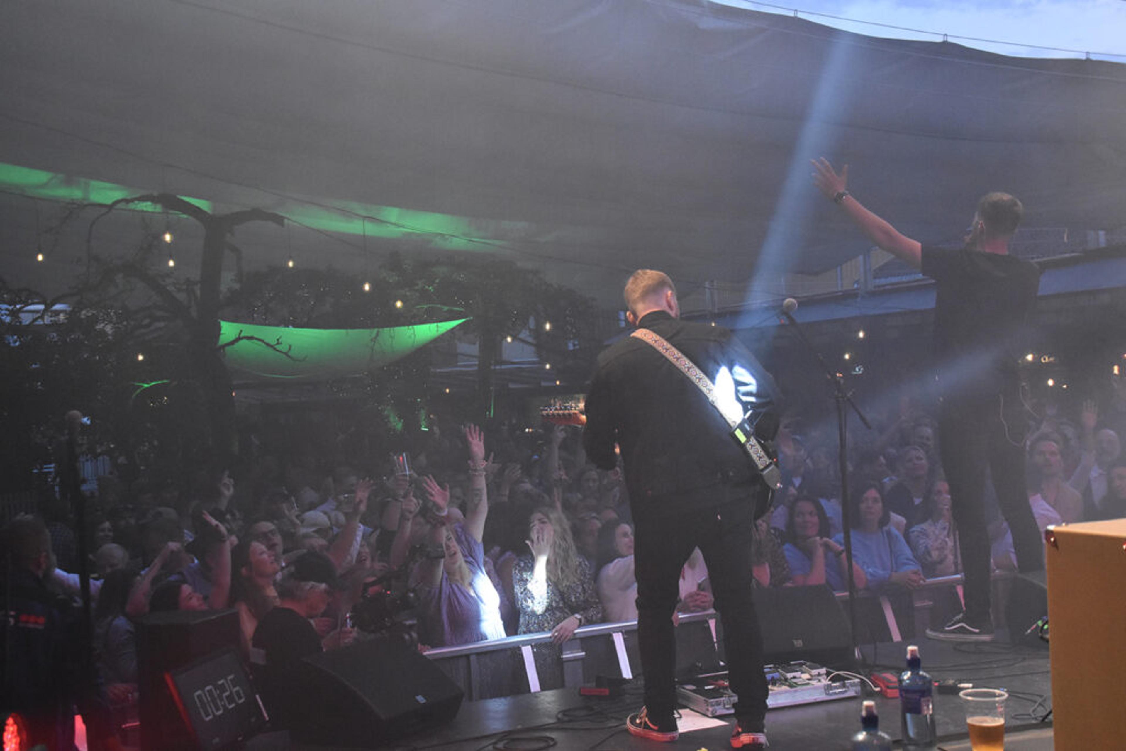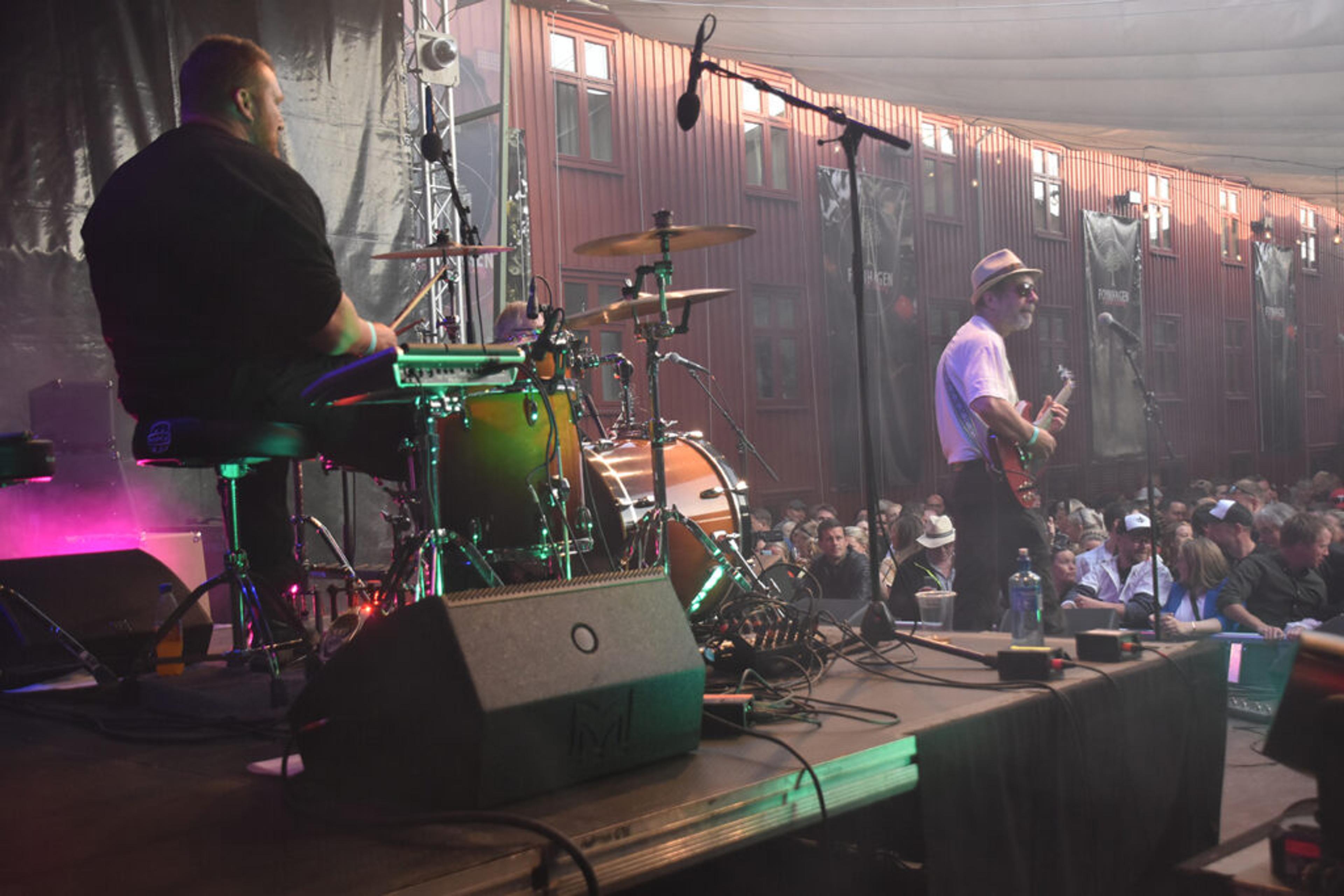 BACKSTAGE-GLØTT: Her kunne banda med alle artistene lade opp til festivalspilling. Hallvard spiller med Sons of Bane. Foto: Synne Eggum Myrvang, ReAvisa.