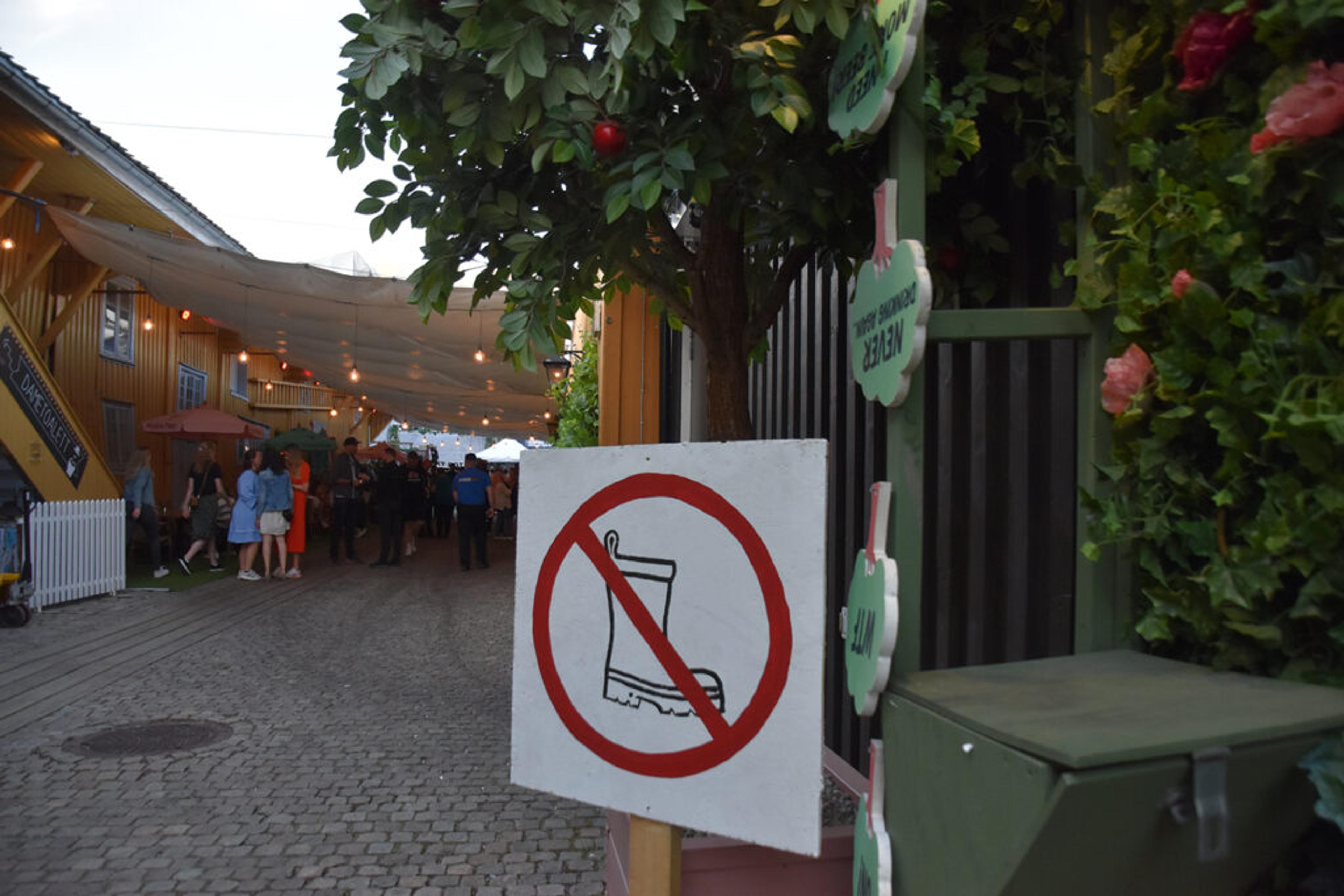 MOT NORMALT: Det pleier å skiltes med forbudsskilt mot pensko med Revårock på kubeitet. Her skiltes det mot gummipælær. Foto: Synne Eggum Myrvang, ReAvisa.
