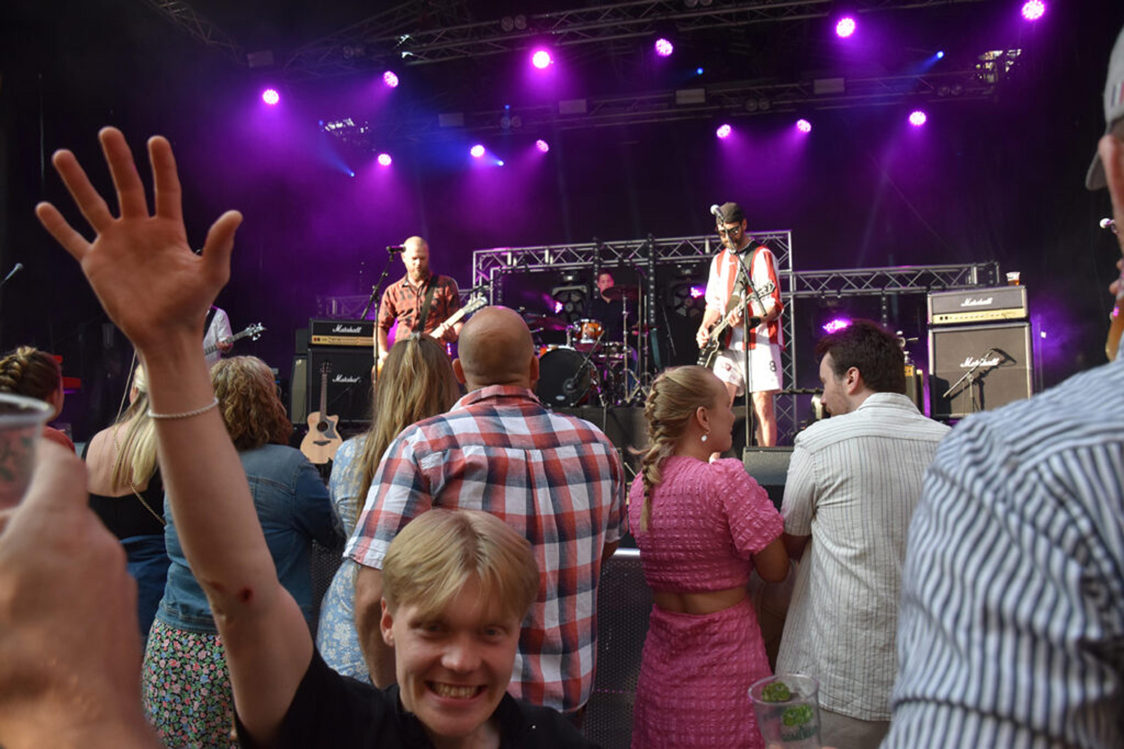 LOKALE SLAGERE: Med tekster om nært og kjært som «Møt meg i natt i Vivestad» er The Dix en stor favoritt blant Revårock-festivalens aller mest trofaste festivalgjengere. Foto: Synne Eggum Myrvang, ReAvisa.