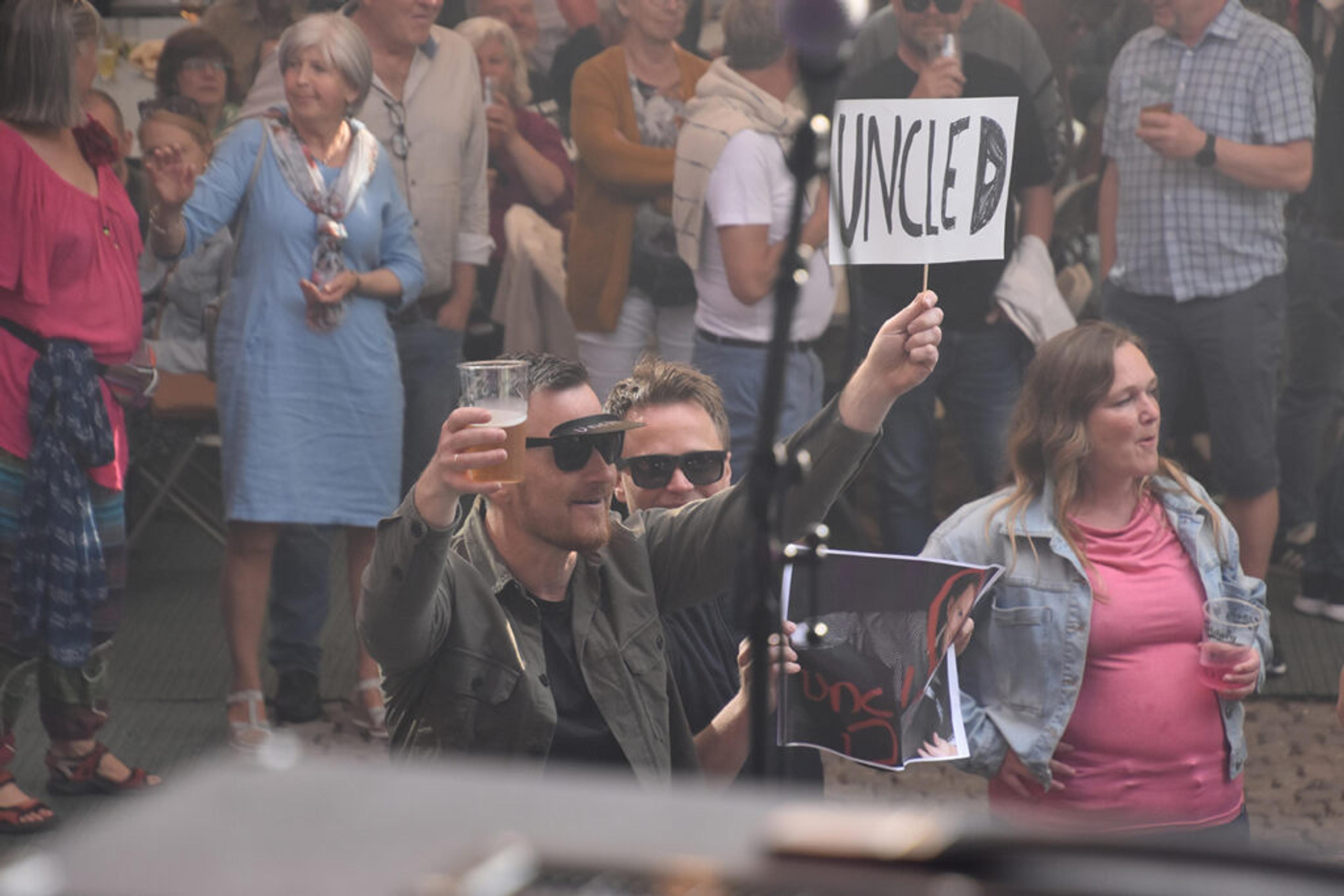 HEIA UNCLE D: Dagfinn Ellingsen på trekkspill i Revåjammer har sin egen lille fanskare foran scenen. Foto: Stian Ormestad, ReAvisa.