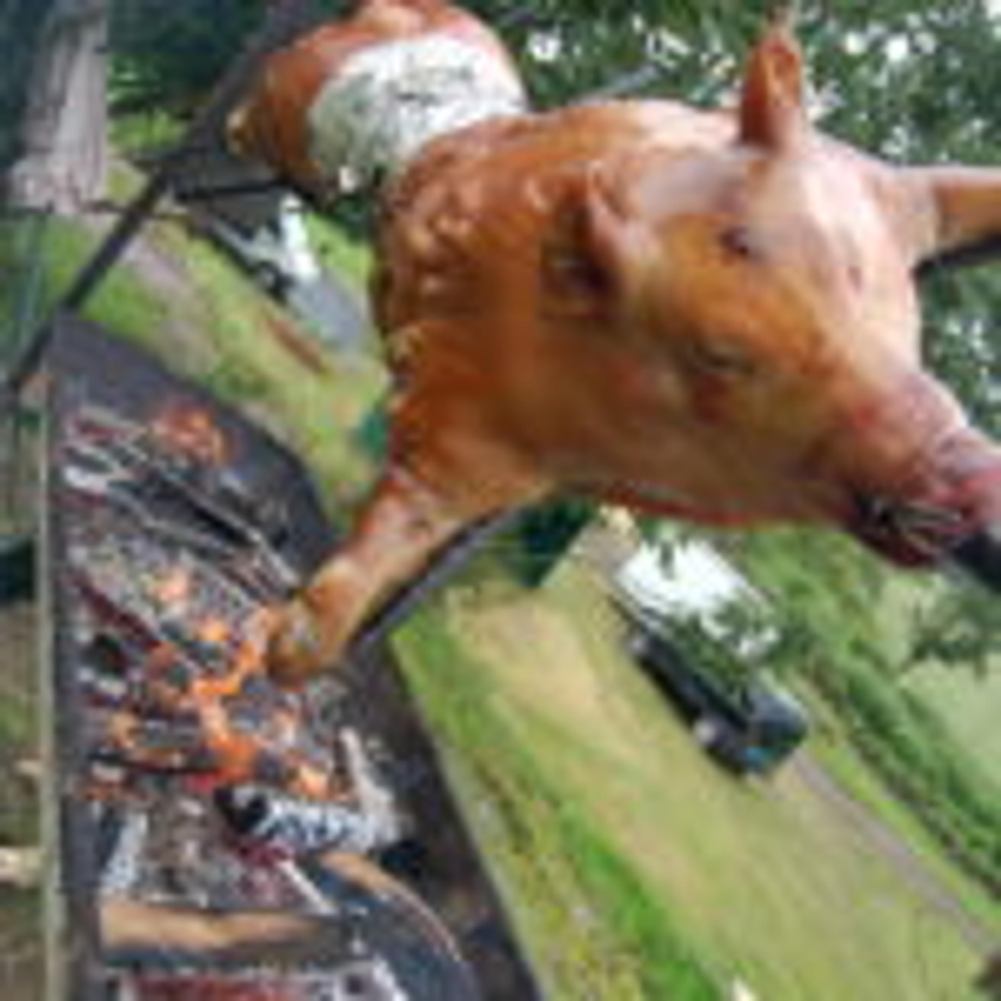 MAT OG DRIKKE: Helstekt gris ble kjapt en tradisjon. Foto: Stian Ormestad.