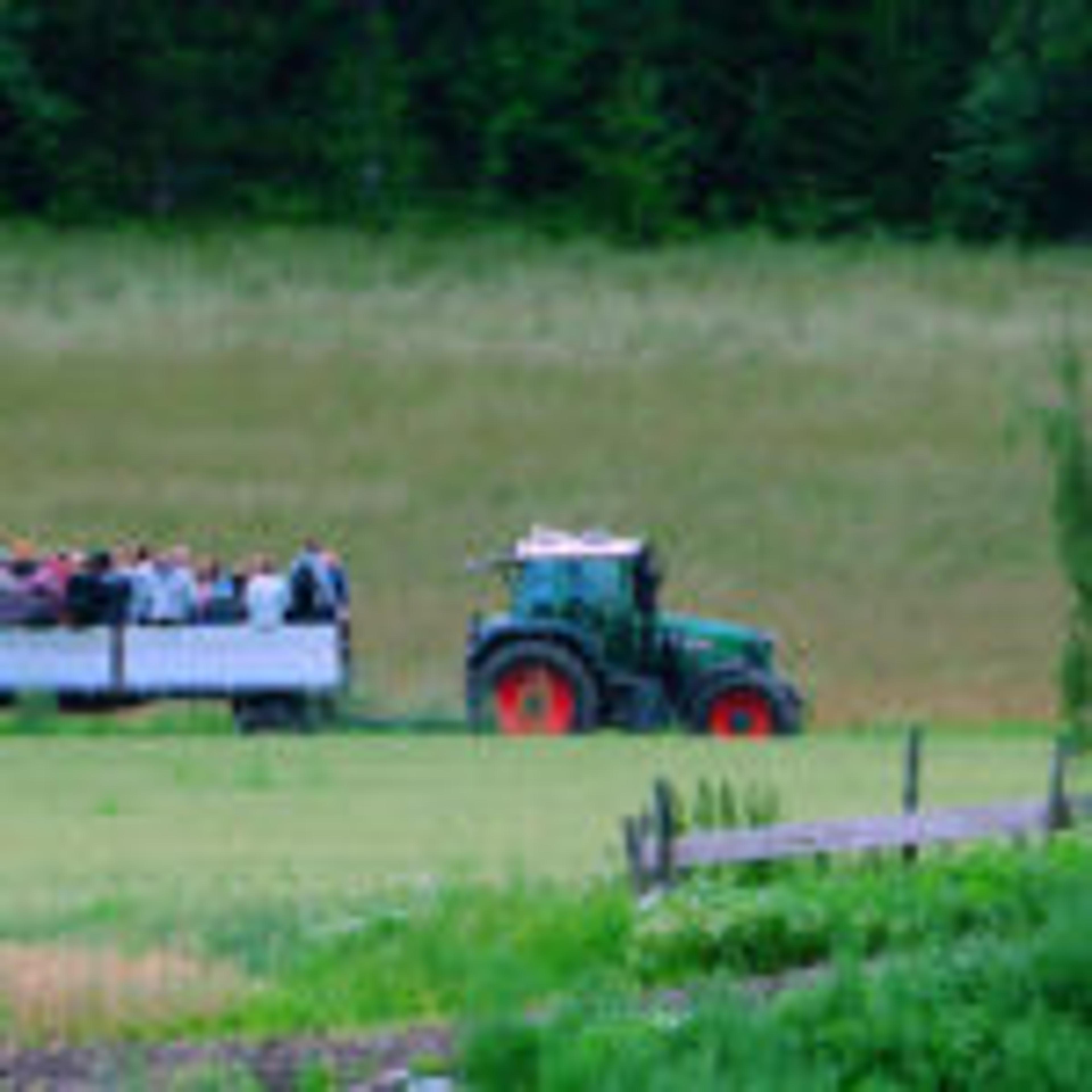PÅ VEI TIL BYGDEFEST: Traktor med henger duger godt. Foto: Tom Hansen.