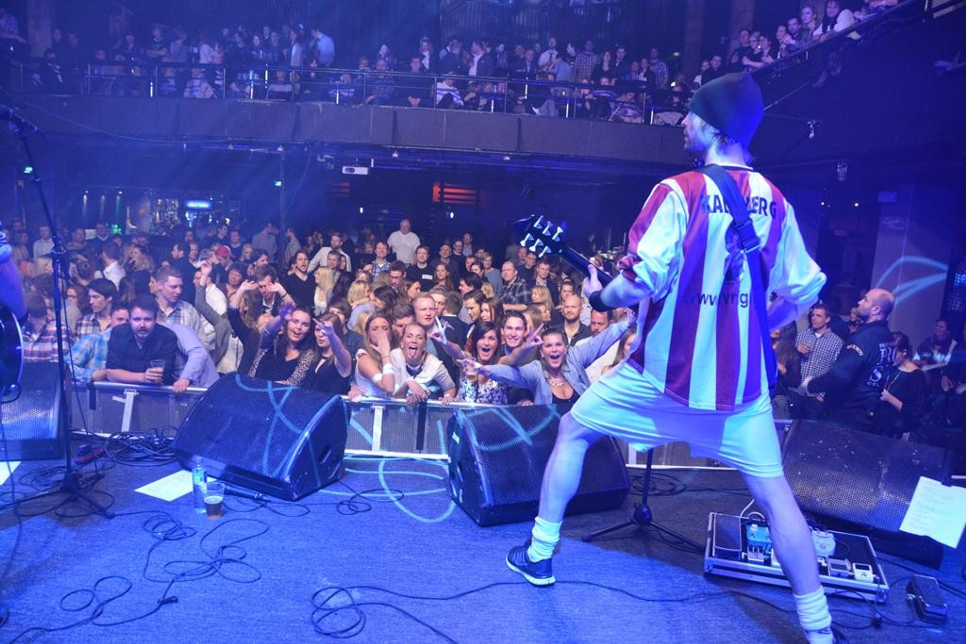STINN BRAKKE I HOVEDSTADEN: – Revårockefeller var rått!, mener Snorre – og har mange med seg på det. Her ser vi Audun Kalleberg i Za-Zaa trylle fram noen gitarstrofer i Ivrig-drakt. Foto: Synne Eggum Myrvang.