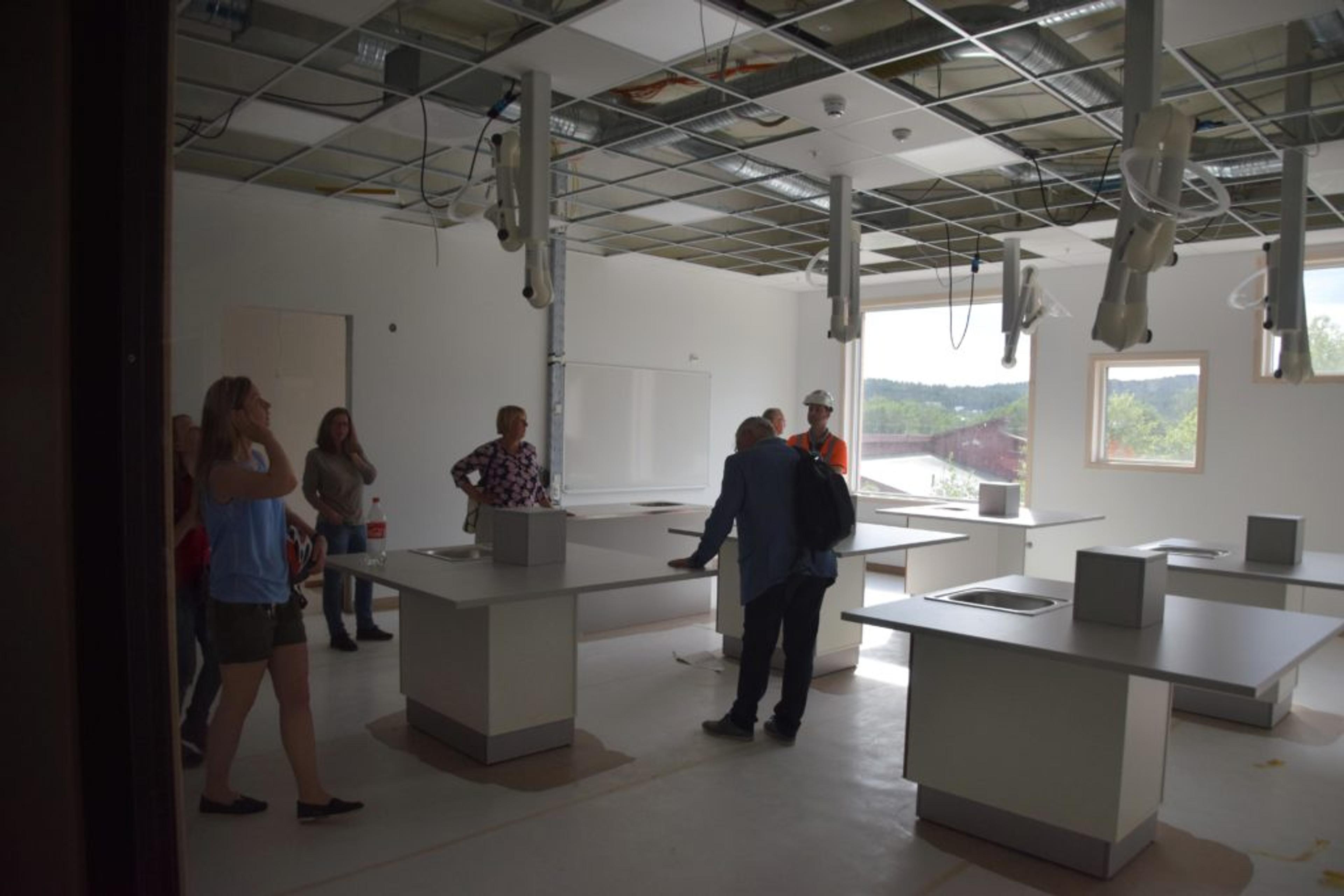 NATURFAG-LAB: Den nye skolebygningen betyr et stort løft for undervisningen på Revetal ungdomsskole. Tenk bare hva denne nye laben betyr for naturfagstimene! Foto: Stian Ormestad.