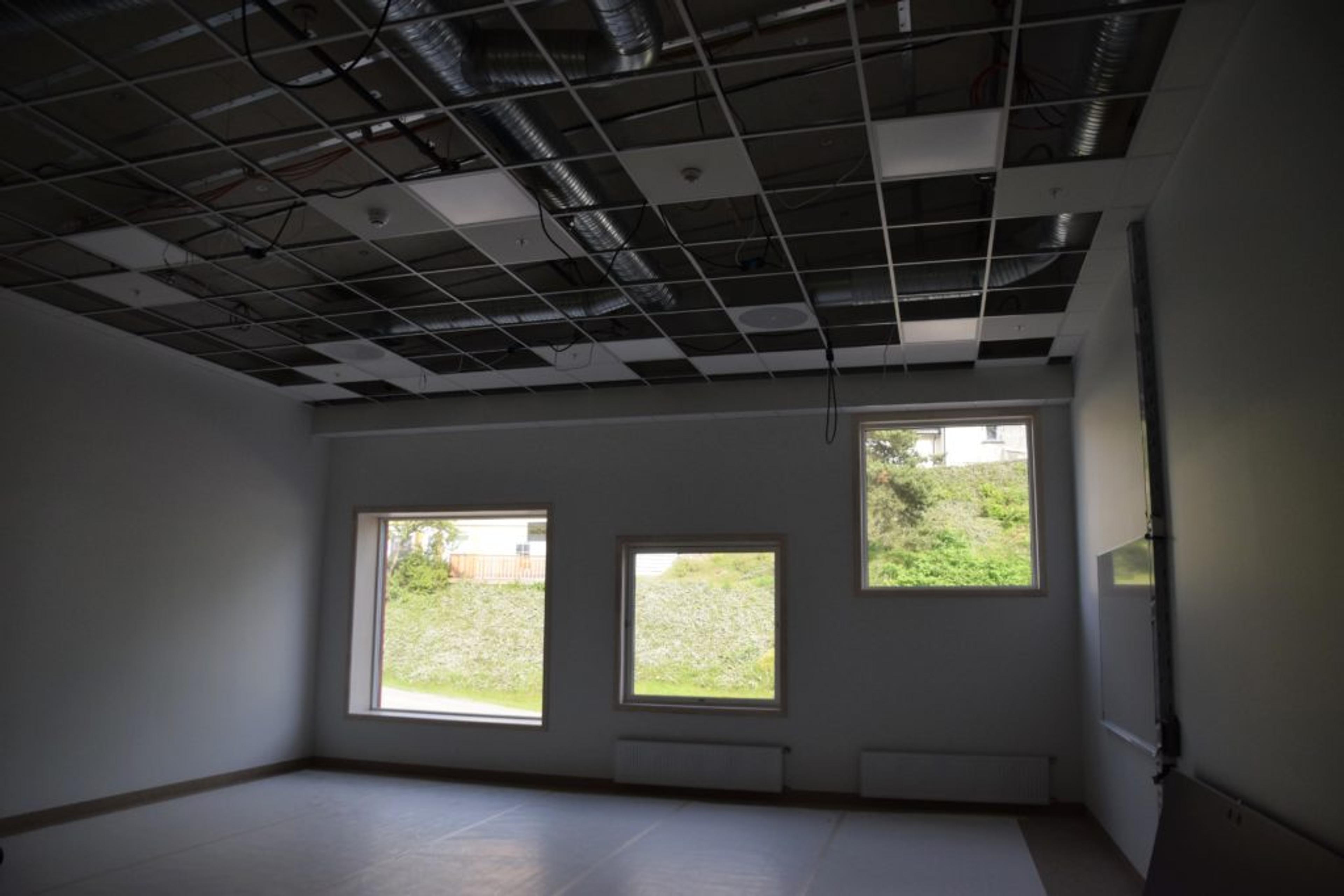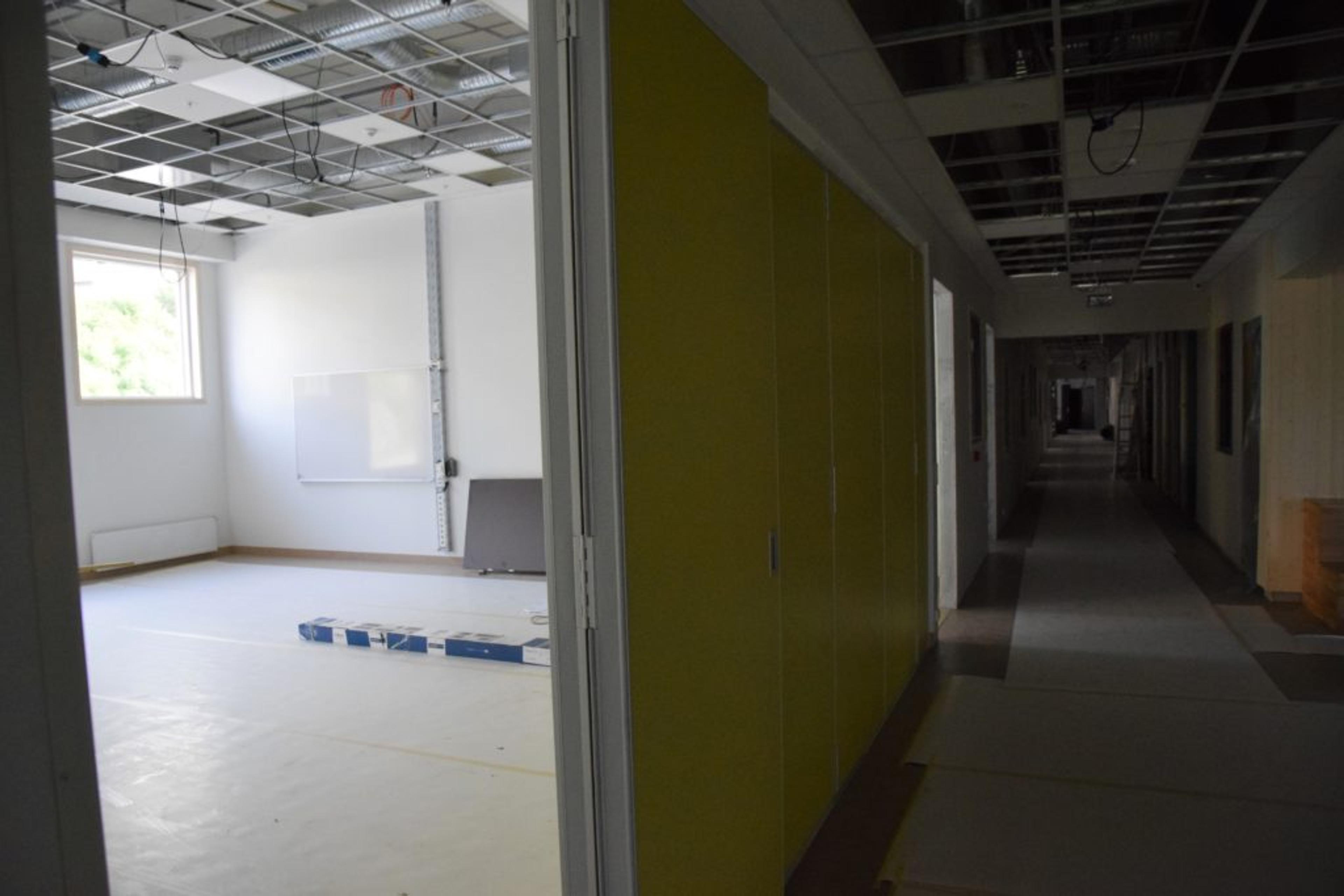 KLASSEROM: Fem klasserom per trinn skal fylles med læring over sommeren. Foreløpig står de tomme og snart klare. Foto: Stian Ormestad.
