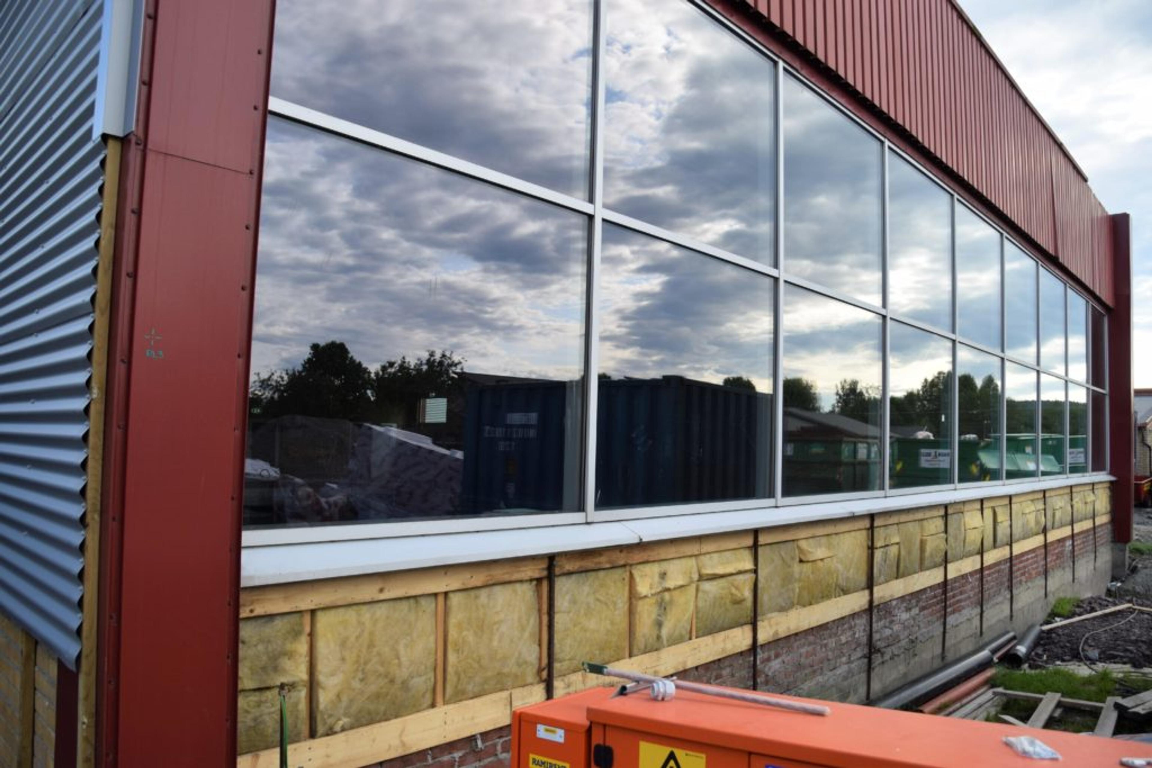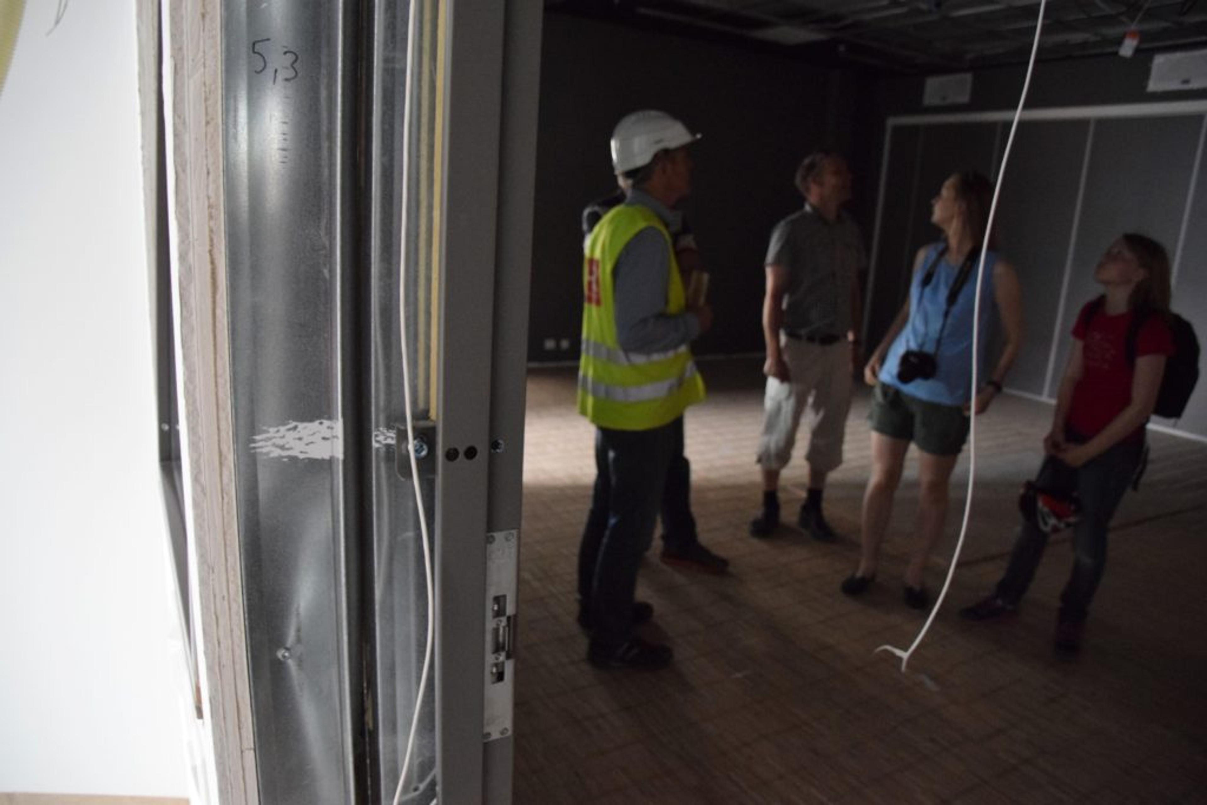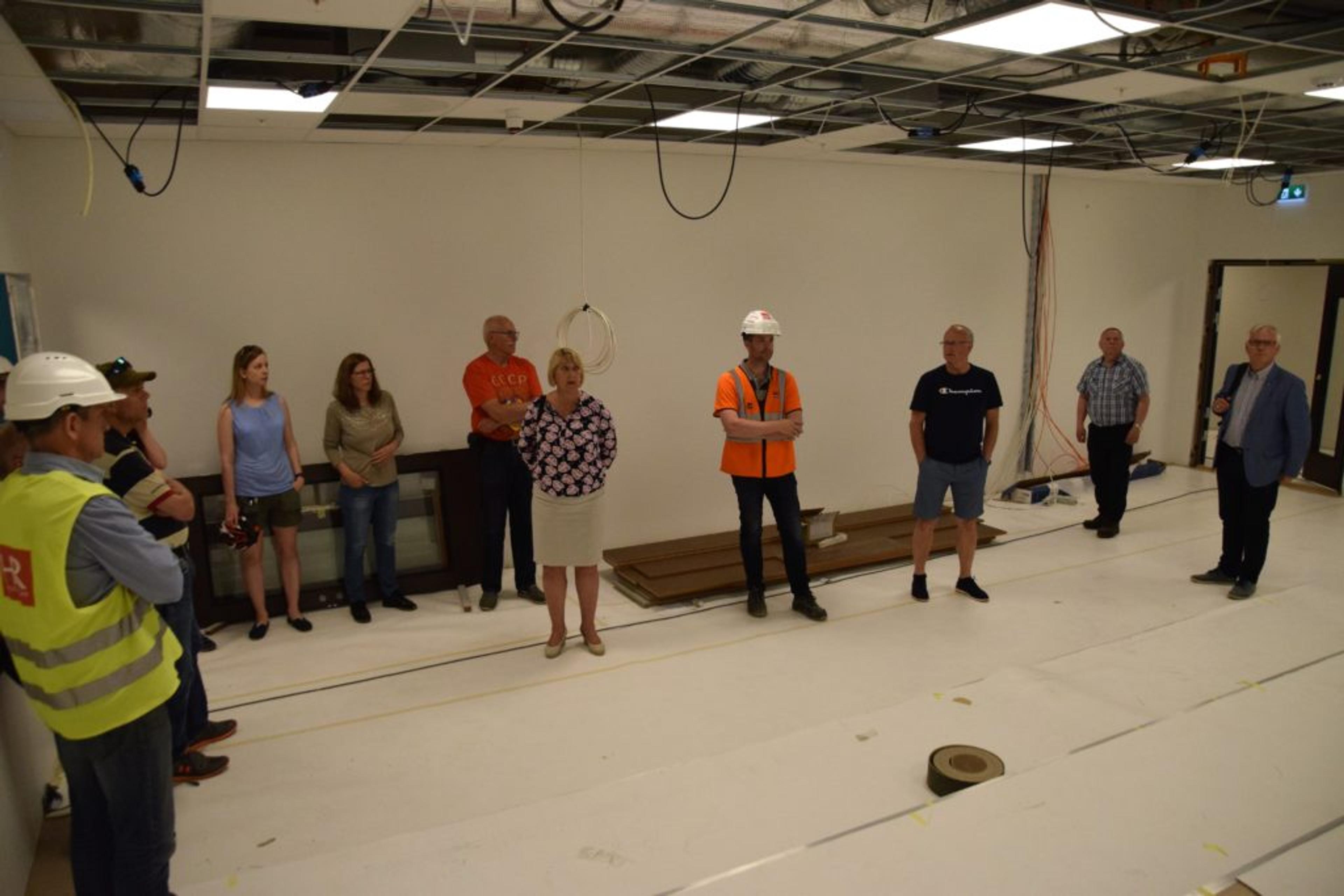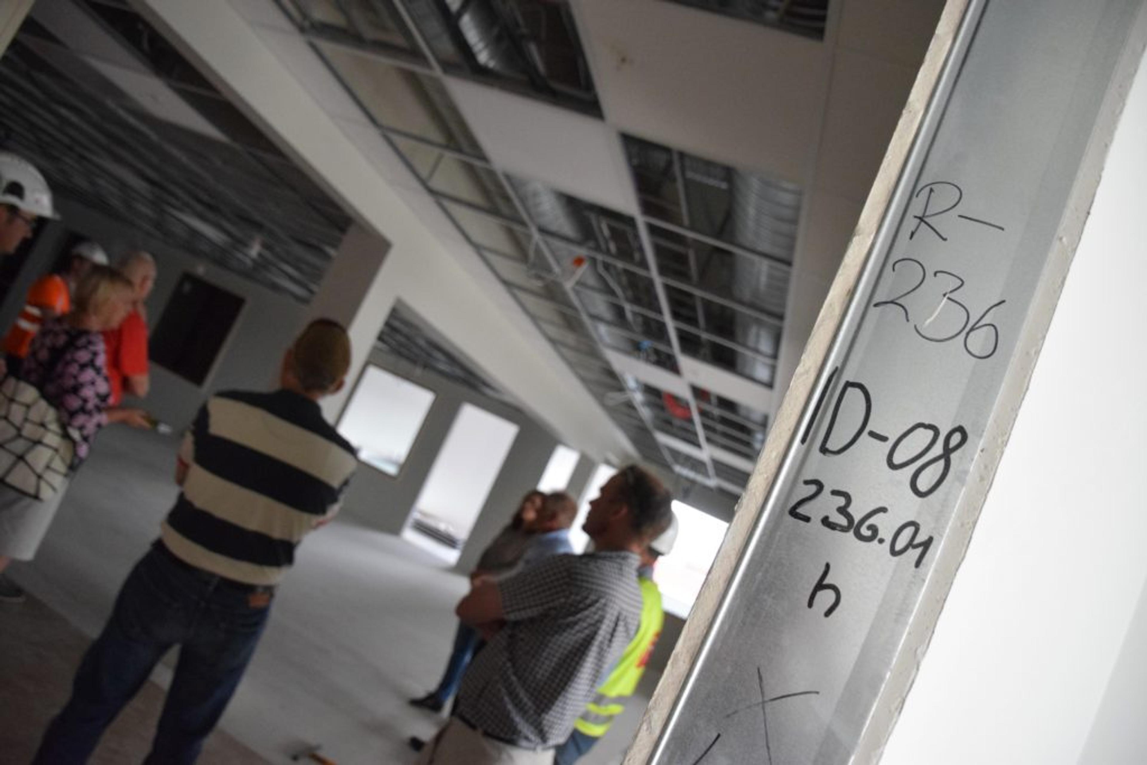 BEFARING: Lokalavisa hang seg på da våre folkevalgte fikk en omvisning på nye Revetal ungdomsskole torsdag 15. juni. Dette blir hovedinngangen for skolen som bygges for å ta i mot opp til 450 elever. Foto: Stian Ormestad.